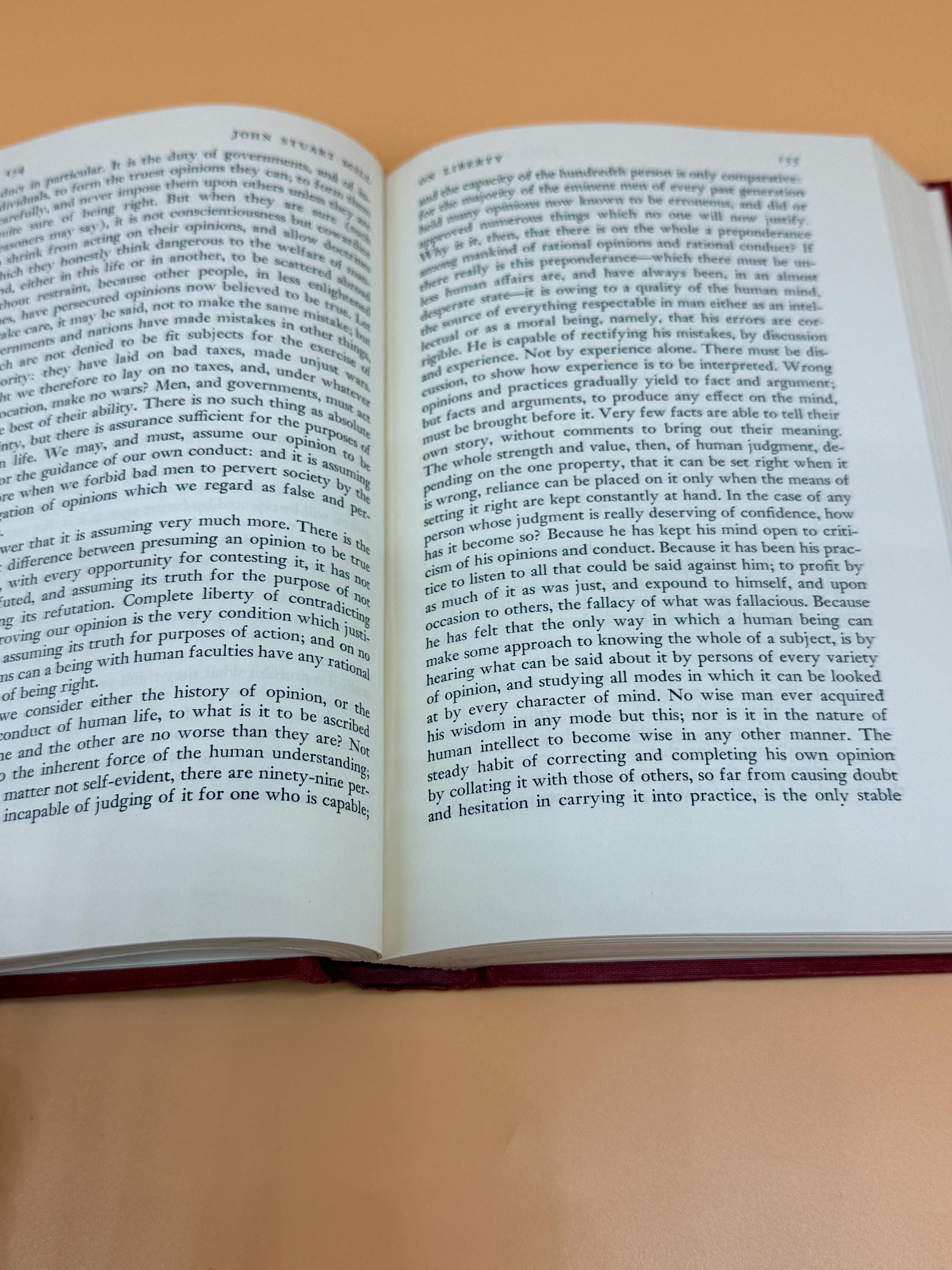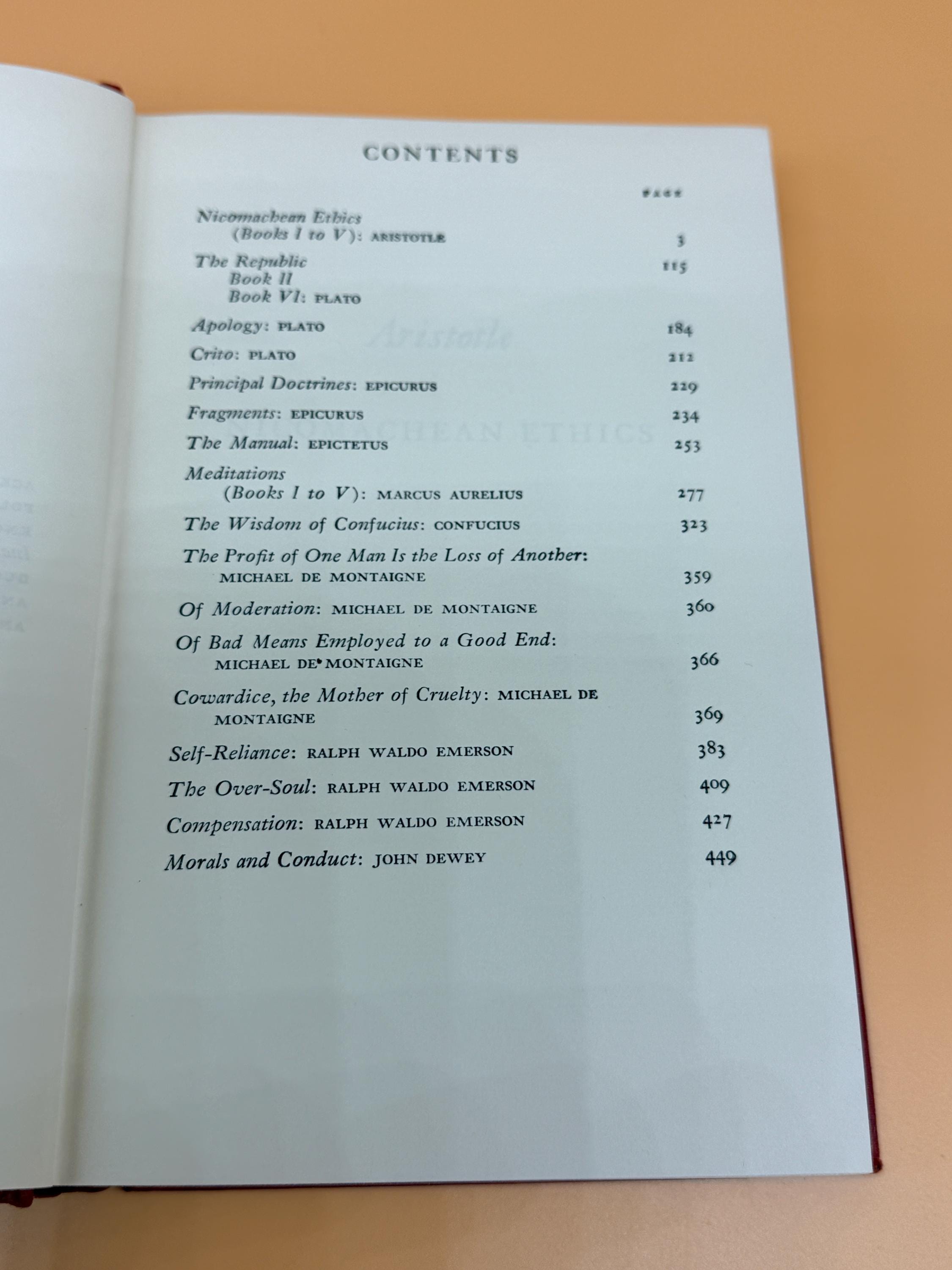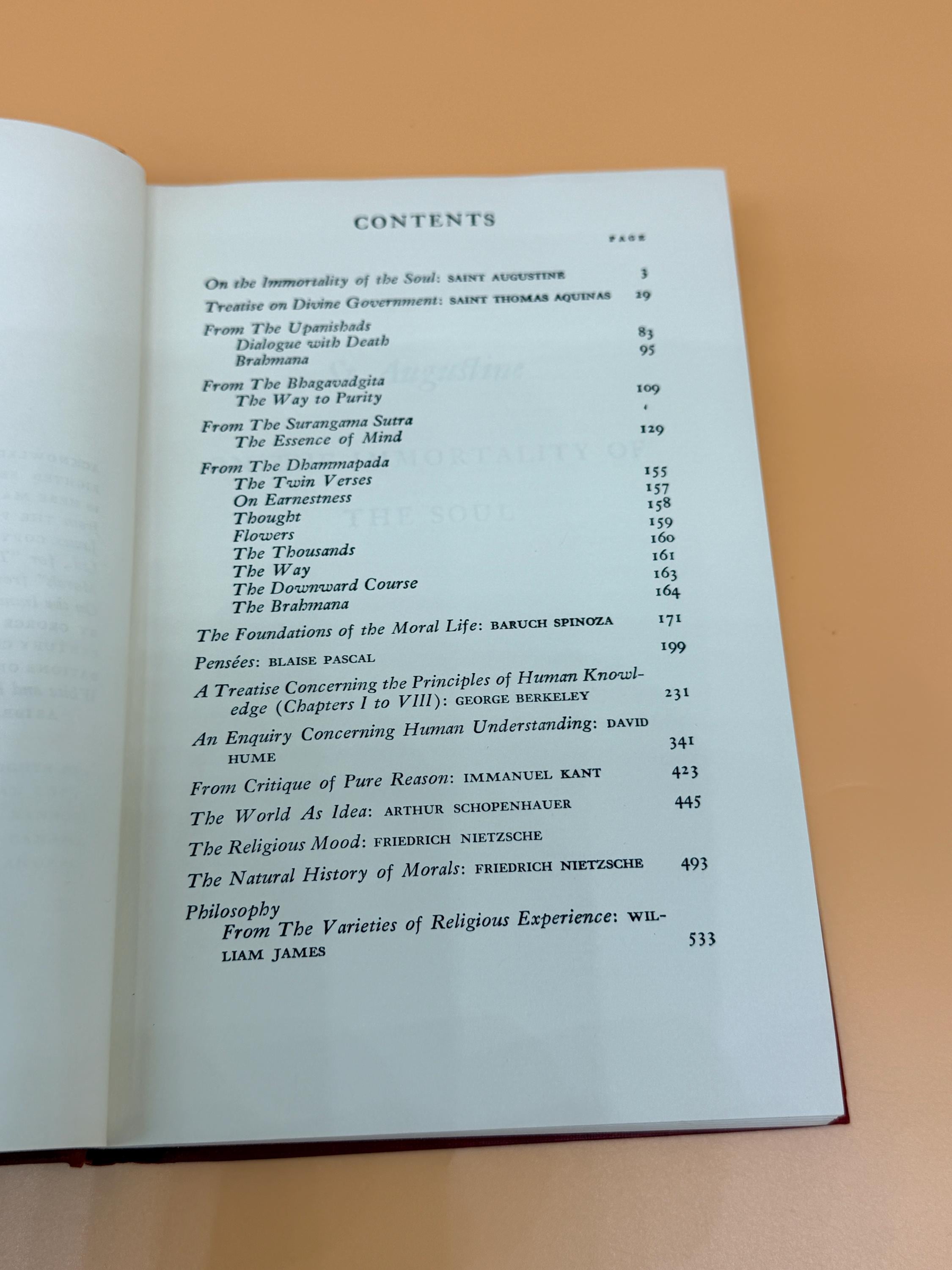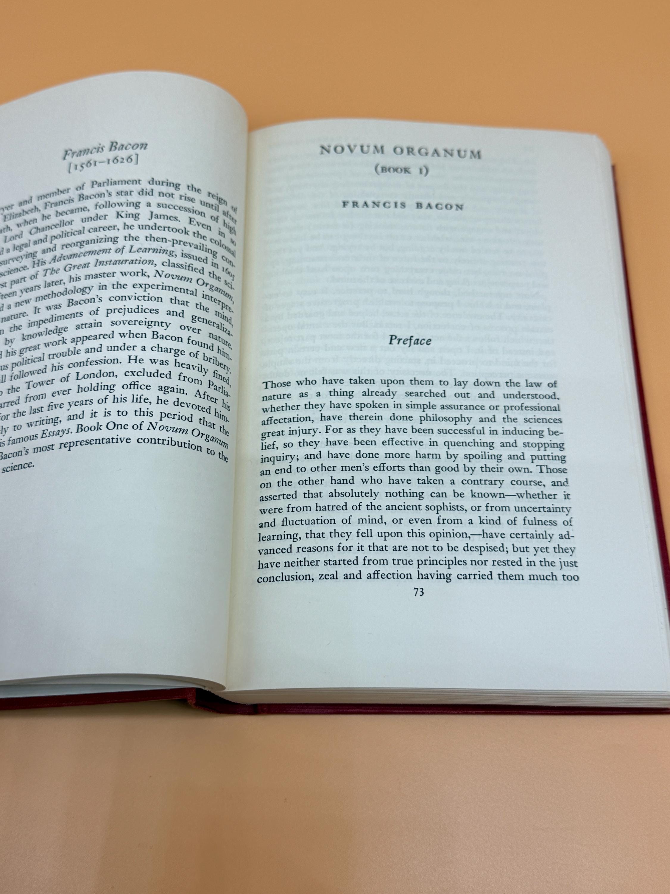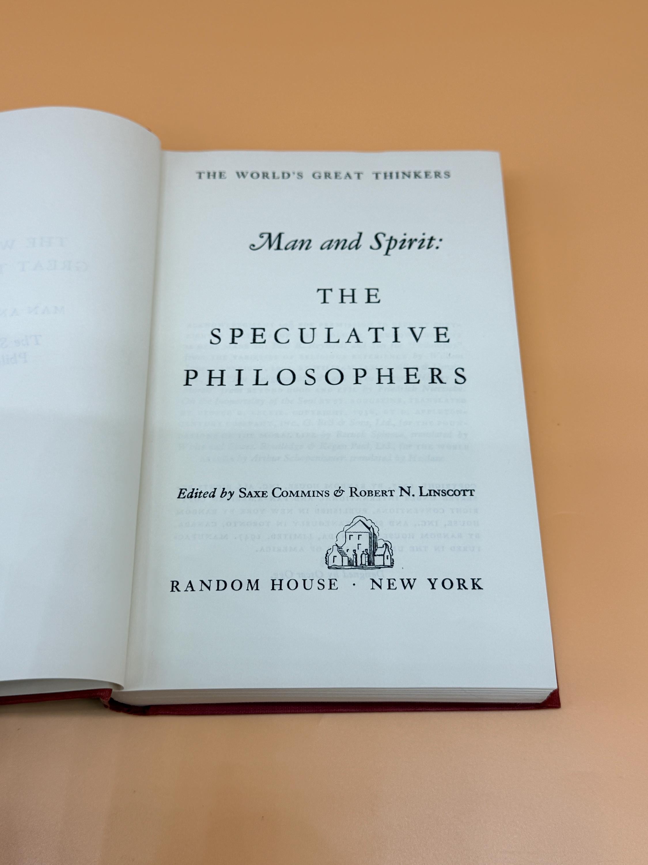 This is a very good set of 4 volume hardcovers in accompanying slipcase. Complete set in original slipcase. 1947 Random House Publishing. All four volumes in this set are very good inside and out. NOTE: Volume Man and the States - The Political Thinkers is very good inside BUT inside front cover binding is showing between the blank and half title pages BUT pages are still tight to binding, see photo. Only spot seen with this caveat. The pages on all 4 volumes inside are clean with only very light natural tanning from age. The red cloth hardcover boards are also very good with only a hint of shelf wear and only light fading is along the spines but the title/publisher lettering along spine clear and legible not faded out. Bindings on all are tight and square with only the aforementioned caveat to one volume. The slipcase is good and solid BUT does have shelf wear and scuffing to back as shown in photo. Each hardcover is 8vo in size, or 5"x8".