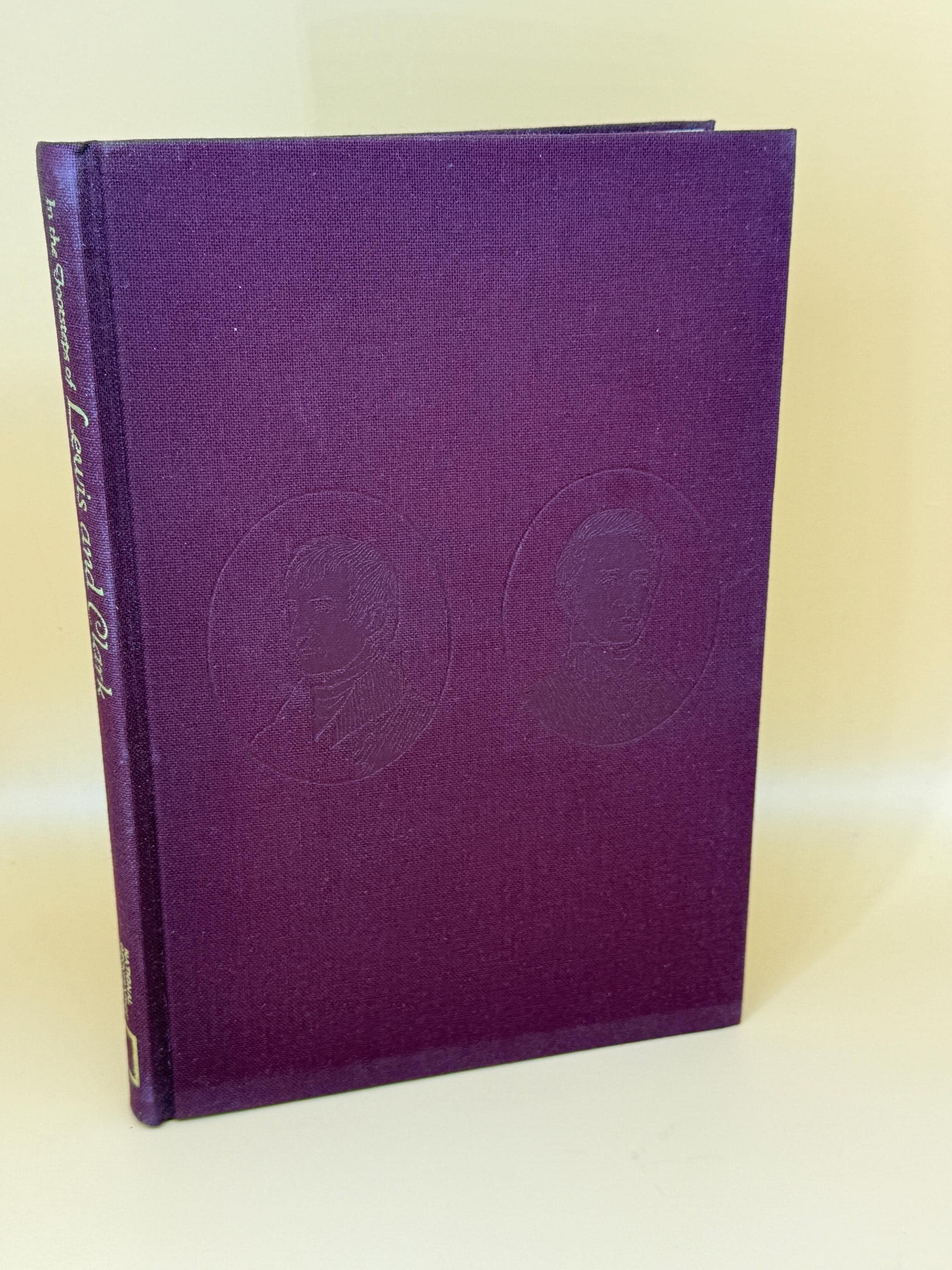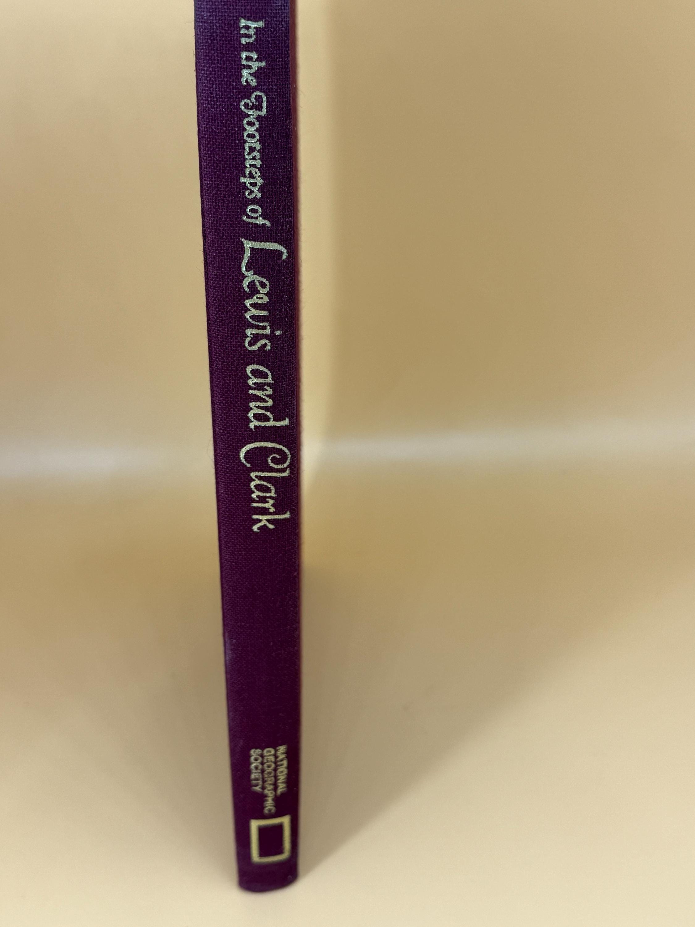 This is a very good hardcover, NO dust jacket, jacket missing. 1970 National Geographic Books. This copy is crisp and clean inside and out. The inside pages are still crisp and clean, with no markings seen. The binding is tight and straight Maroon cloth hardcover boards under jacket are very good with barely a hint of shelf wear and featuring embossed Lewis and Clark busts. Super octavo book size of 7" x 11" with 215 pages and featuring illustrated maps on both front and back endpapers.
