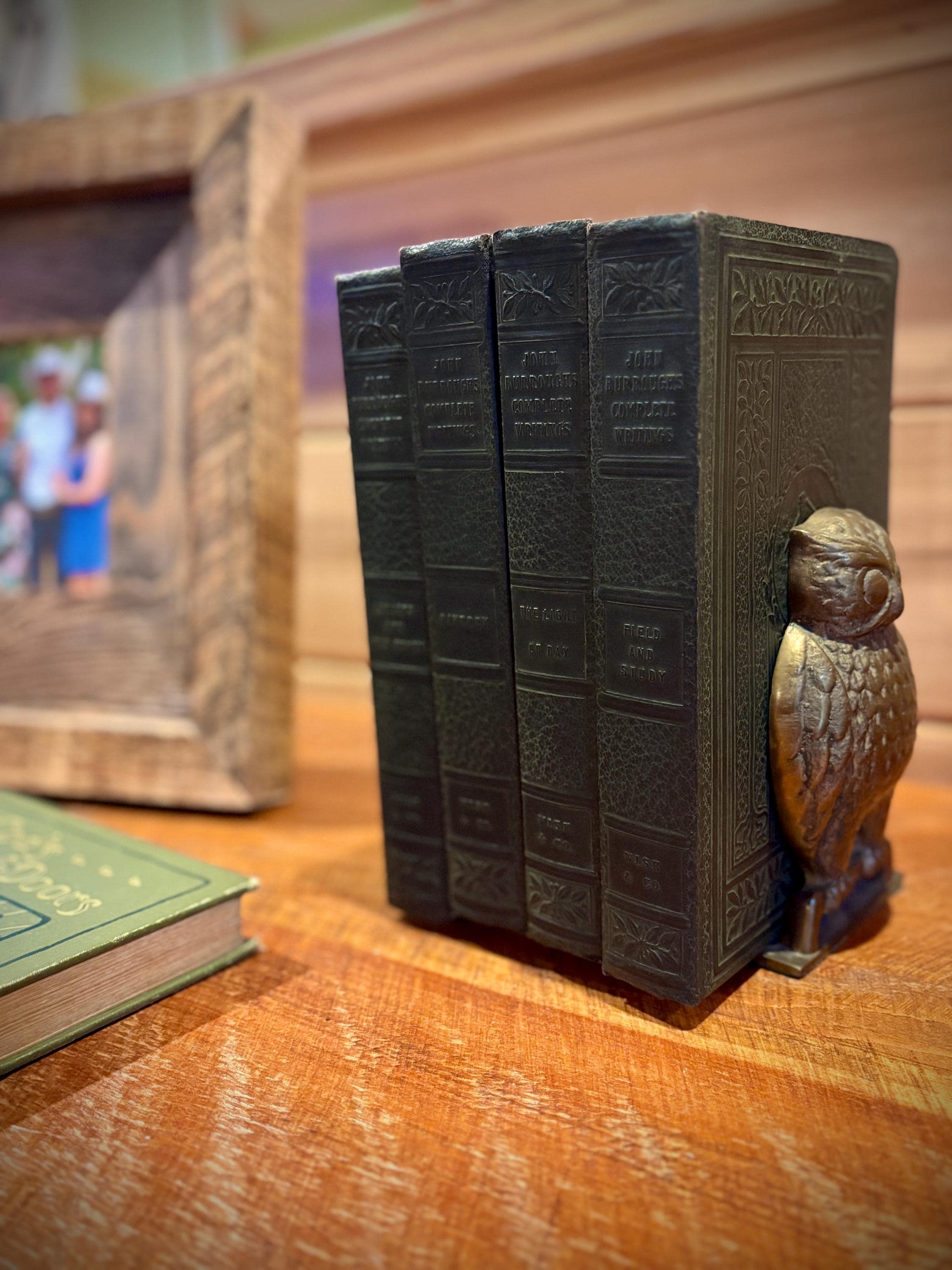 This is a good hardcover, 1924 Wise Publishing. Given the age of this book (100 yrs old), it is no surprise that the binding is cracked, BUT the pages are still tight to the binding, the binding has just cracked from the boards along spine. (see photo) Overall this is in good condition, a rare series published in 23 volumes as The Complete Writings of John Burroughs. When closed the binding flaw is not detectable but opened it becomes apparent. But there are no loose pages. There is light natural tanning to pages from age and brown spot inside front cover where store label removed (see photo). There is no serious foxing inside. Top edges tipped in gold gilt showing some wear but overall good. The olive green hardcover boards are embossed with design on front and have the appearance of leather binding although it is not. Rough cut page edges as often found in binding of the time. The hardcover boards are very good, clean and now showing much wear. Crown octavo book size or 5" x 8" with 224 pages.