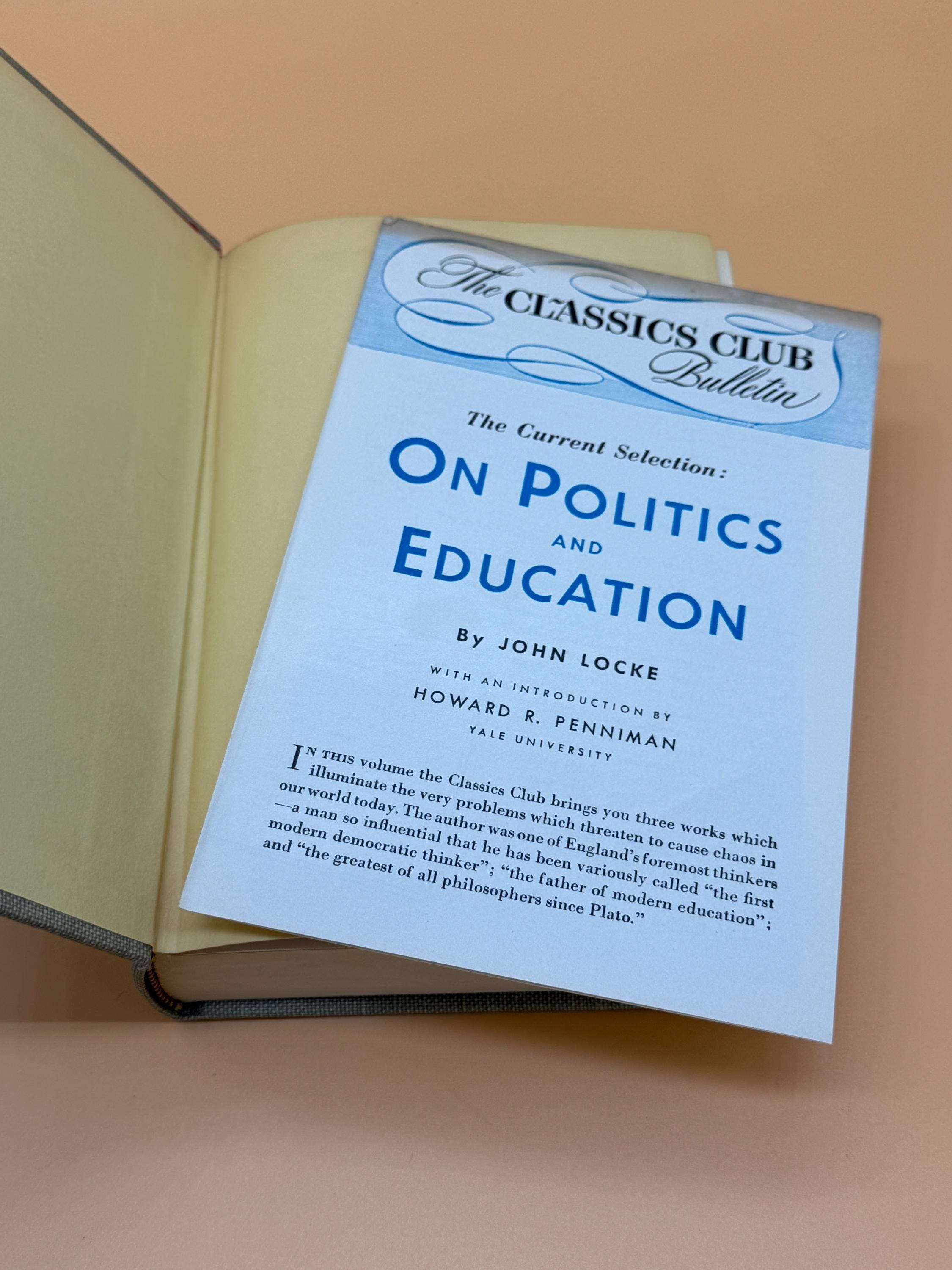 John Locke was an English philosopher. This title, On Politics and Education explores the relationship between the two. Locke was often referred to as the father of modern "liberal" thought. His three principles of the right to life, liberty and property are essential to any civil society. This edition contains an intro by Howard R. Penniman and A Letter Concerning Toleration, The Second Treatise on Civil Government, and Some Thoughts Concerning Education. The Appendix contains The Fundamental Constitutions of Carolina, Locke's Principle Works and Partial Bio.