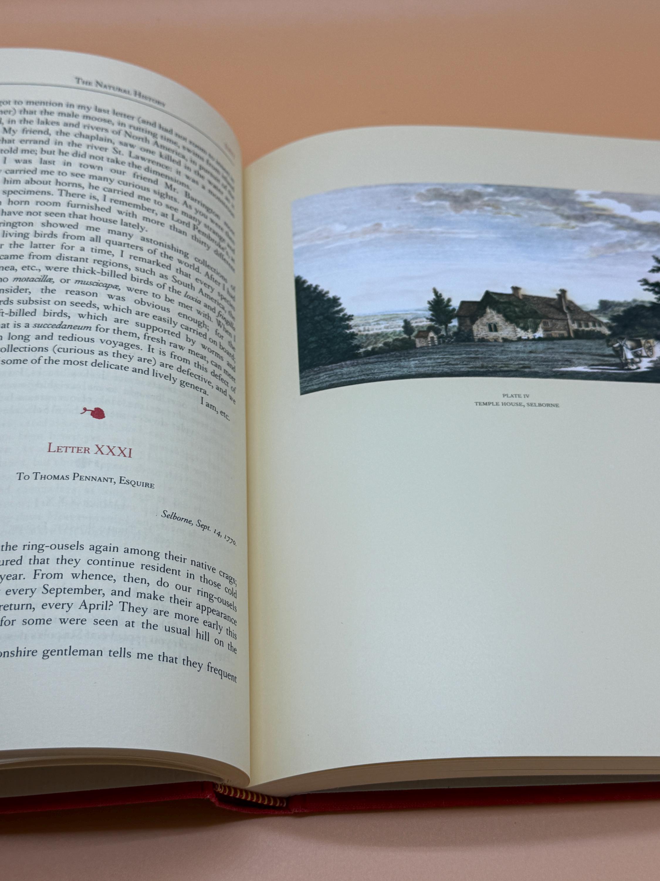 This is a near fine (almost like new) hardcover. 1988 Century Publishing New Edition. This copy is still crisp and clean inside and out. The pages are crisp and clean inside. The red cloth hardcover boards feature bird design along with illustrated front with title/author. The hardcover boards are also near fine with only a hint of shelf wear. This copy includes a pamphlet from Saint Mary Selborne and three postcards: two of Jane Austen's house and one of St Mary's Church in Selborne, Hampshire. Super octavo book size or 8" x 10" with 256 pages including index.