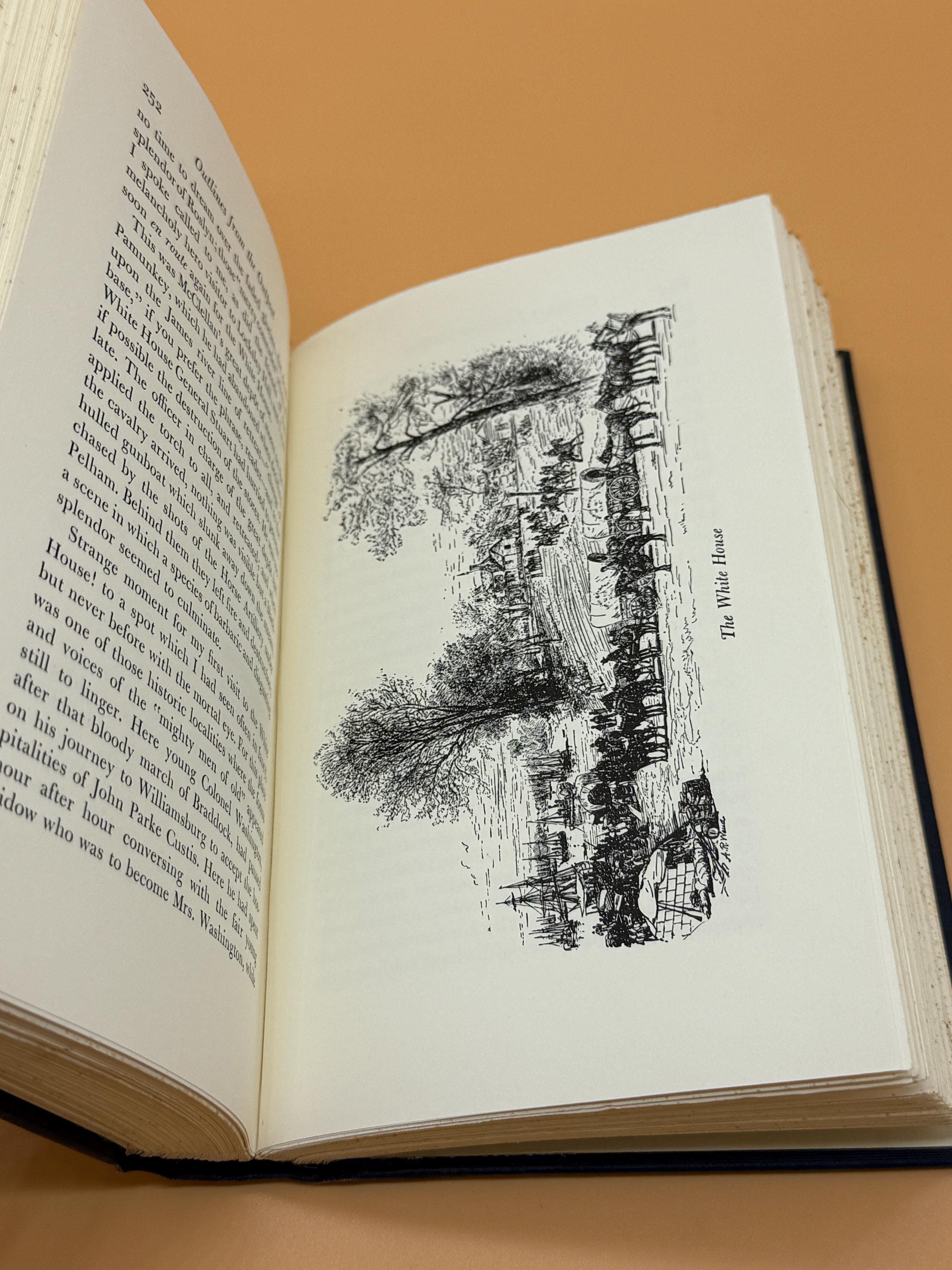 This is a very good hardcover. 1961 Lakeside Press, Donnelley Publishing. This copy is still crisp and clean inside and out. The pages are crisp and clean. NOTE: there is some dust spotting along outer page edge but does NOT carry over to inside pages (see photo). The binding is tight and straight. Navy blue hardcover boards feature gold design front and title lettering in gold along spine. The hardcover boards are also very good with only a hint of shelf wear. Smaller hardcover, crown octavo book size or 5" x 7.5" with 410 pages including index. Top page edges tipped in gold gilt.
