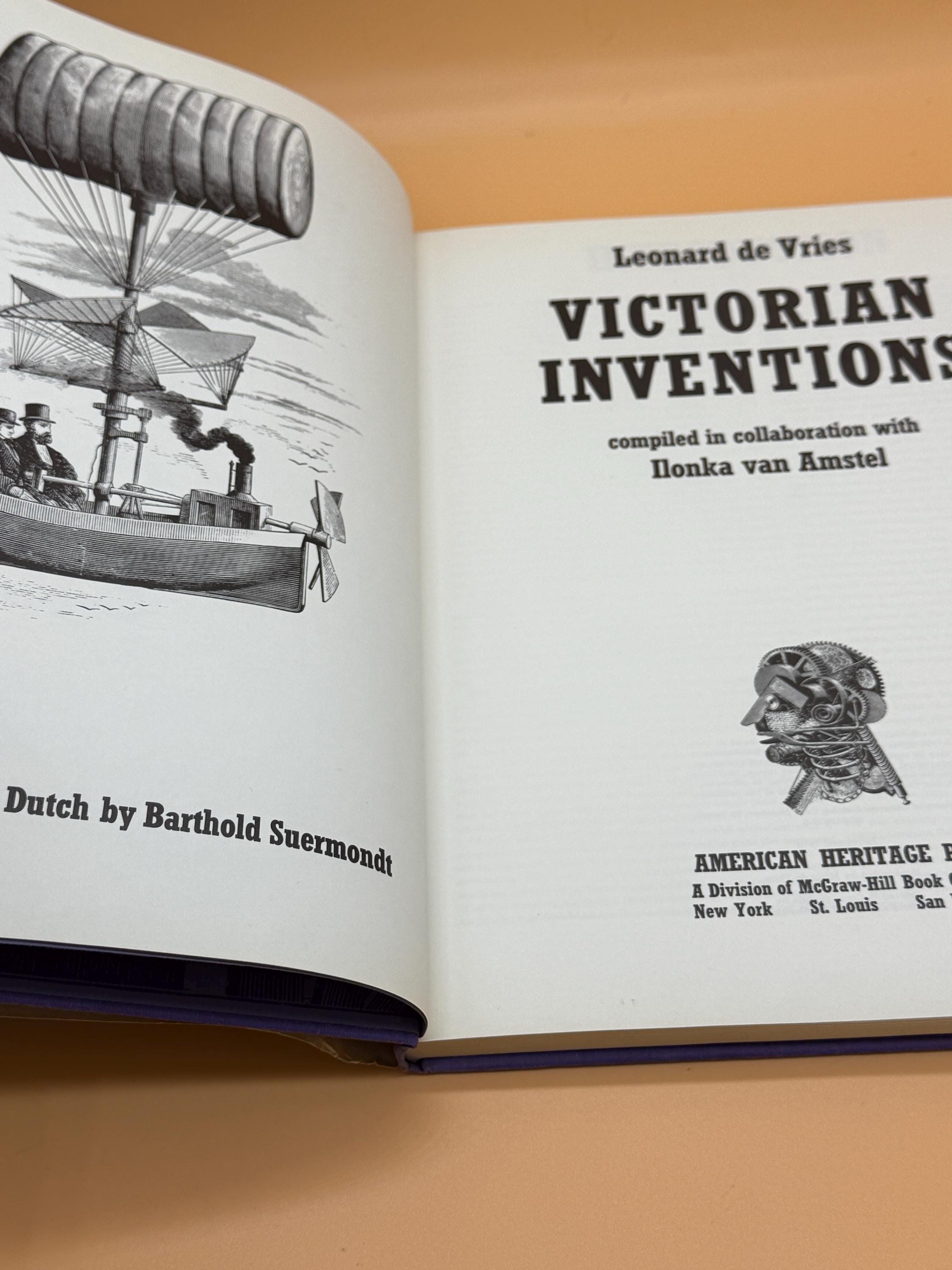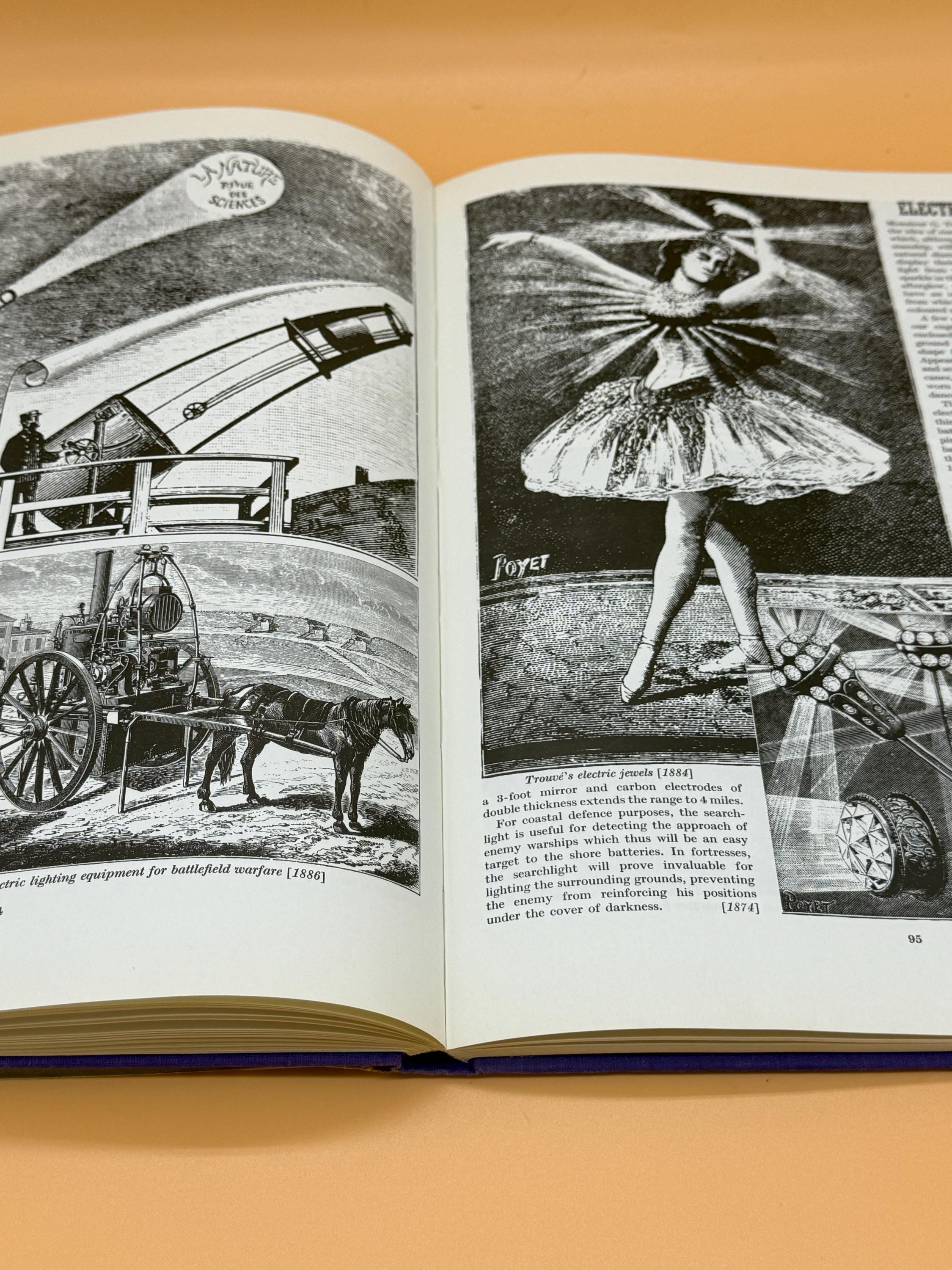 Victorian Inventions by Leonard De Vries is an account of inventions showing ingenious ways the inventors applied exciting new principles and the enthusiasm of the public to sample the results. It is divided in to 5 sections; Transport, Electricity, Optics, Telephone and Miscellaneous. It is extensively illustrated to show the development and results of inventions from flying machines, electricity, X-Rays, telephones, phonographs, along with engineering feats such as tiger Eiffel Tower, The Brooklyn Bridge and more.
