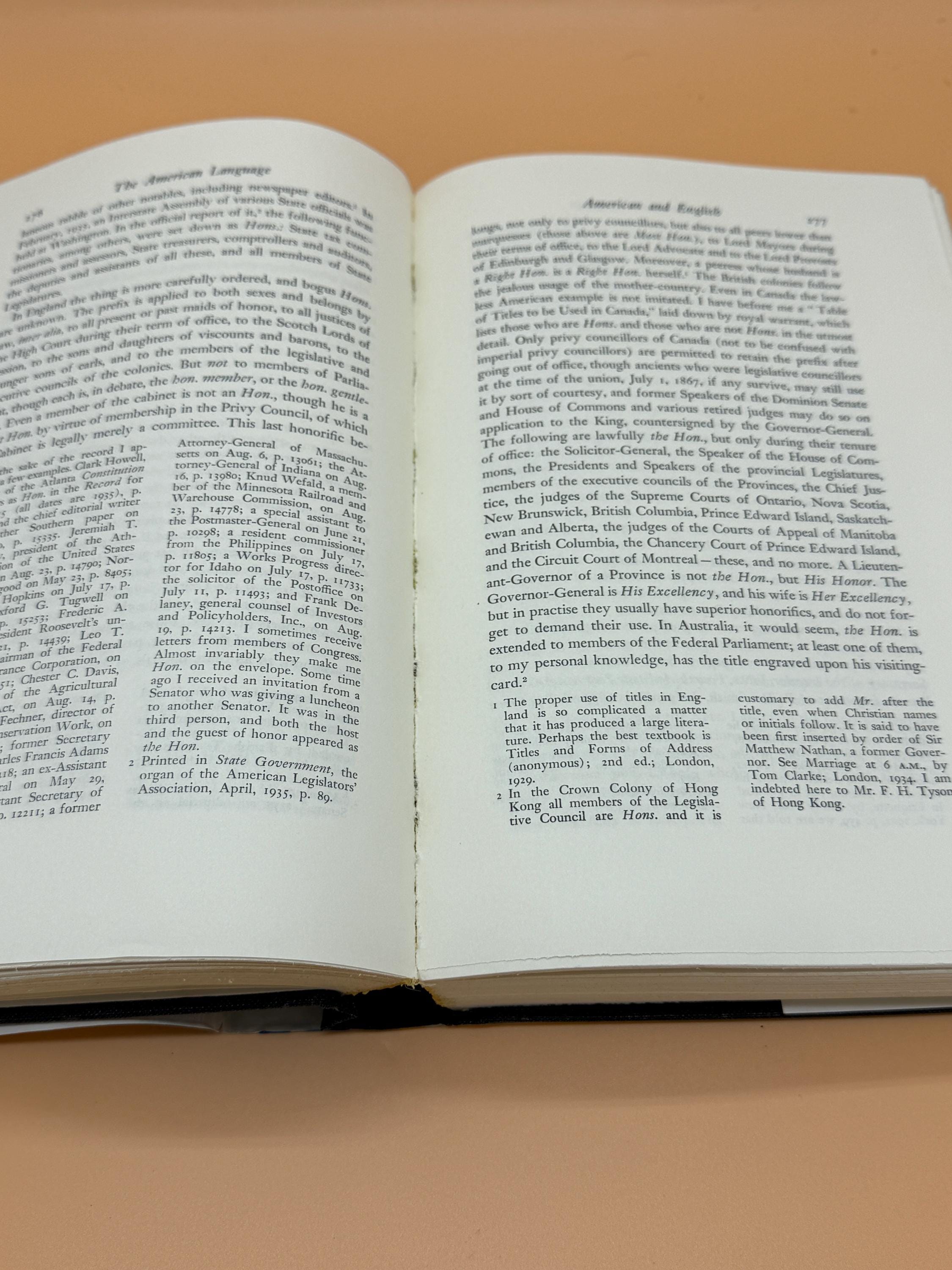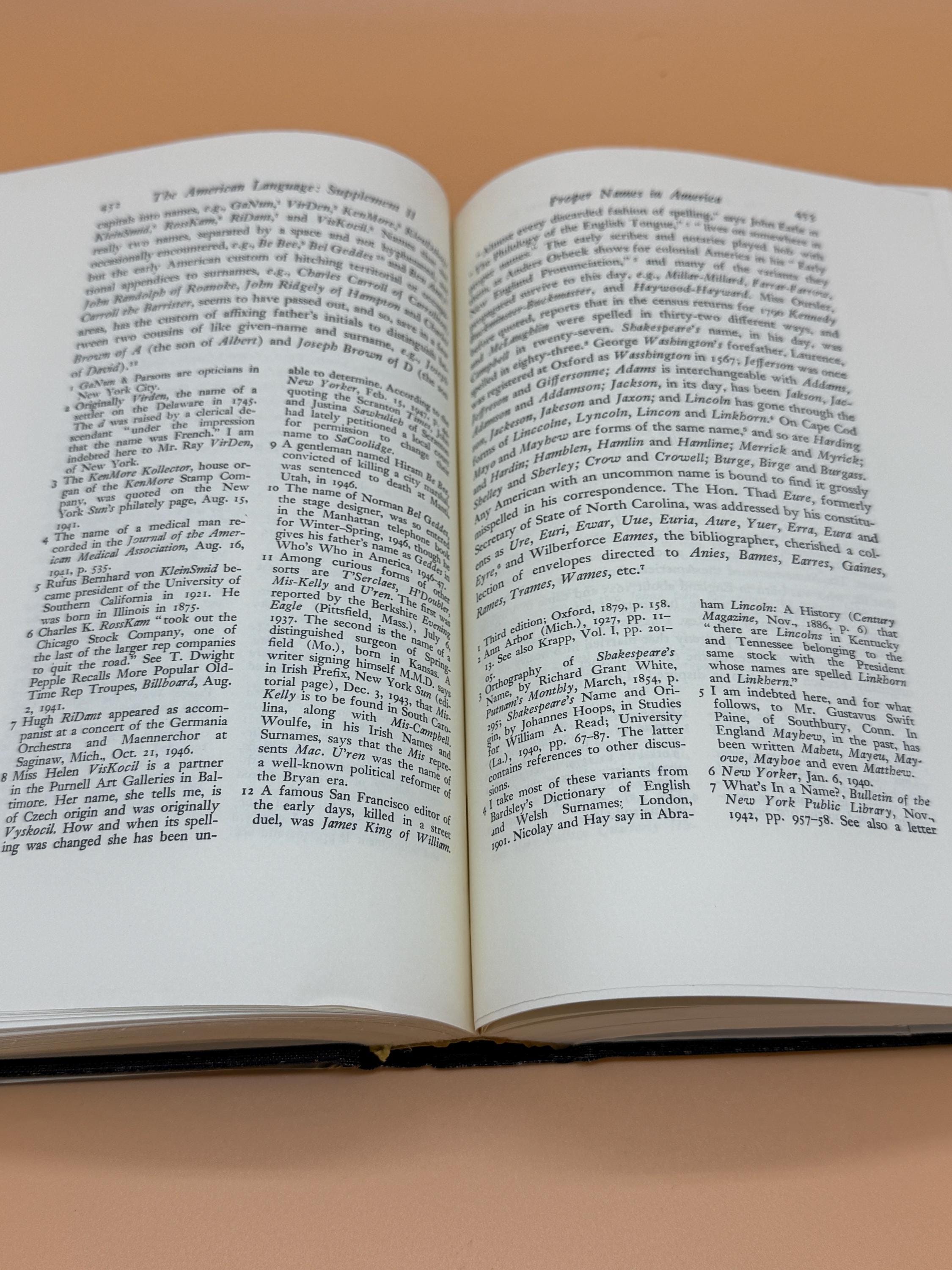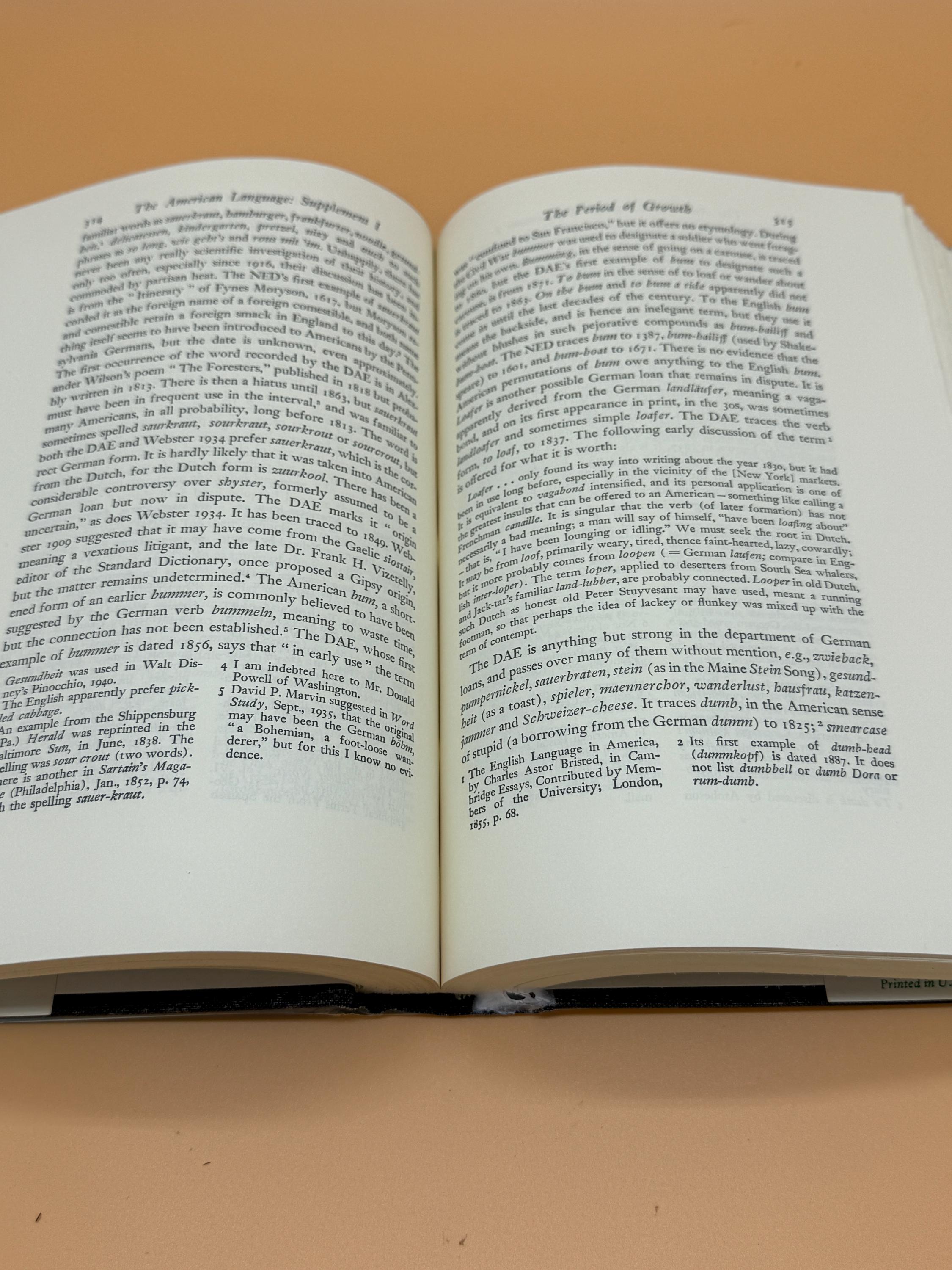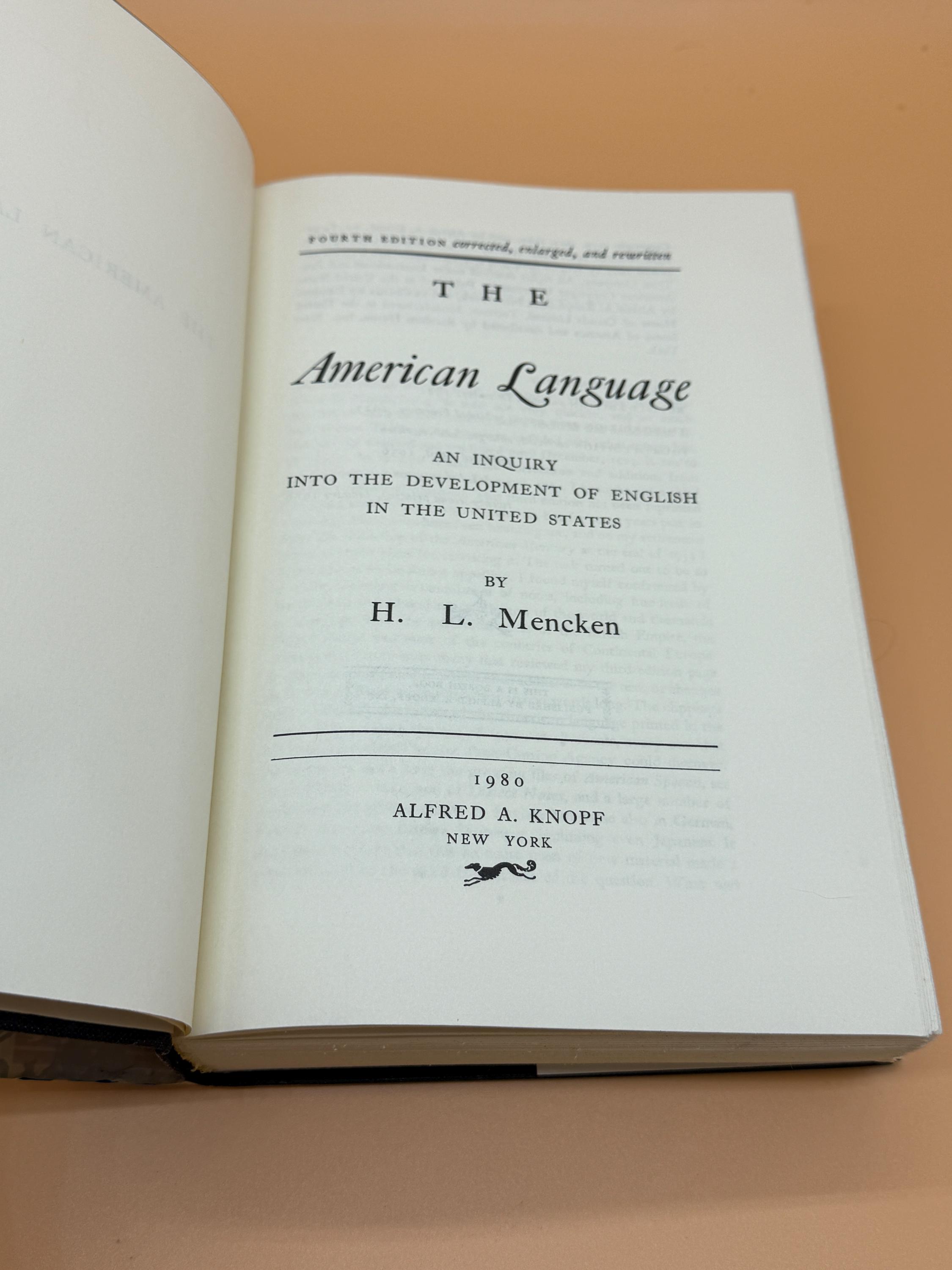 The American Language by H.L. Mencken was first published in 1919. This is the fourth edition corrected, enlarged and rewritten. From the dust jacket; "A thoroughly scientific treatise on the development of American-English, it is at the same time an extremely diverting piece of reading, full of odd stuff to be found nowhere else." There is no other book on the subject which even remotely approaches the value and scope of this one."