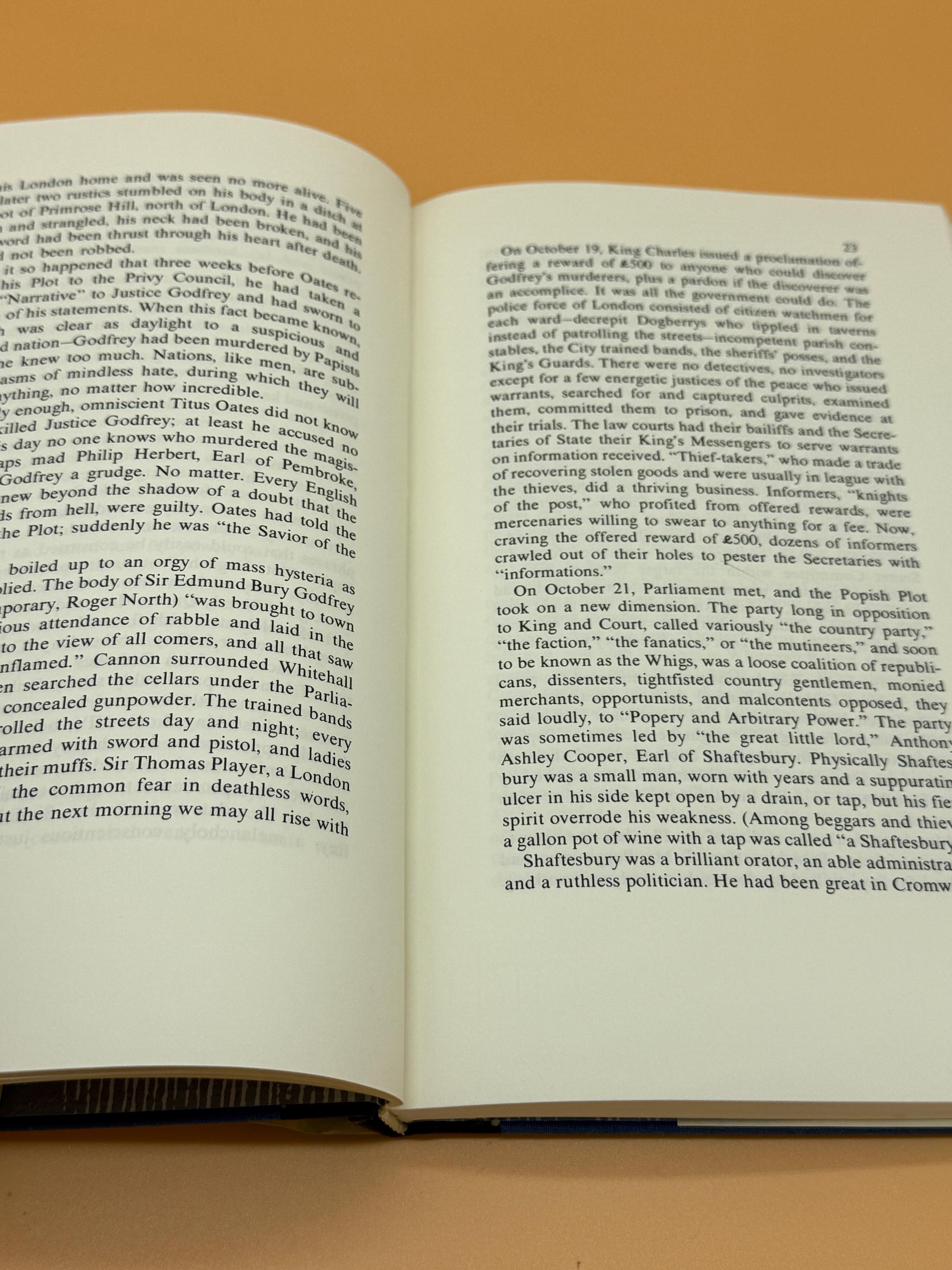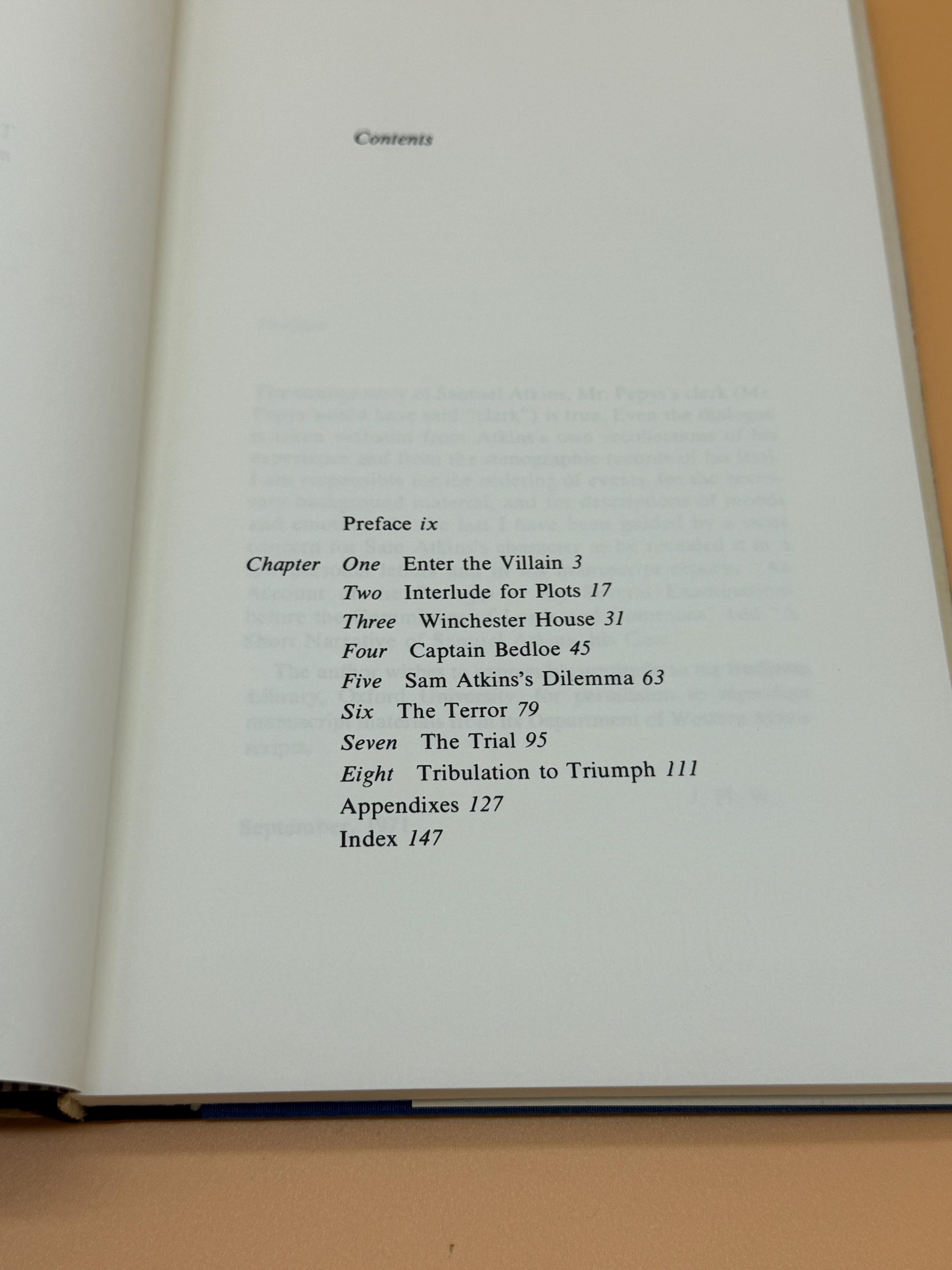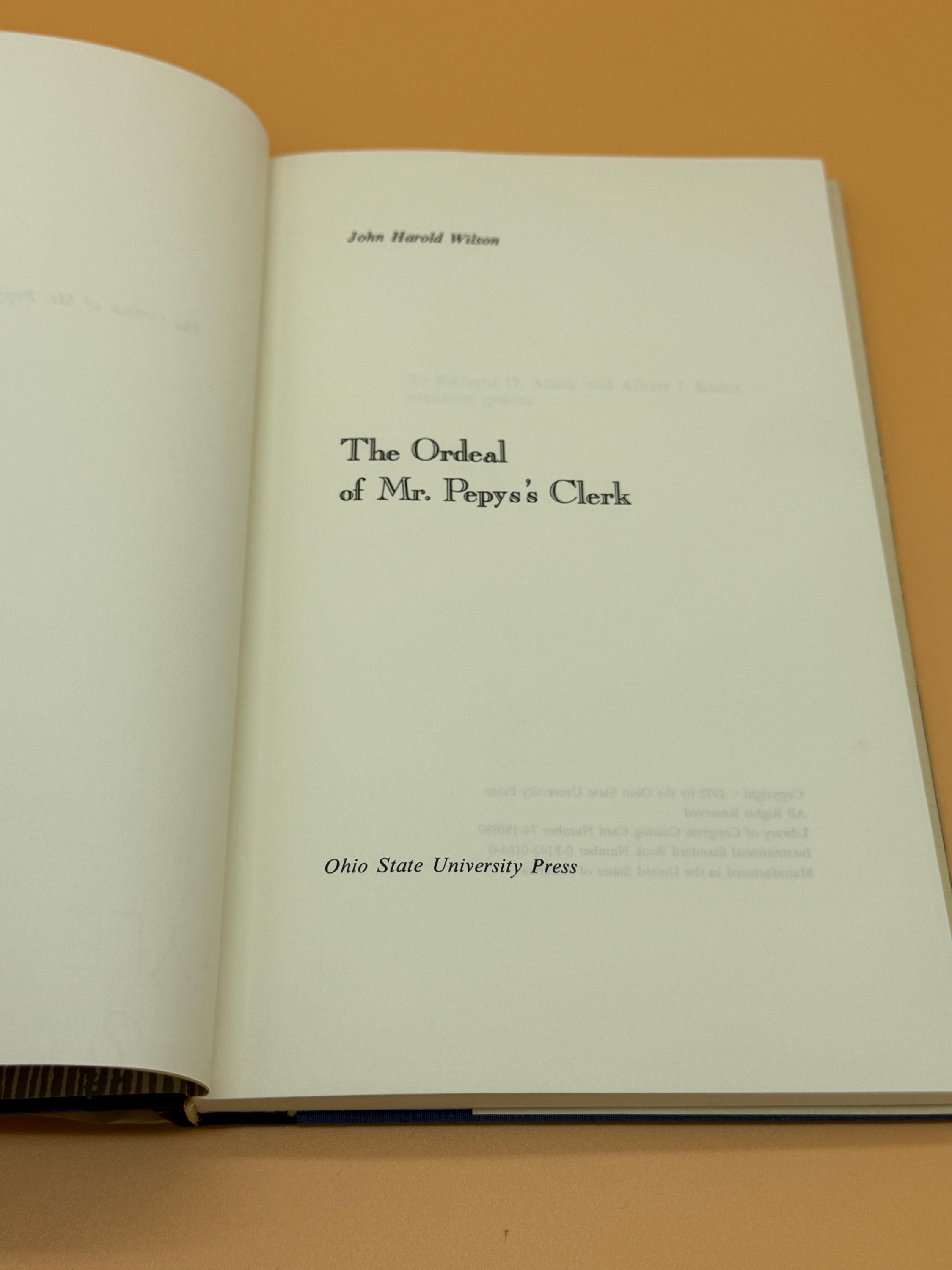 The Ordeal of Mr. Pepys's Clerk by John Harold Wilson is a historic narrative of a figure, a simple man of courage, who rises with dignity and grace to meet the challenge of circumstances beyond his control. "The Ordeal of Mr. Pepys's Clerk" is a historical biography about Samuel Pepys's clerk, Sam Atkins. The book details the difficult and dangerous situation Atkins found himself in as a result of the Popish Plot of 1678. Atkins was during pressured to confess to a murder plot that involved Pepys and the Duke of York.