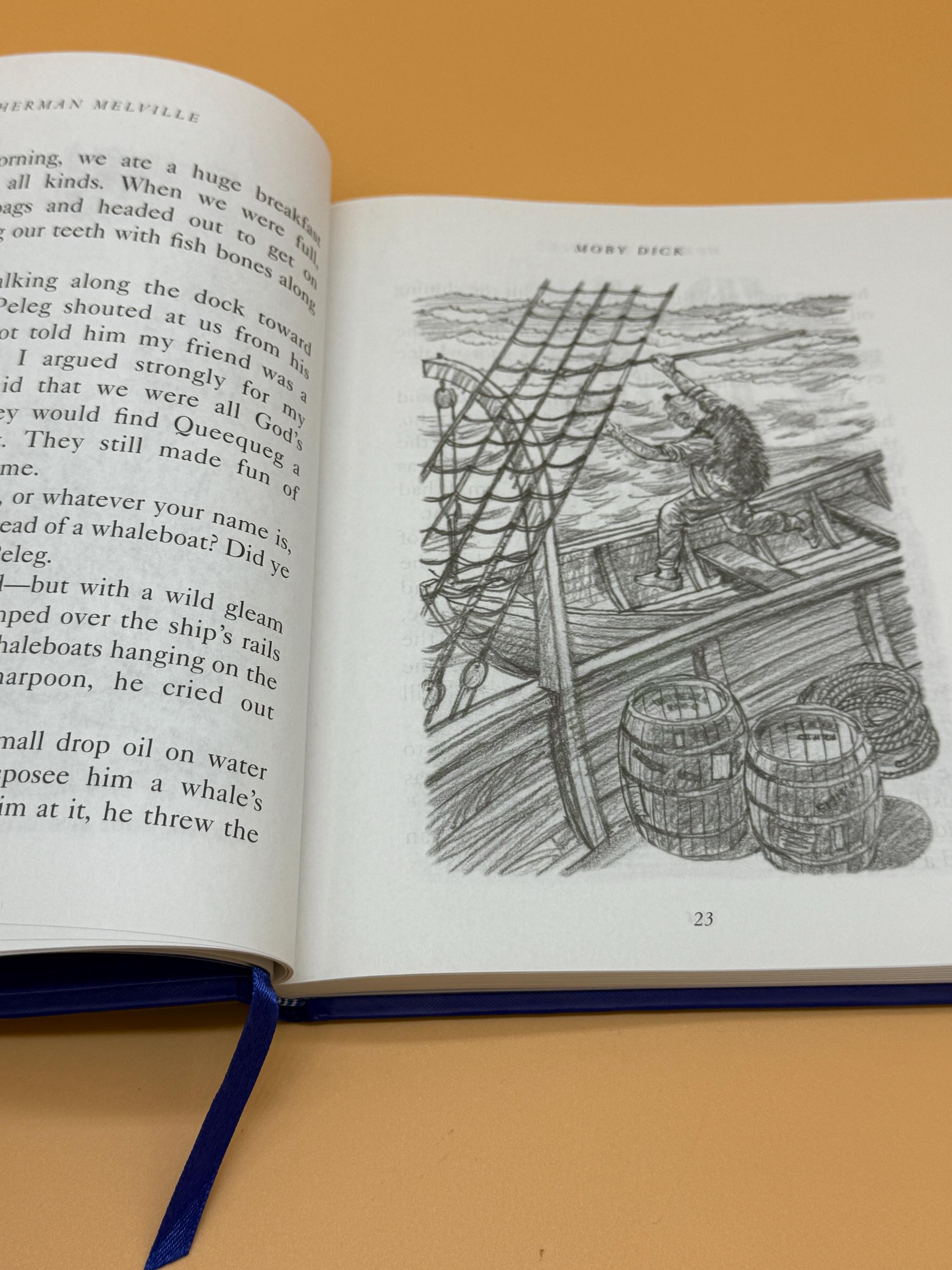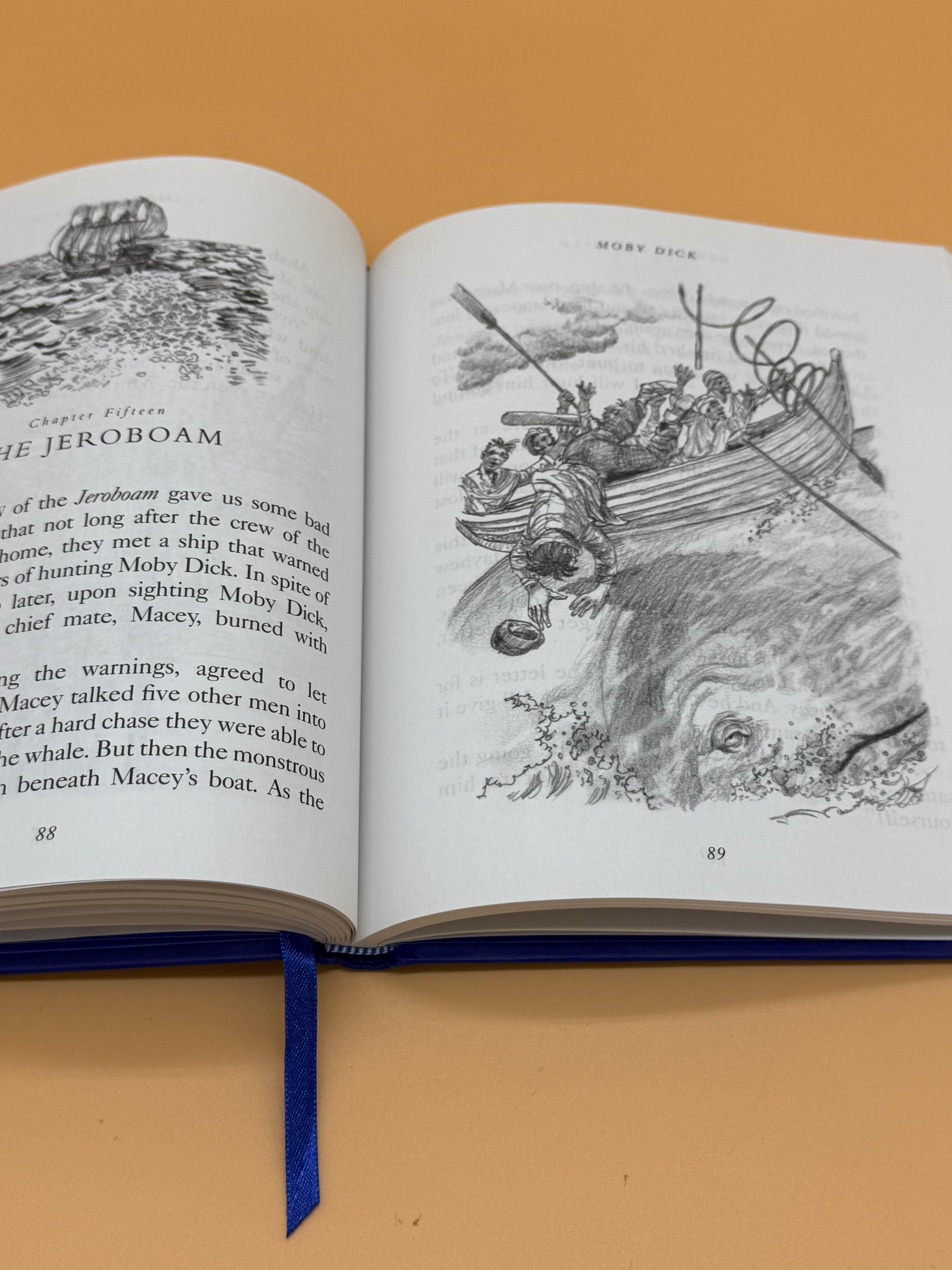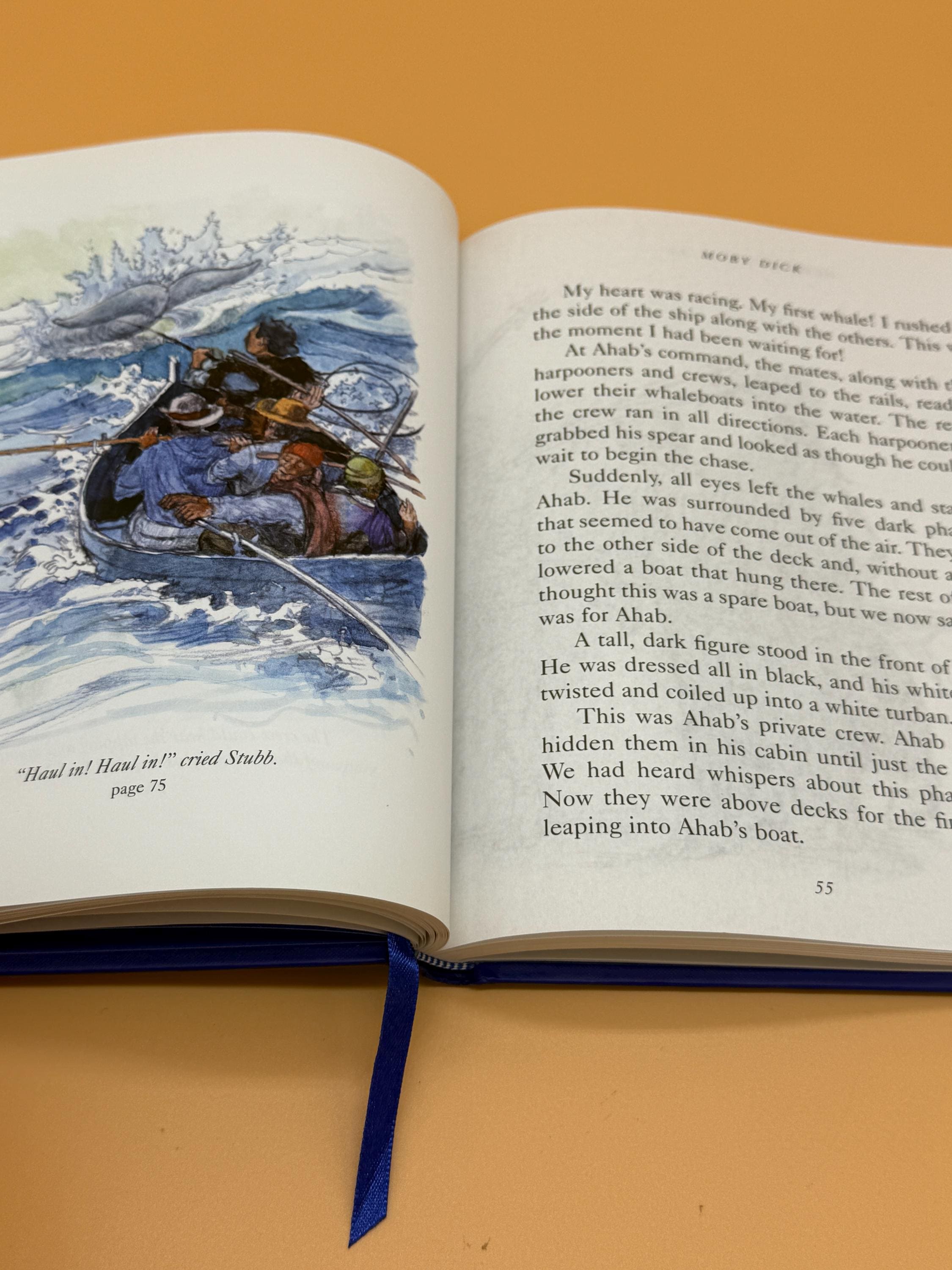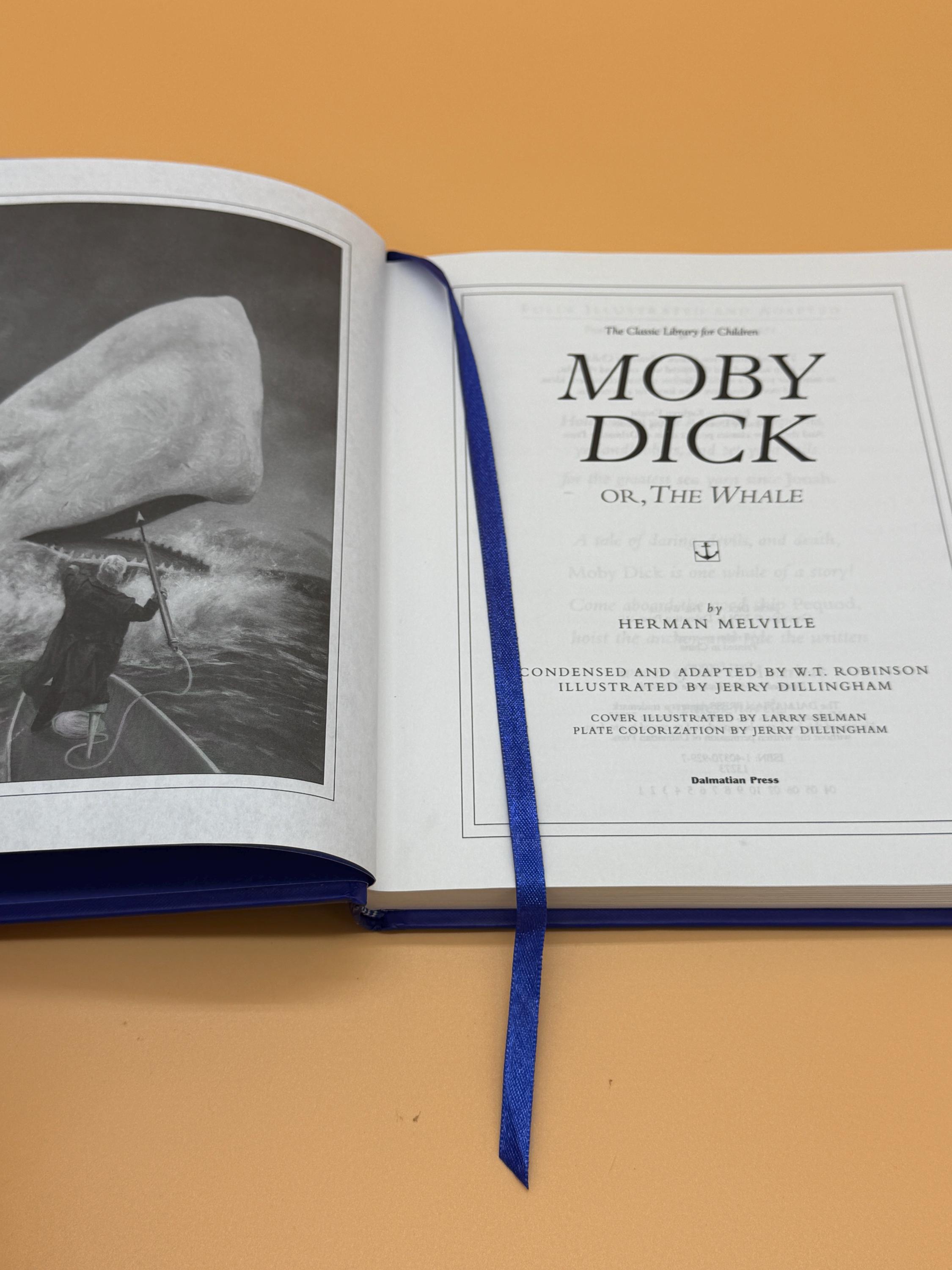 This edition of Moby Dick by Herman Melville has been designed for young readers. It is finely illustrated in black and white line drawings by Larry Salman with color plates by Jerry Dillingham. It is one of the Dalmatian Press Classic Library for Children series.