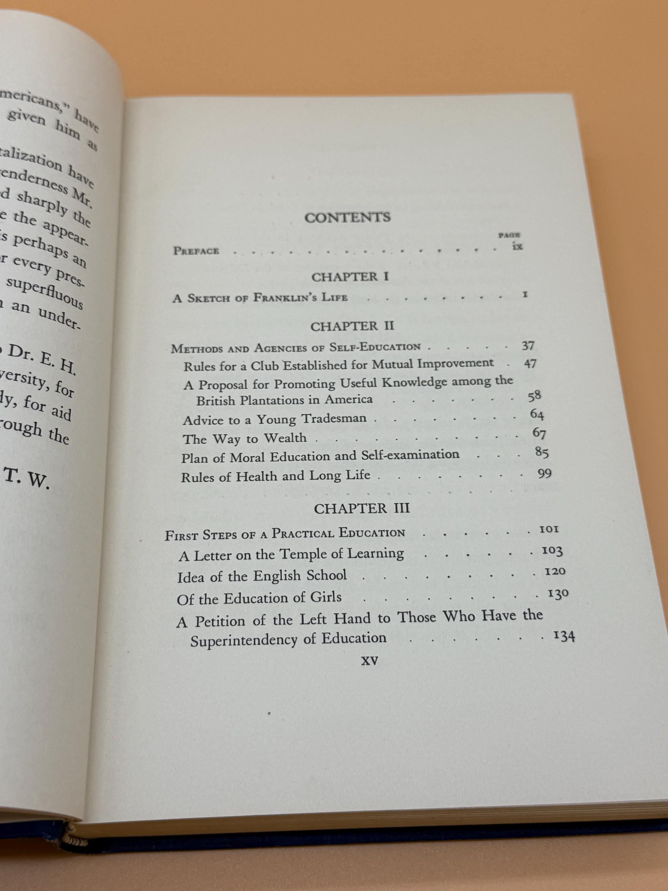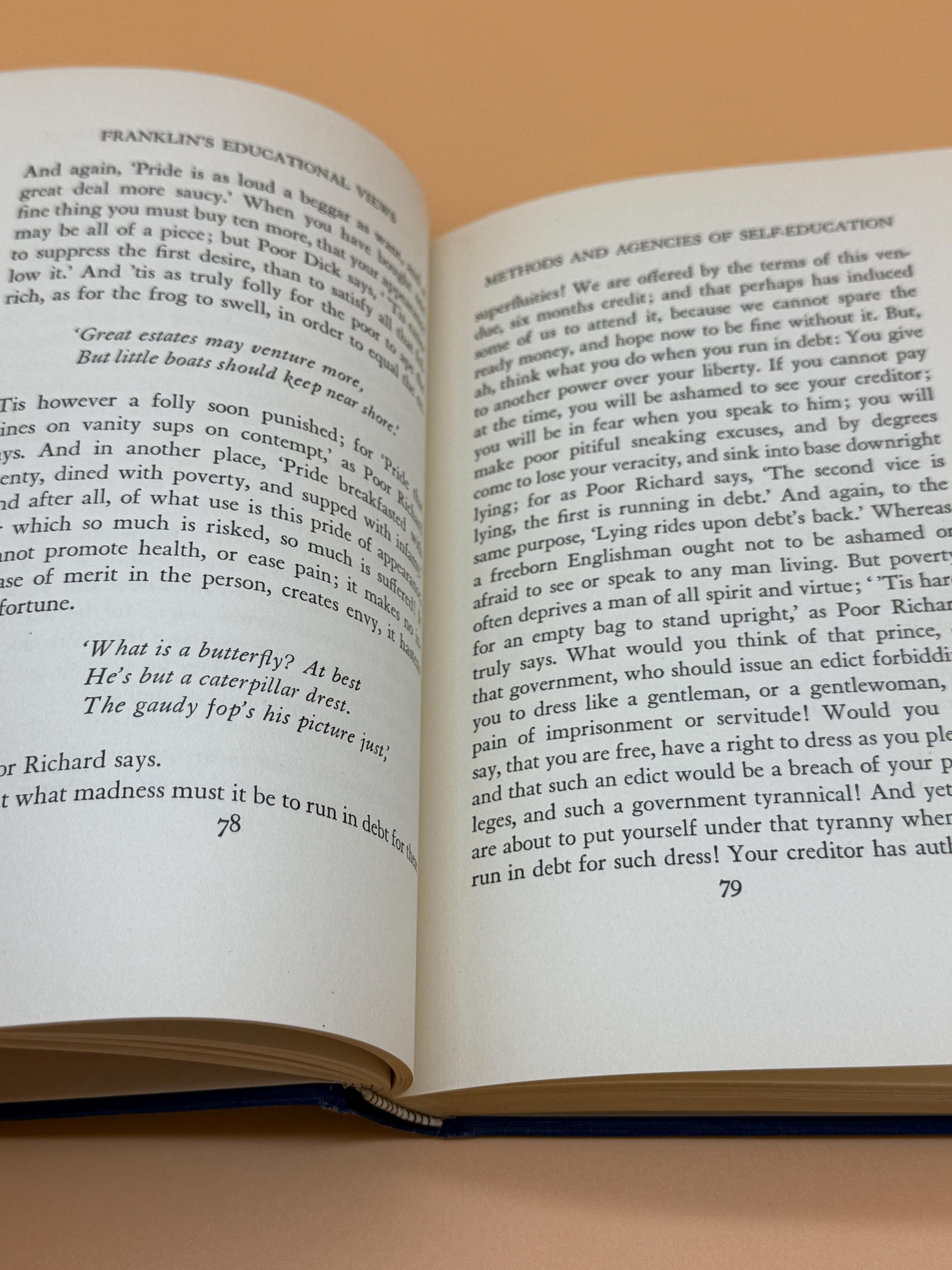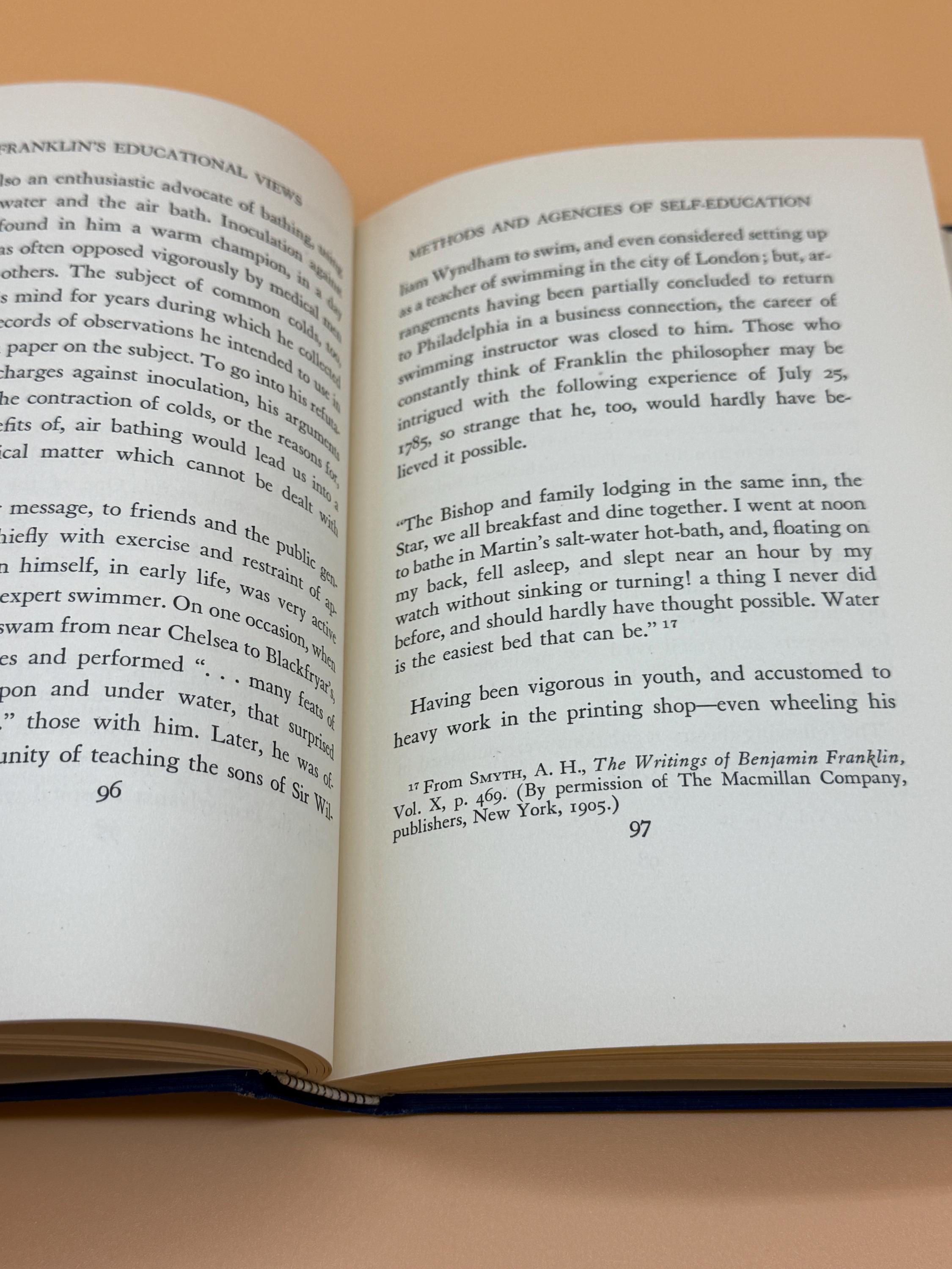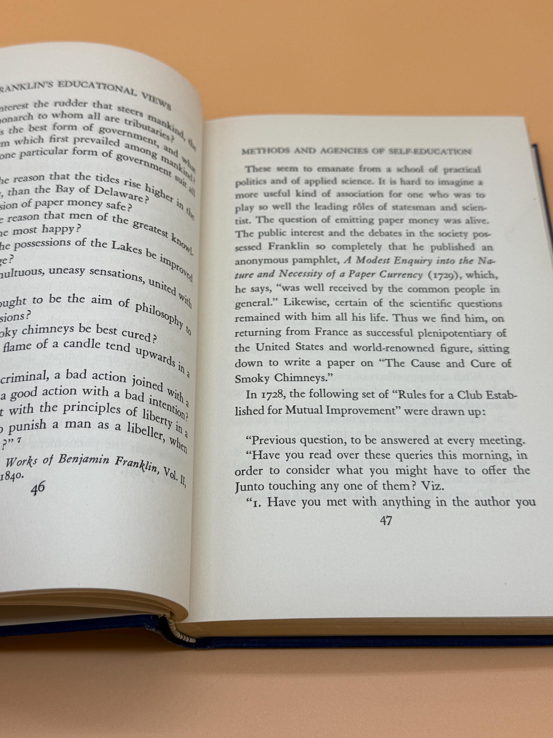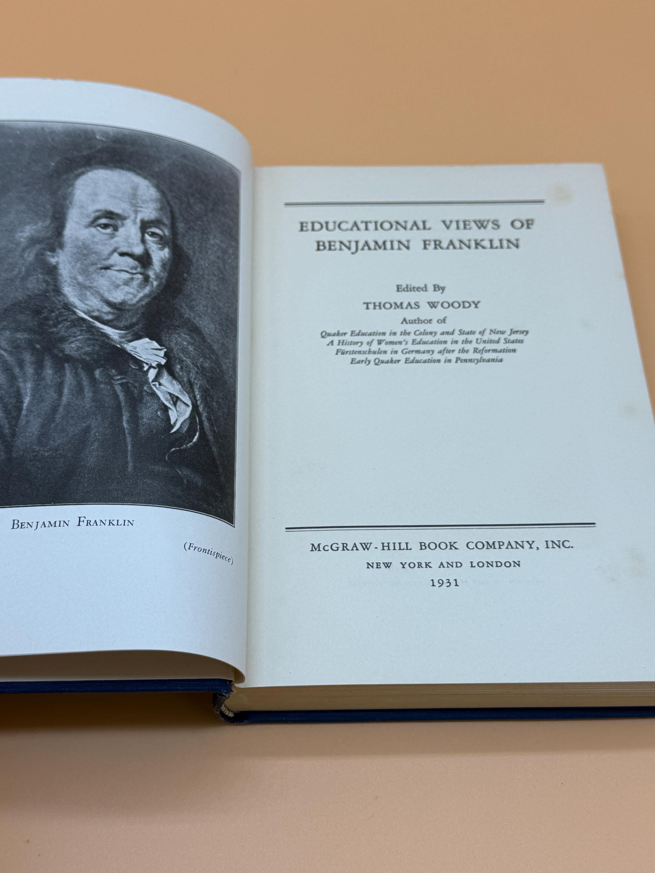 Thomas Woody's 1931 book, Educational Views of Benjamin Franklin, presents Franklin's educational philosophy through selections of his writings. Franklin emphasized practical, self-directed learning for the good of society. The book focuses on Franklin's belief in civic duty, self-improvement, and a curriculum designed to serve human and national needs, rather than purely academic pursuits.