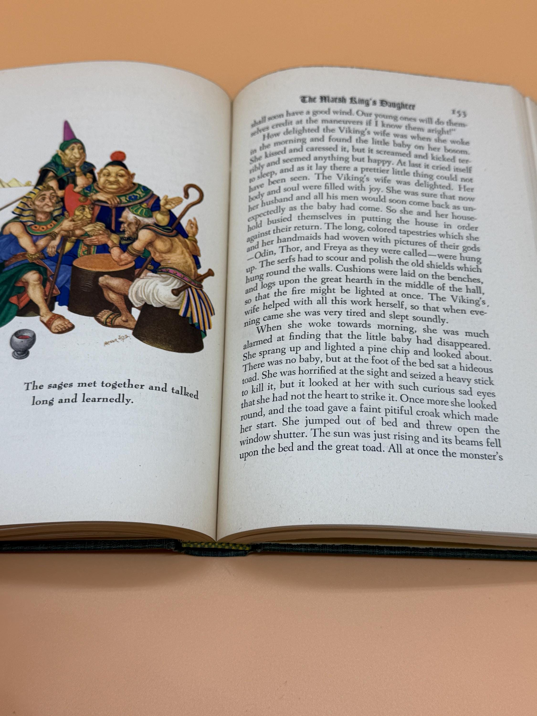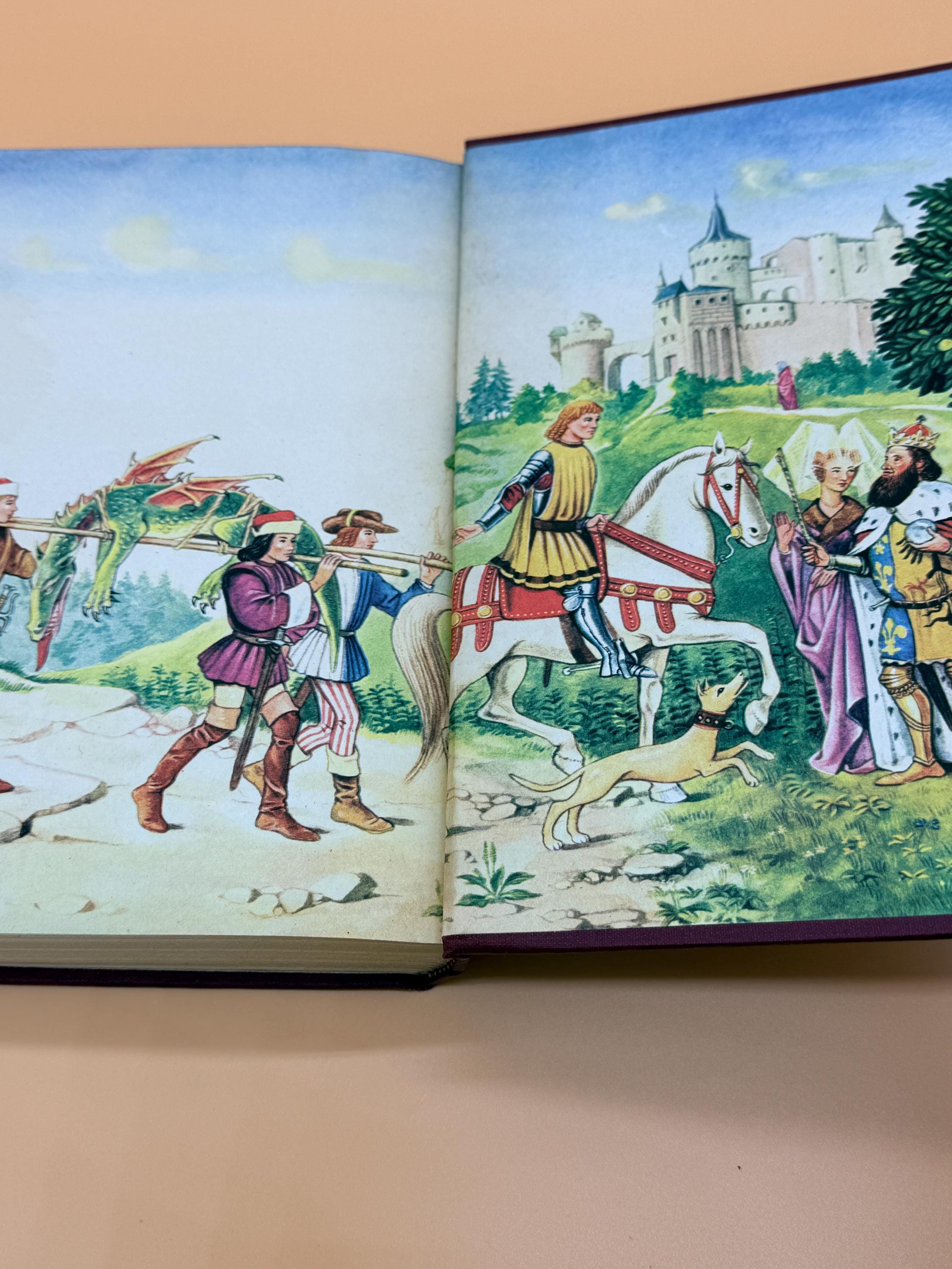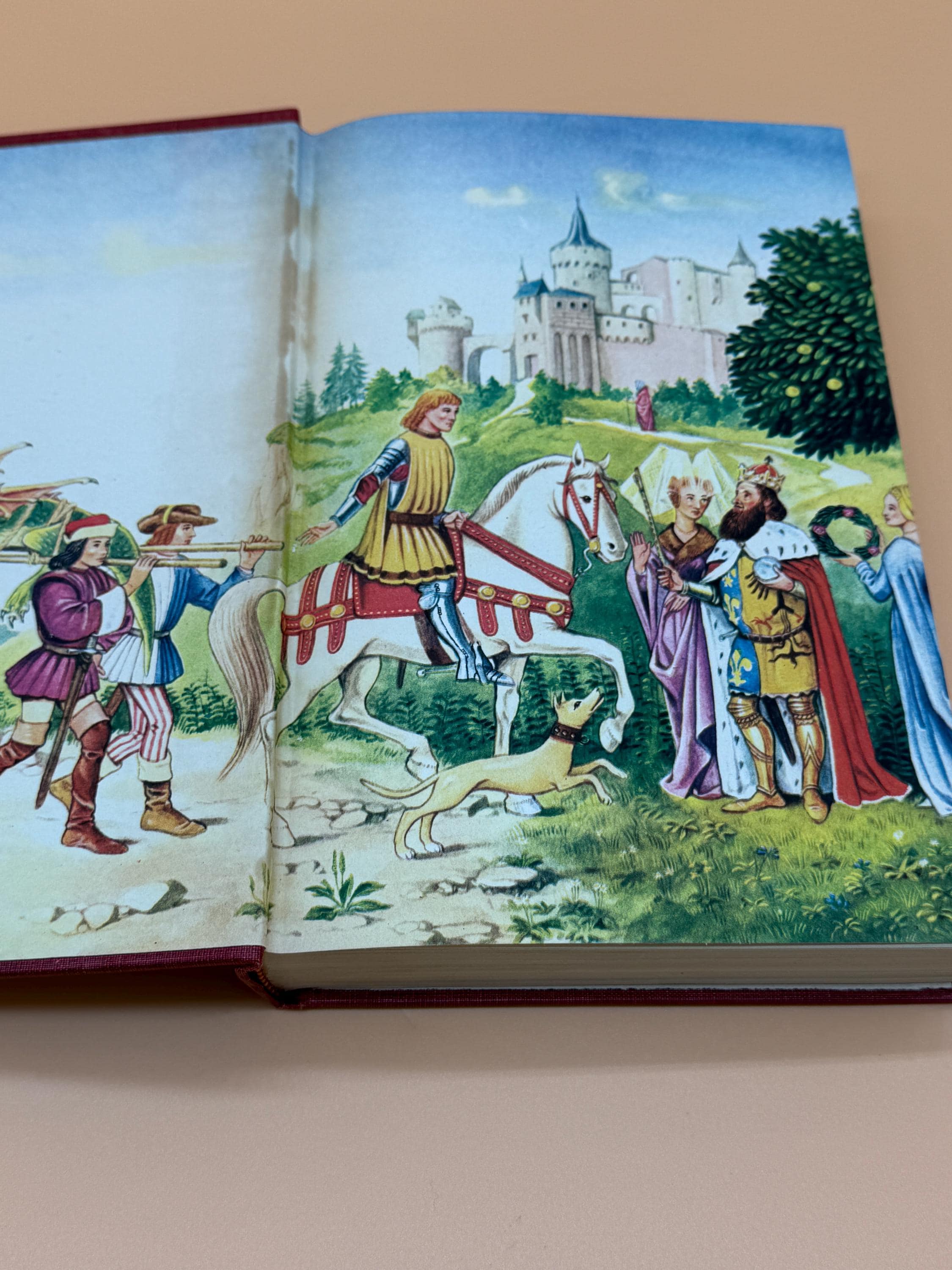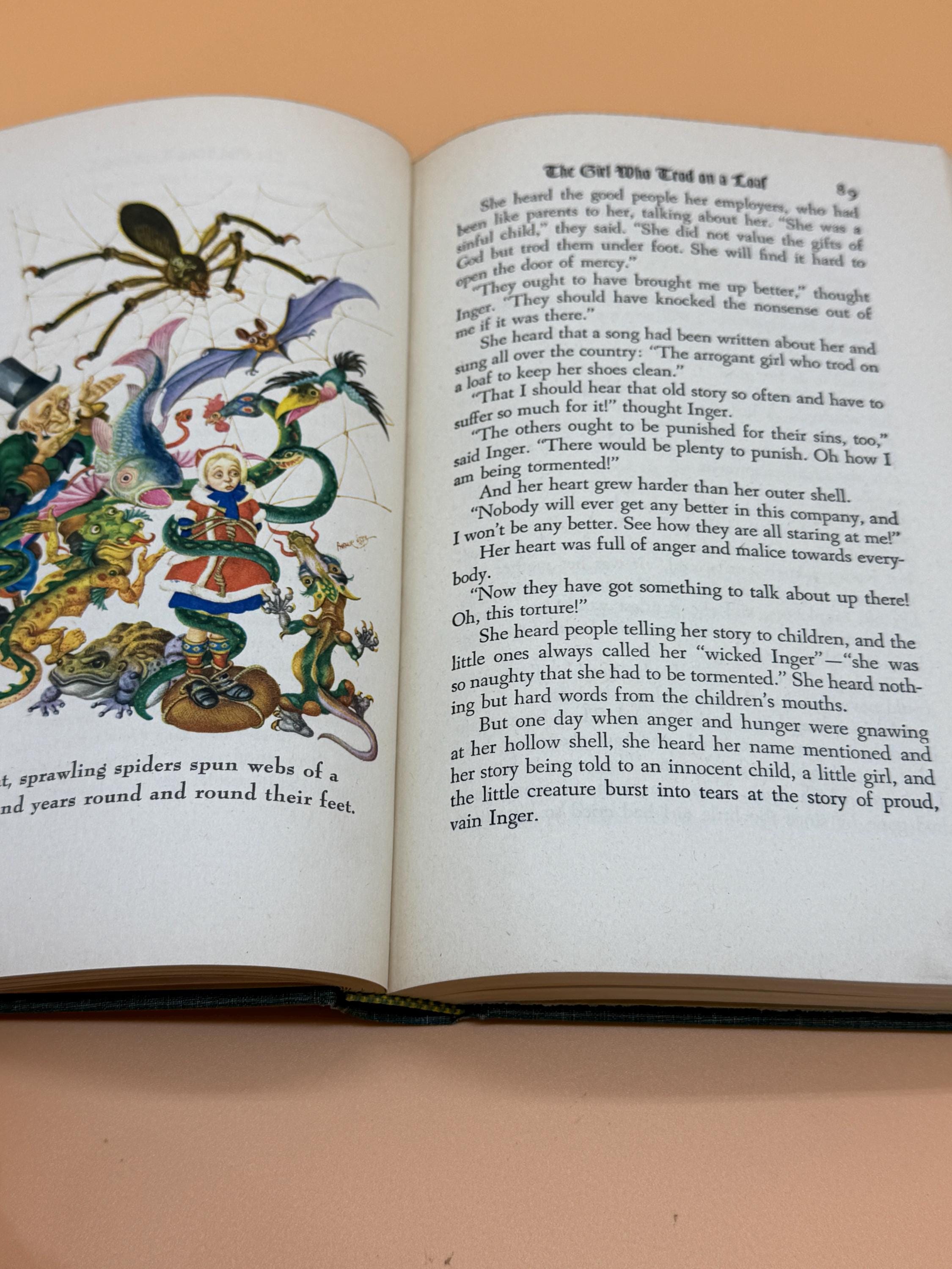 This set of fairy tale books include Andersen's Fairy Tales and Grimm's Fairy Tales. The set was published in 1945 by Grosset and Dunlap. Fritz Kredel illustrated Grimm's Fairy Tales and Arthur Szyk illustrated Andersen's Fairy Tales. Favorites like The Fir Tree, The Ugly Duckling, The Wild Swans, The Princess and The Pea, and many more are found in Andersen's Fairy Tales. Grimm's Fairy Tales include The Golden Bird, The Goose Girl, The Frog Prince, The Queen Bee, Rumpelstiltskin, Rapunzel, The Raven and many more.