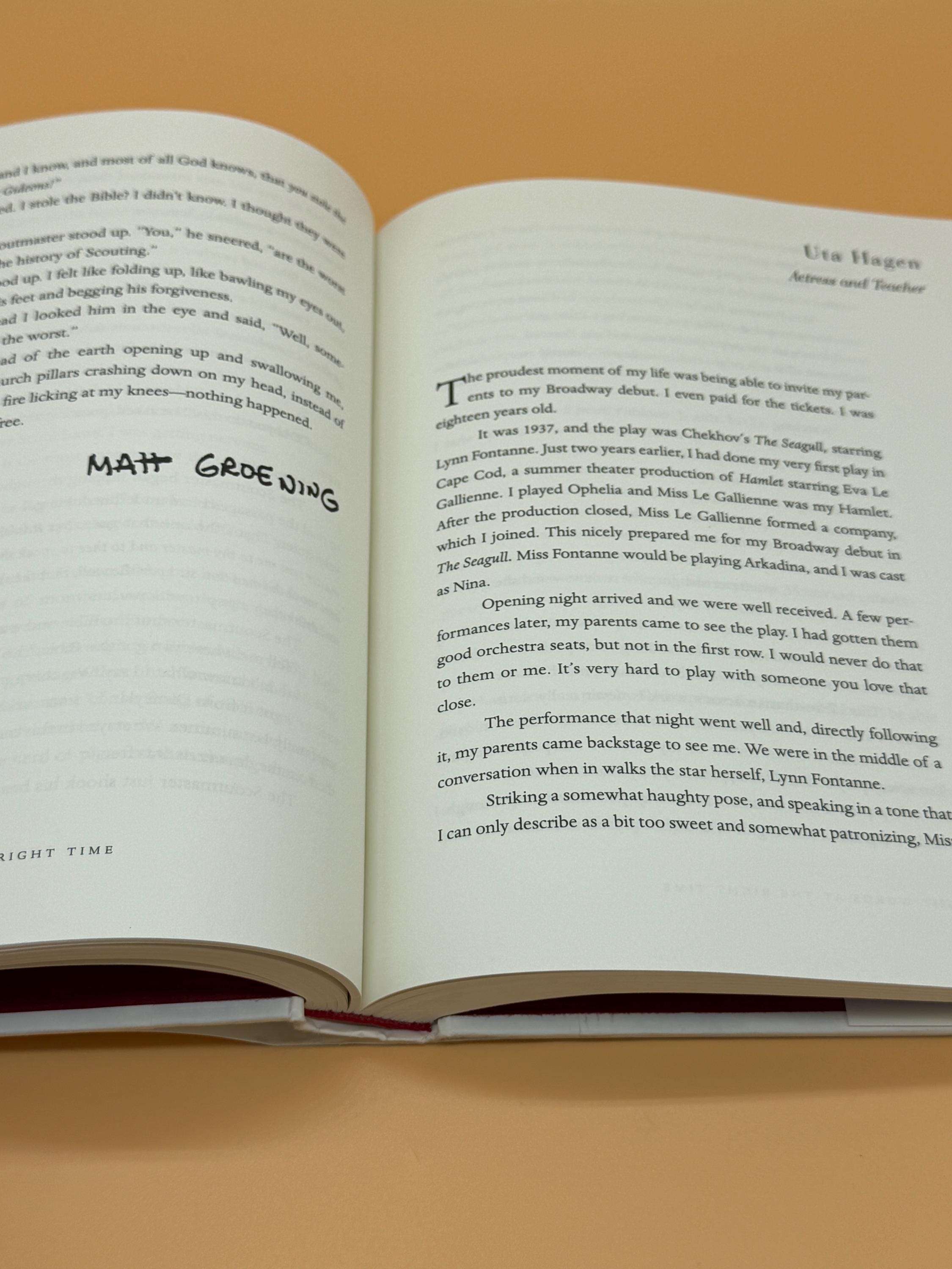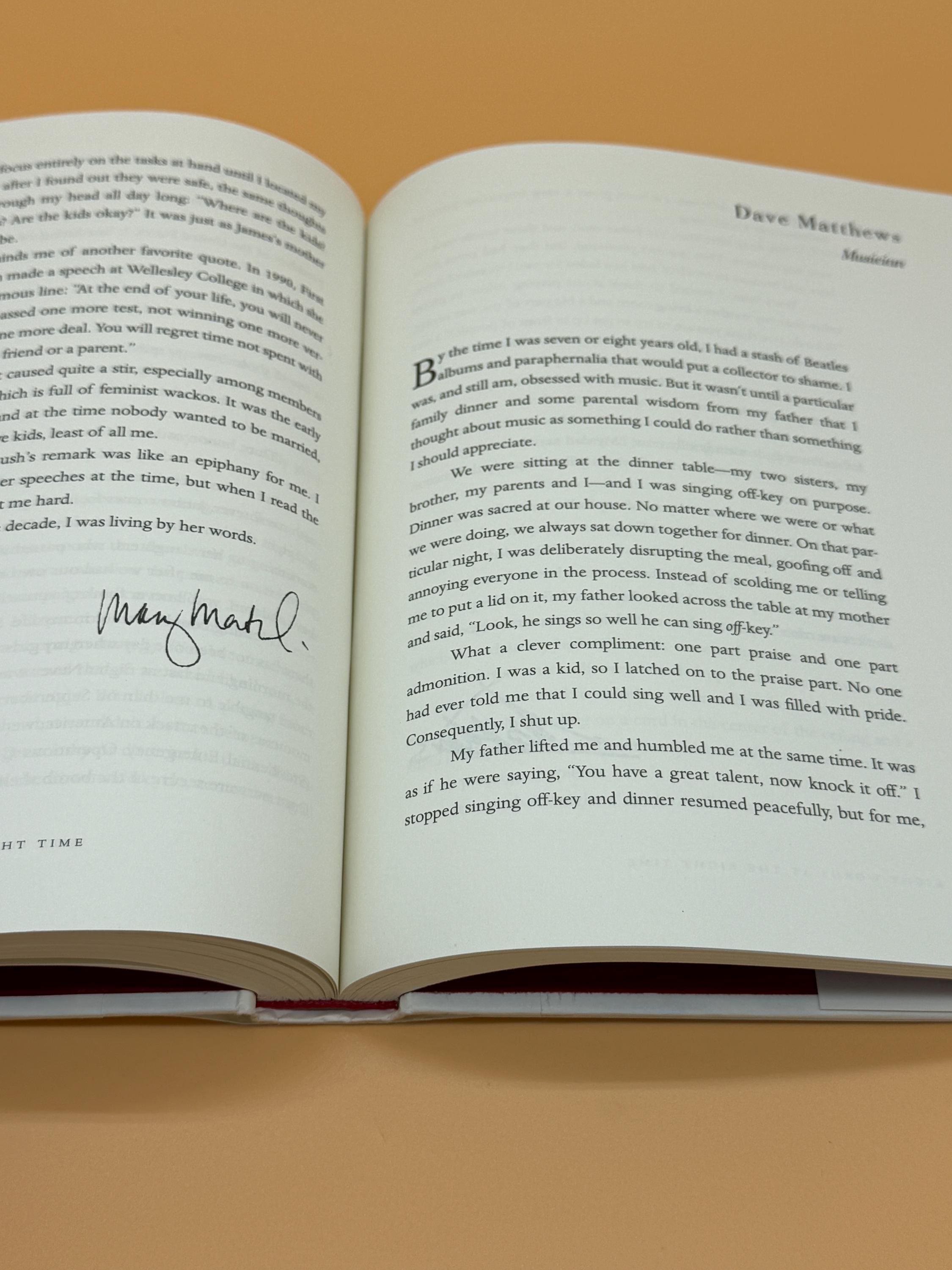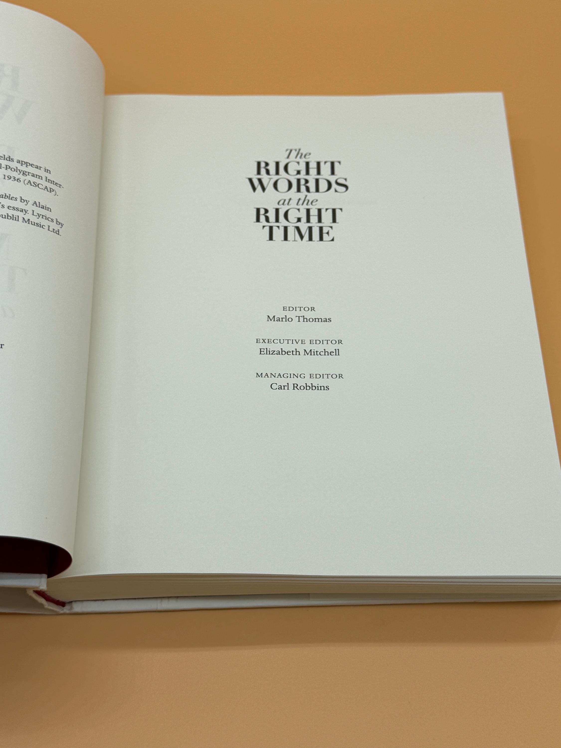 The Right Words at The Right Time by Marlow Thomas and Friends is an inspirational journey with first-person accounts of challenged and victories by famous people such as Muhammad Ali, Tom Wolfe, Katie Couric, Billy Crystal, Steven Spielberg, Mel Brooks, Laura Bush and more. The stories encompass life's struggles and adventures and demonstrate how people we admire found inspiration and hope through words from family and friends, movies and plays, music or jokes and continued onward.