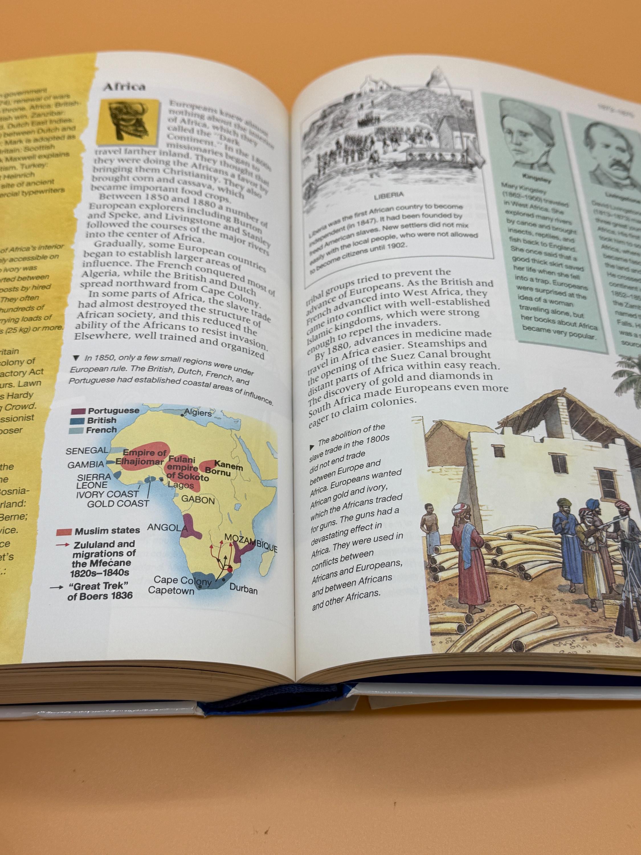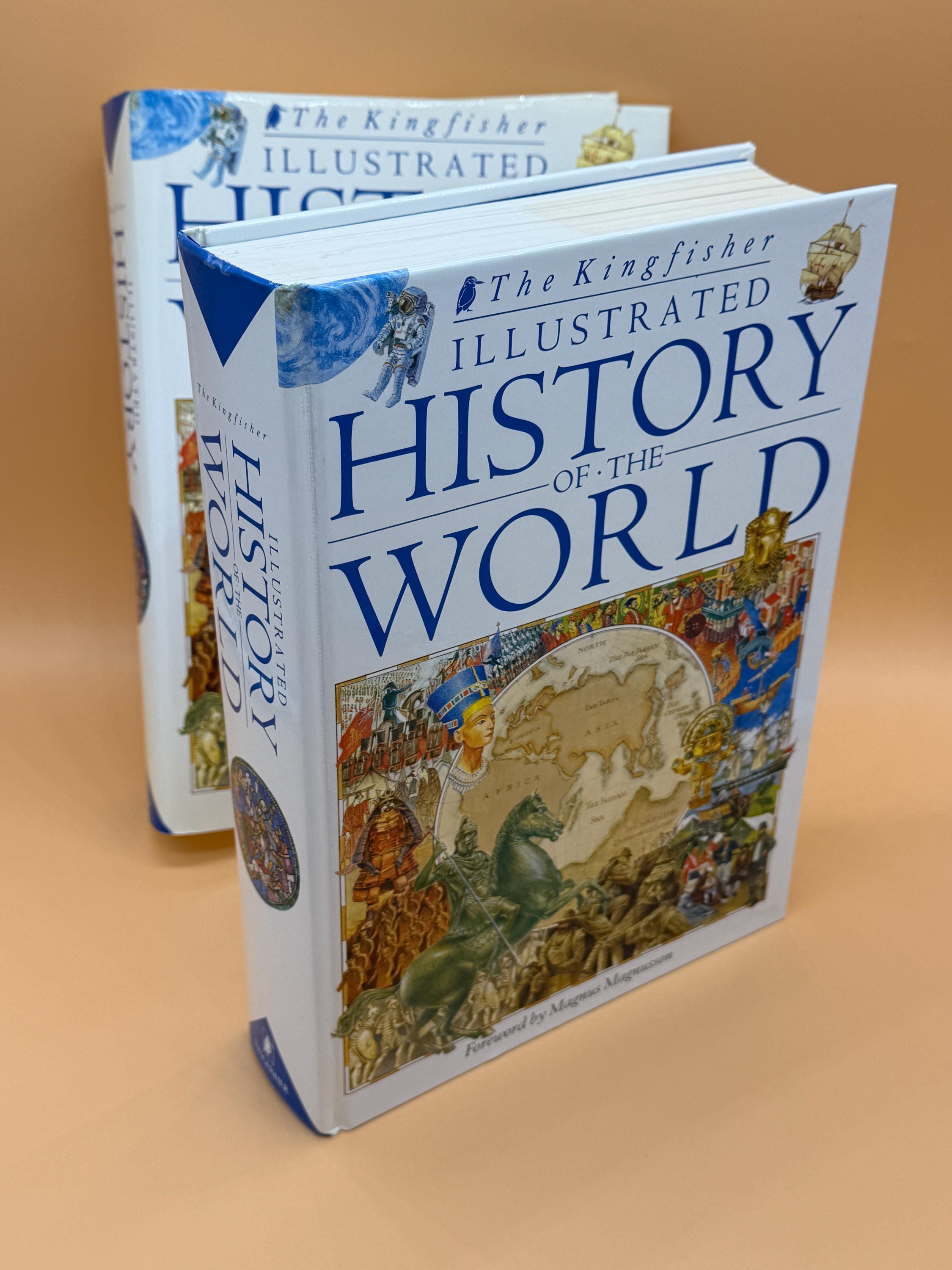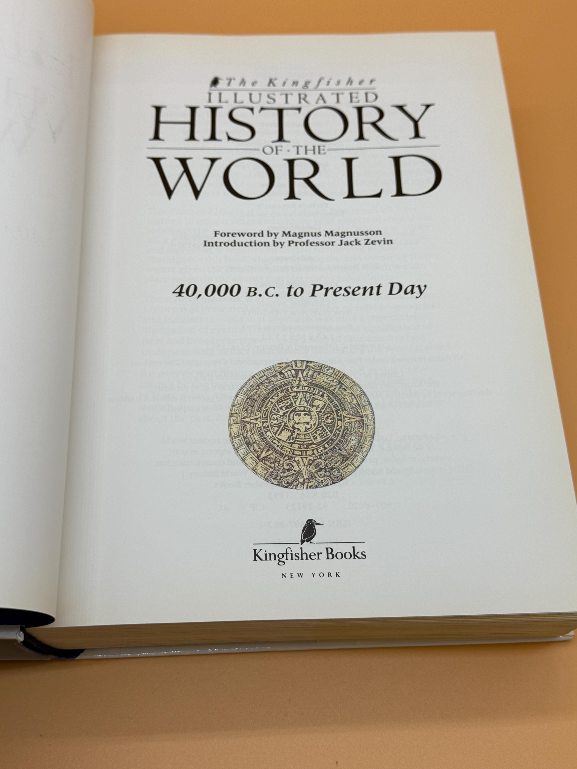The Kingfisher Illustrated History of the World is a monumental volume that tells the history of the world from 40,000 B.C. through the time when people settled and developed the first civilizations up to present day. Informative essays are linked by a chronological timeline of significant dates and events. Includes 250 essays covering major historical events, over 1600 color and black and white illustrations and photos, over 100 maps, and nearly 100 bio's of important historical figures.