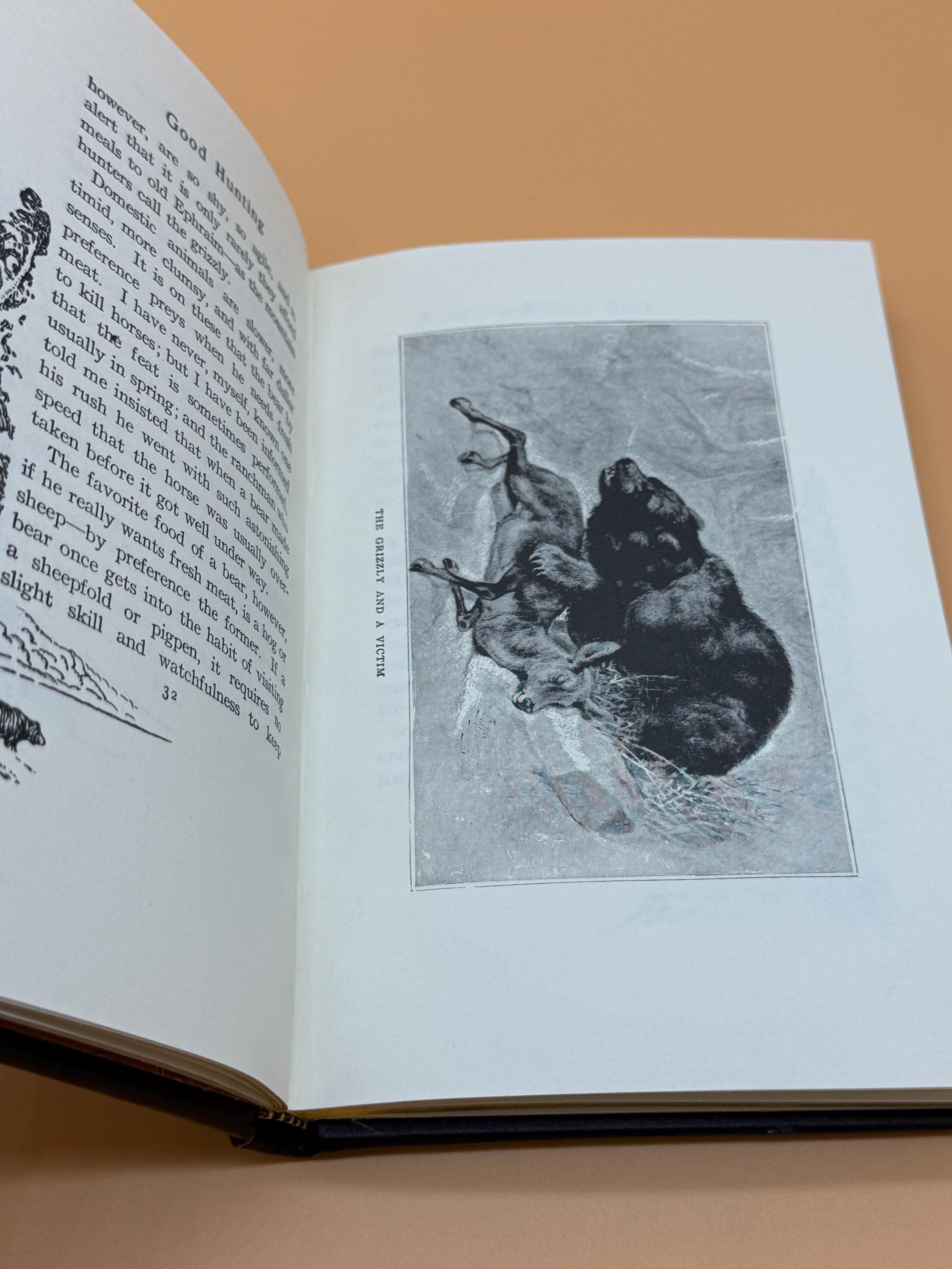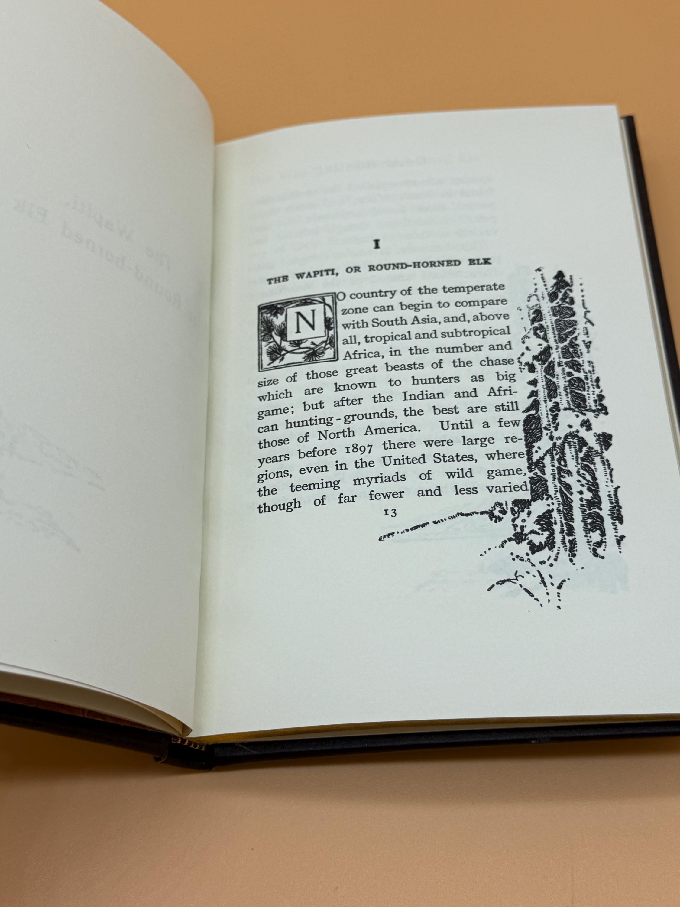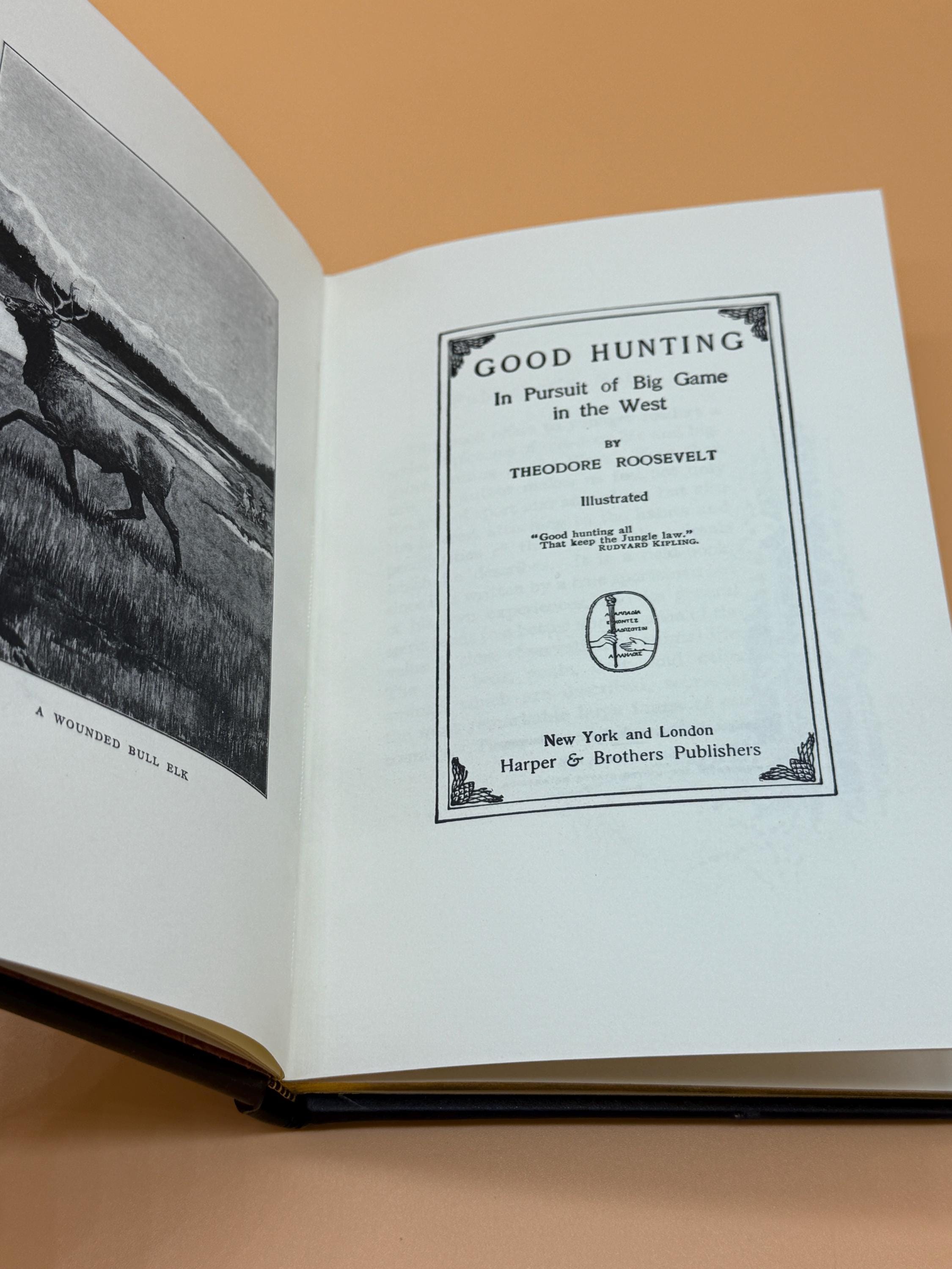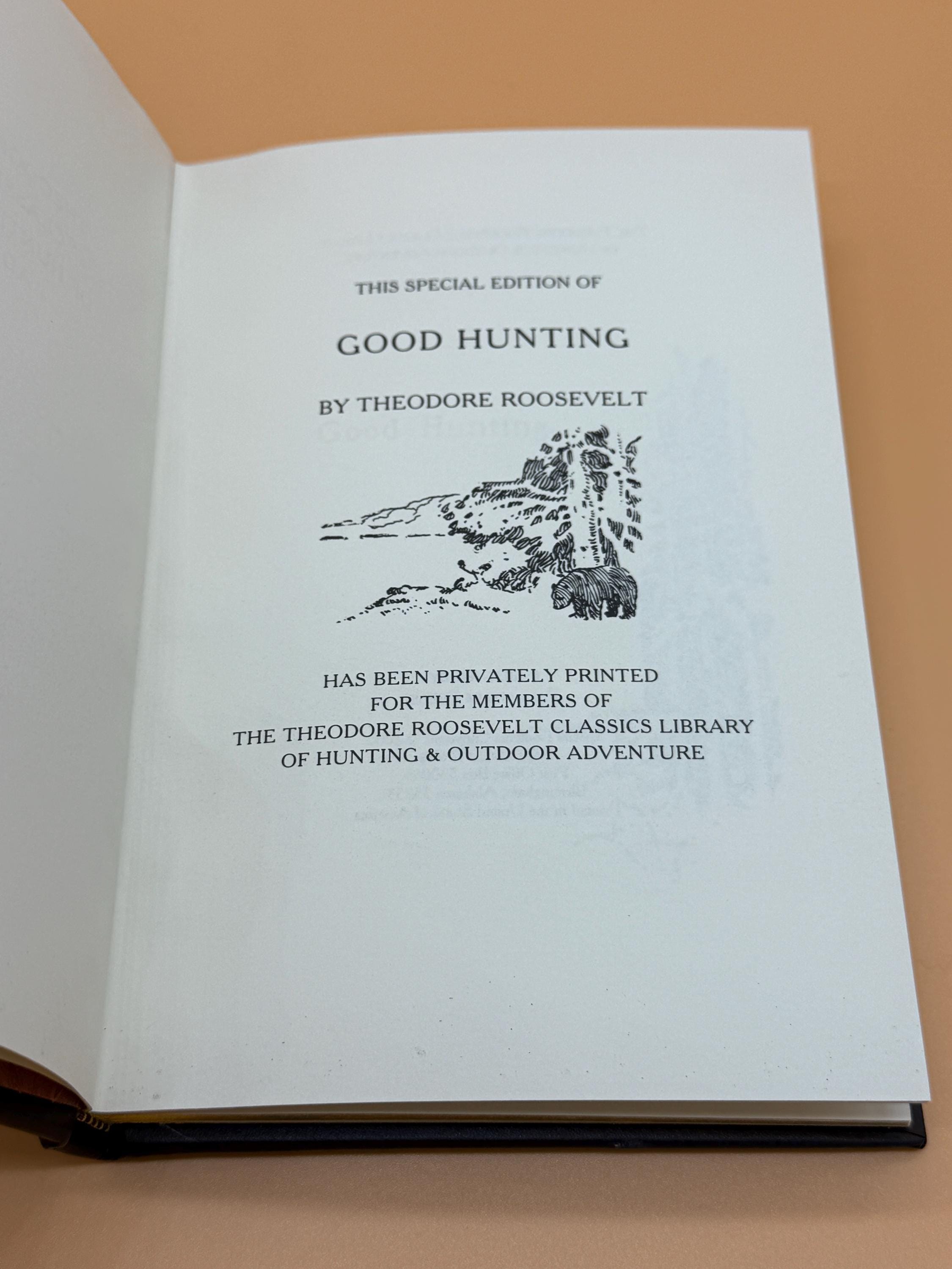 Good Hunting In Pursuit of Big Game in The West by Theodore Roosevelt is a field book that gives an appreciation of close observation of animal life. Elk, bear, goats, deer, and other animals are described. Roosevelt was a keen observer of nature and the first president to begin preserving nature sites. This special edition from Palladium Press was privately printed for members of the Theodore Roosevelt Classics Library of Hunting and Outdoor Adventure. It includes an illustrated frontispiece and three other illustrations.