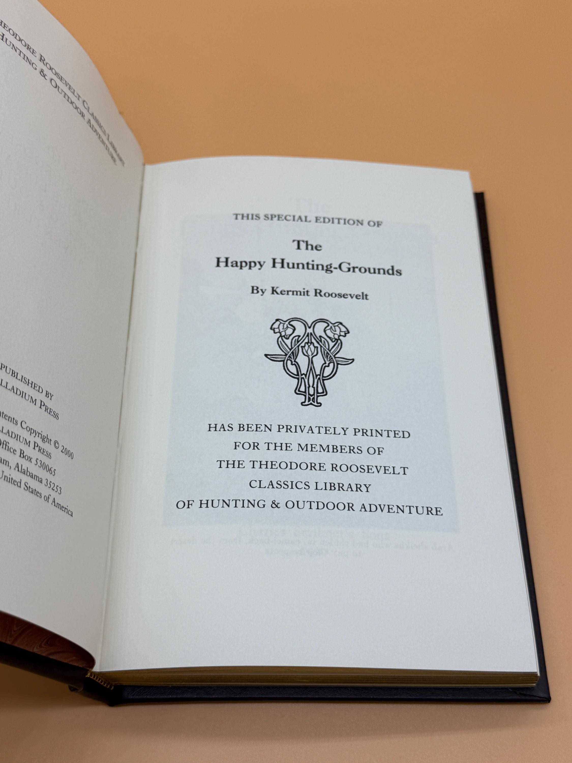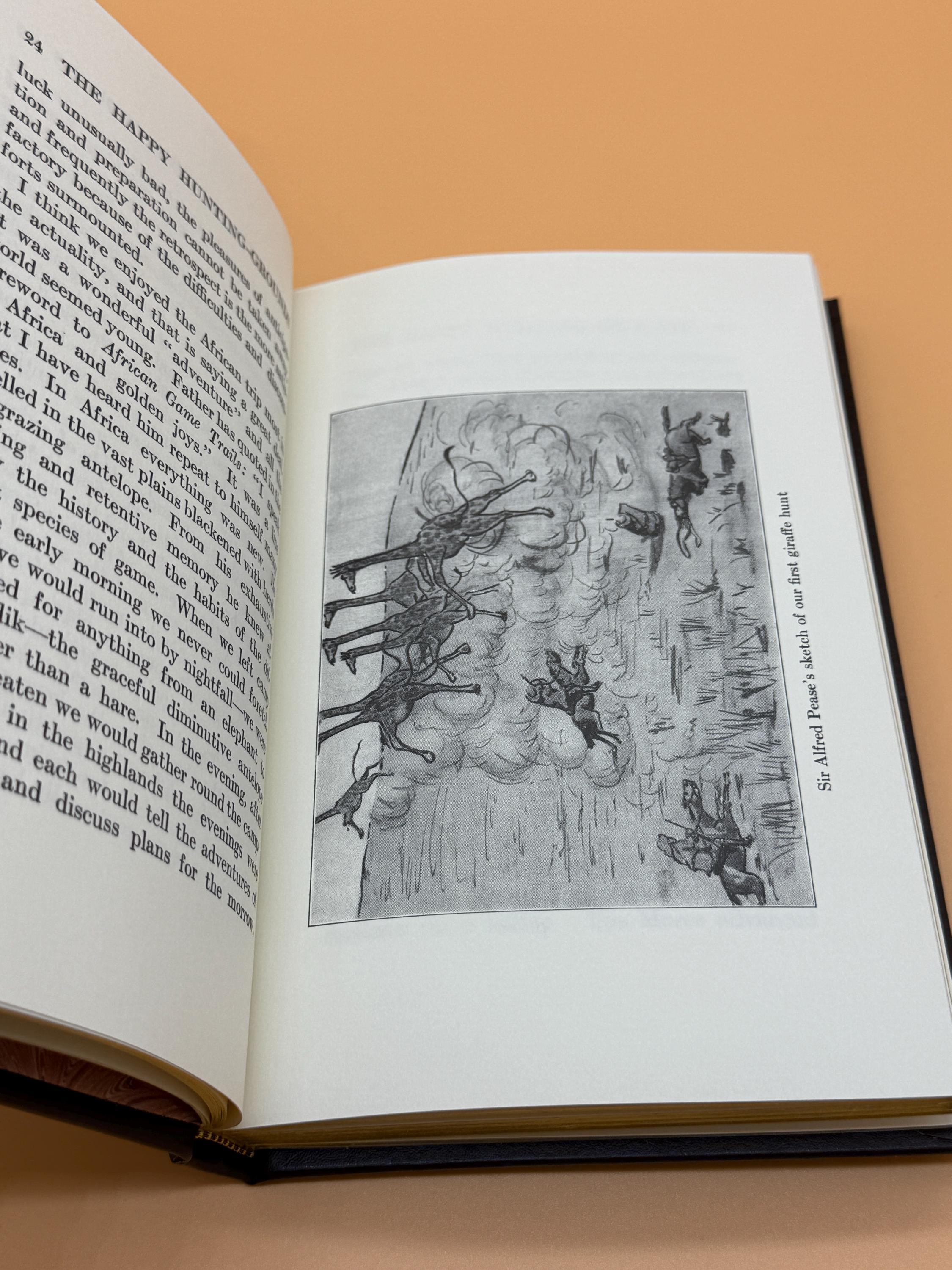 This is a near fine (almost like new) leather bound hardcover. 2000 Palladium Press Special Edition privately printed for The Theodore Roosevelt Classics Library of Hunting and Outdoor Adventure. This copy is still crisp and clean inside and out. The pages are crisp and clean. The binding is tight and straight. Bound in brown leather the edition features gold giraffe design and lettering front and spine with all three page edges tipped in gold gilt. Marbled endpapers front and back. Smaller hardcover, crown octavo book size or 5" x 8" with 182 pages.