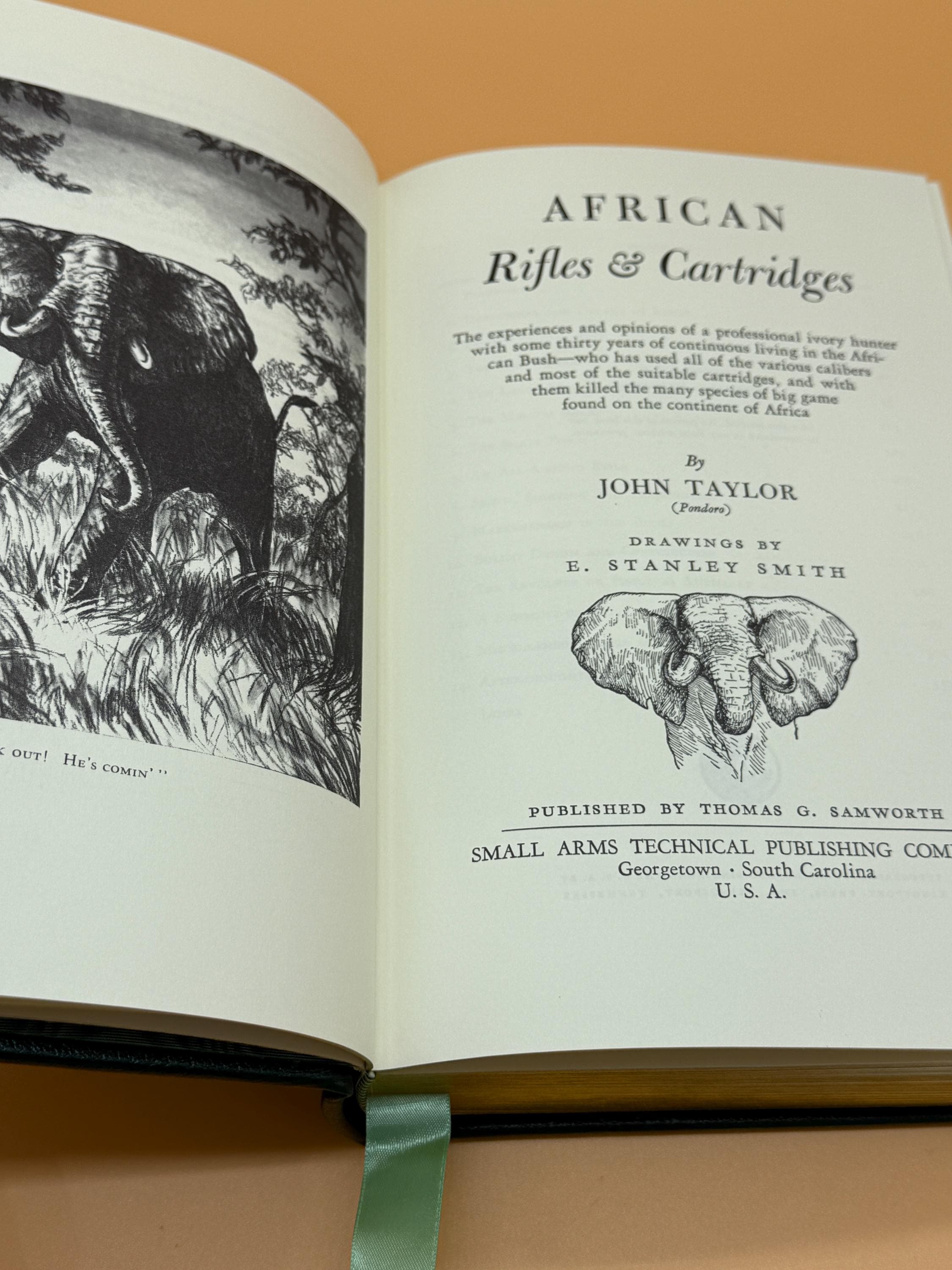 African Rifles and Cartridges by John Taylor recounts the authors experiences in Africa as a professional hunter. His extensive knowledge of firearms and ammunition is detailed. Some of the most interesting parts of the book recount his travels throughout Africa. Taylor lived in relative isolation during his hunts which often totaled 2-3 years. He was eventually forced to leave Africa for various reasons that included poaching and personal reasons. His time in Africa encompassed from the early 1920's to the outbreak of World War Two. The book is nicely illustrated by E. Stanley Smith.
