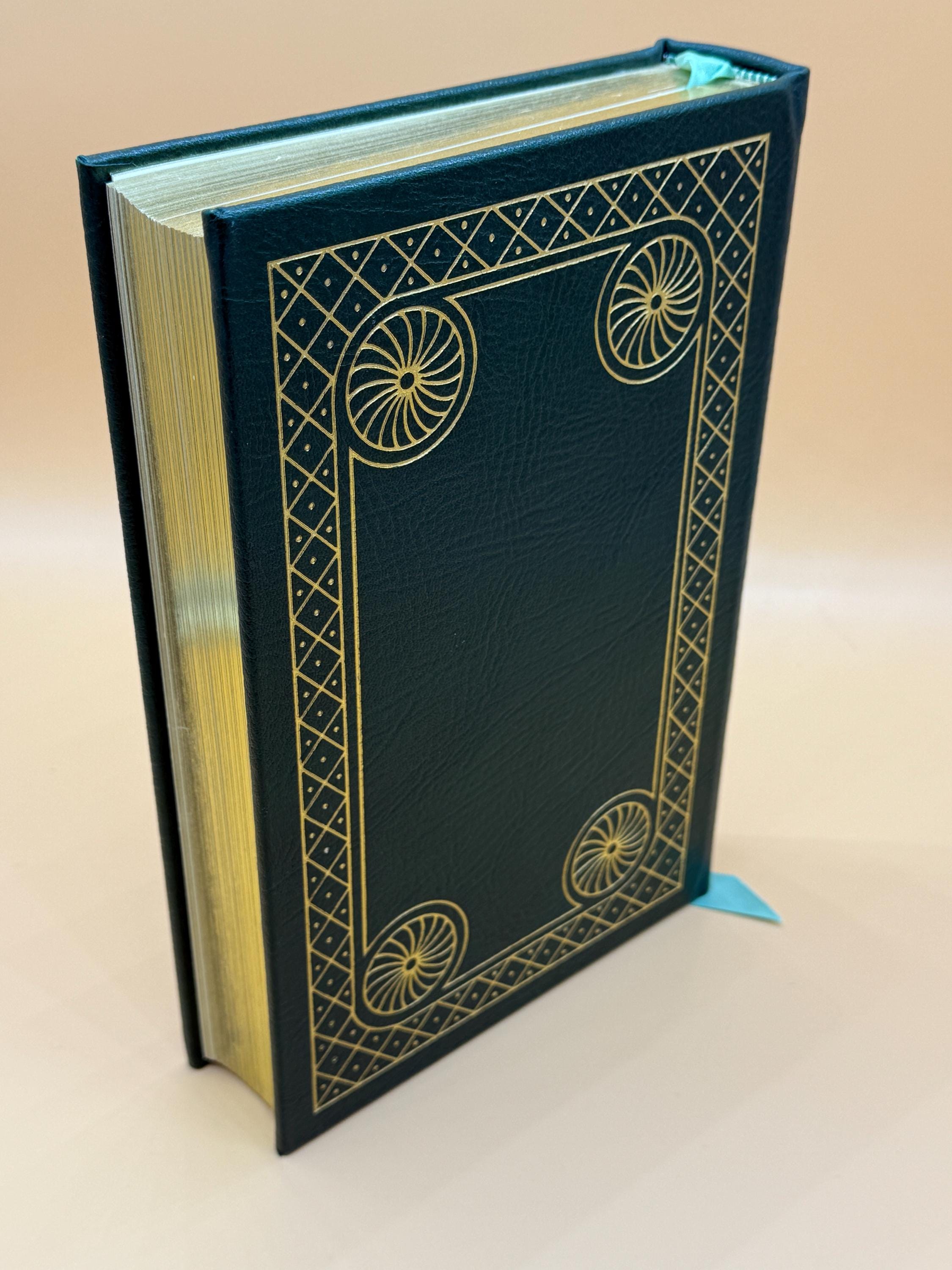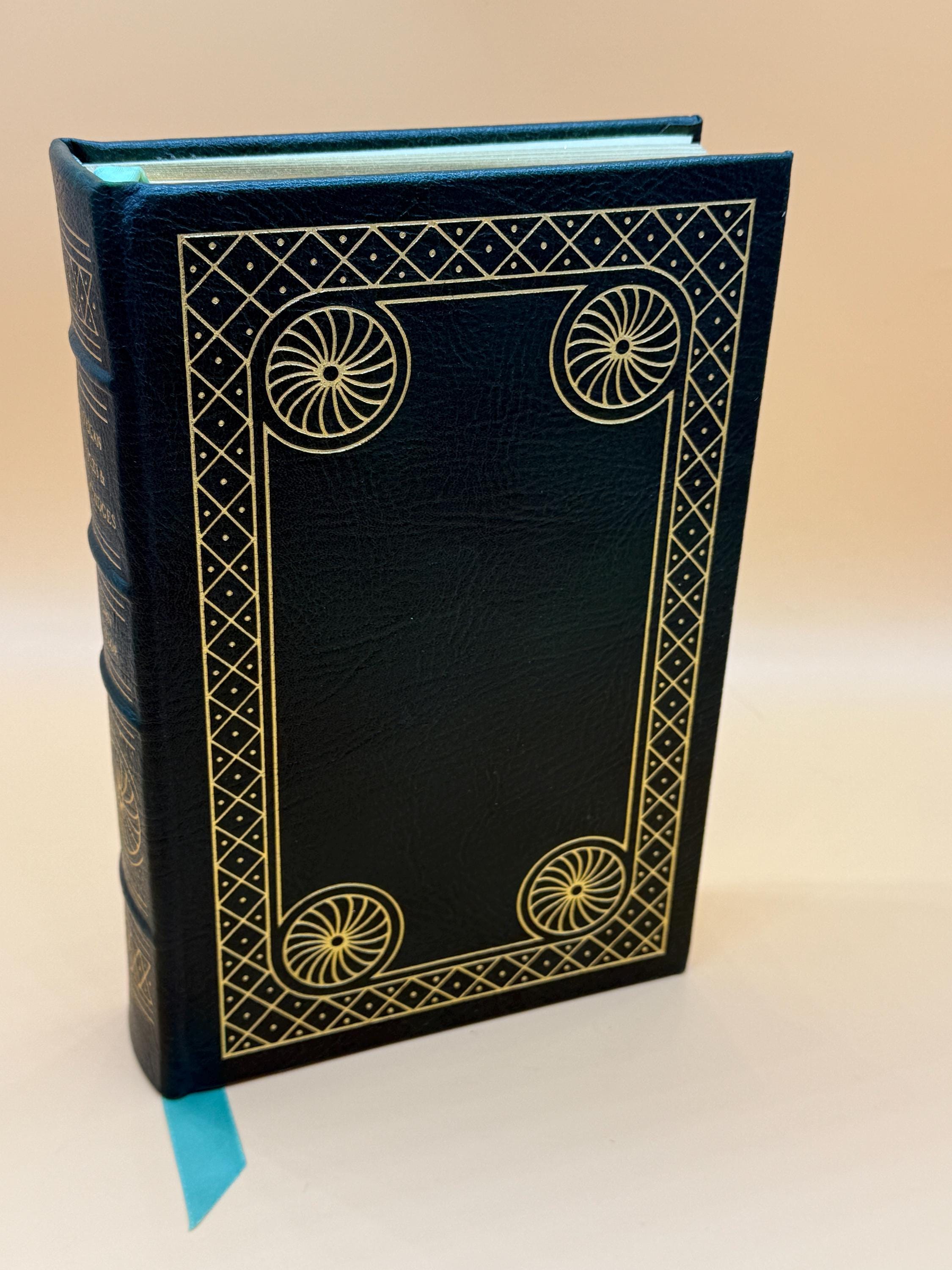 This is a near fine (almost like new) leather bound hardcover. 1995 Odysseus Special Edition privately printed for members of the Firearms Classics Library. This copy is still crisp and clean inside and out. The pages are crisp and clean inside. This special edition is finely bound in olive green Saderra leather with silk moire fabric endpapers. Additional fine binding appointment include Smyth sewn binding, attached satin book mark and all three page edges are tipped in gold gilt. The leather binding features gold design front with gold title/author lettering along spine. The leather bound boards are also near fine with barely a hint of shelf wear. The binding is tight and straight. Medium octavo book size or 6.5" x 9.5" with 4321 pages including index.