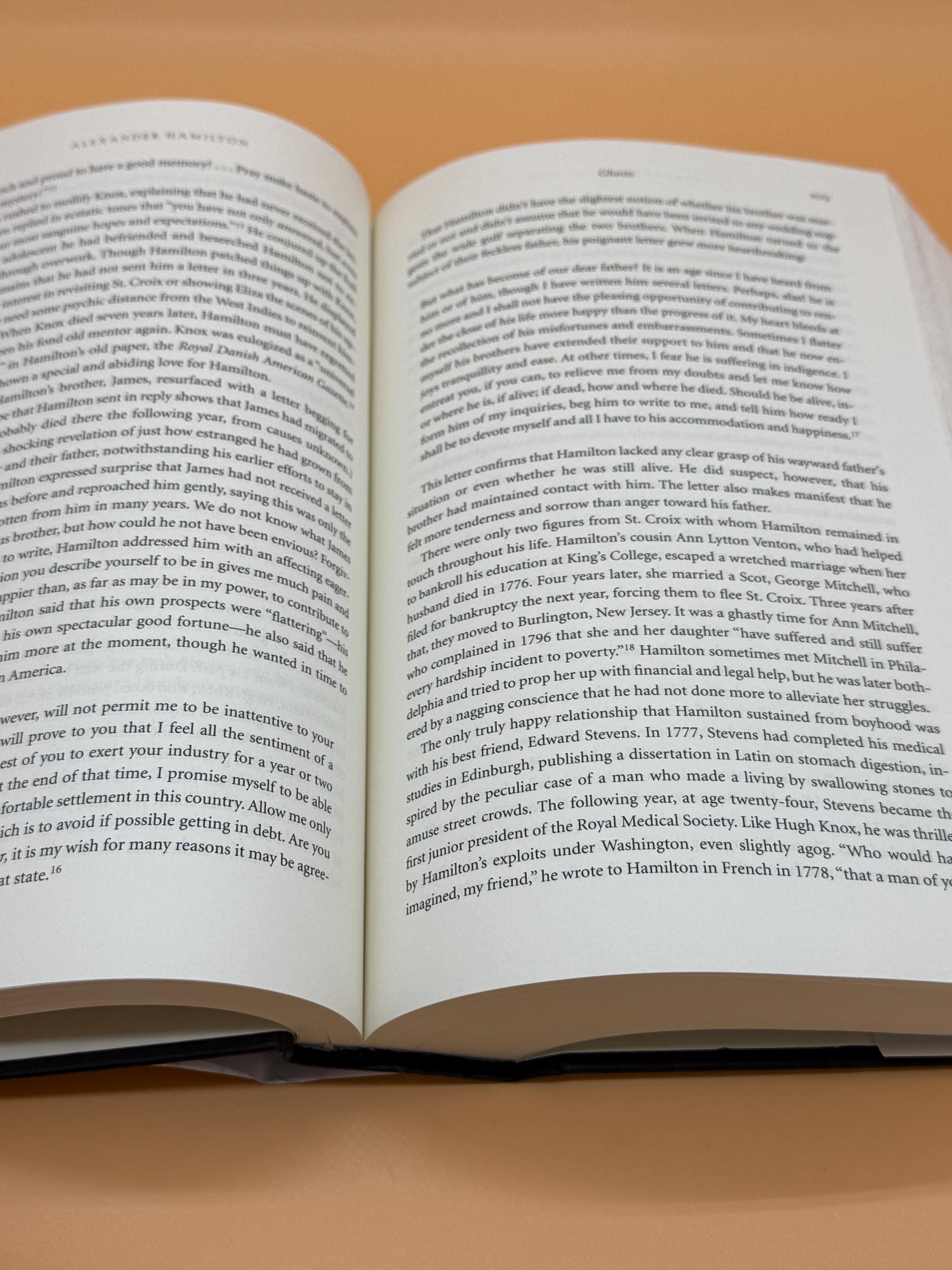 Alexander Hamilton by Ron Chernow is a towering biography that presents a fully rounded portrait of Hamilton. Rich portraits of Hamilton's peers are included such as Washington, Adams, Madison, Monroe and Burr. The biography tells how Hamilton rose with stunning speed to become Washington's aide-de-camp, battlefield hero, member of the Constitutional Convention, and head of the Federalist Party. The book blends Hamilton's private and public life in a complete portrait.