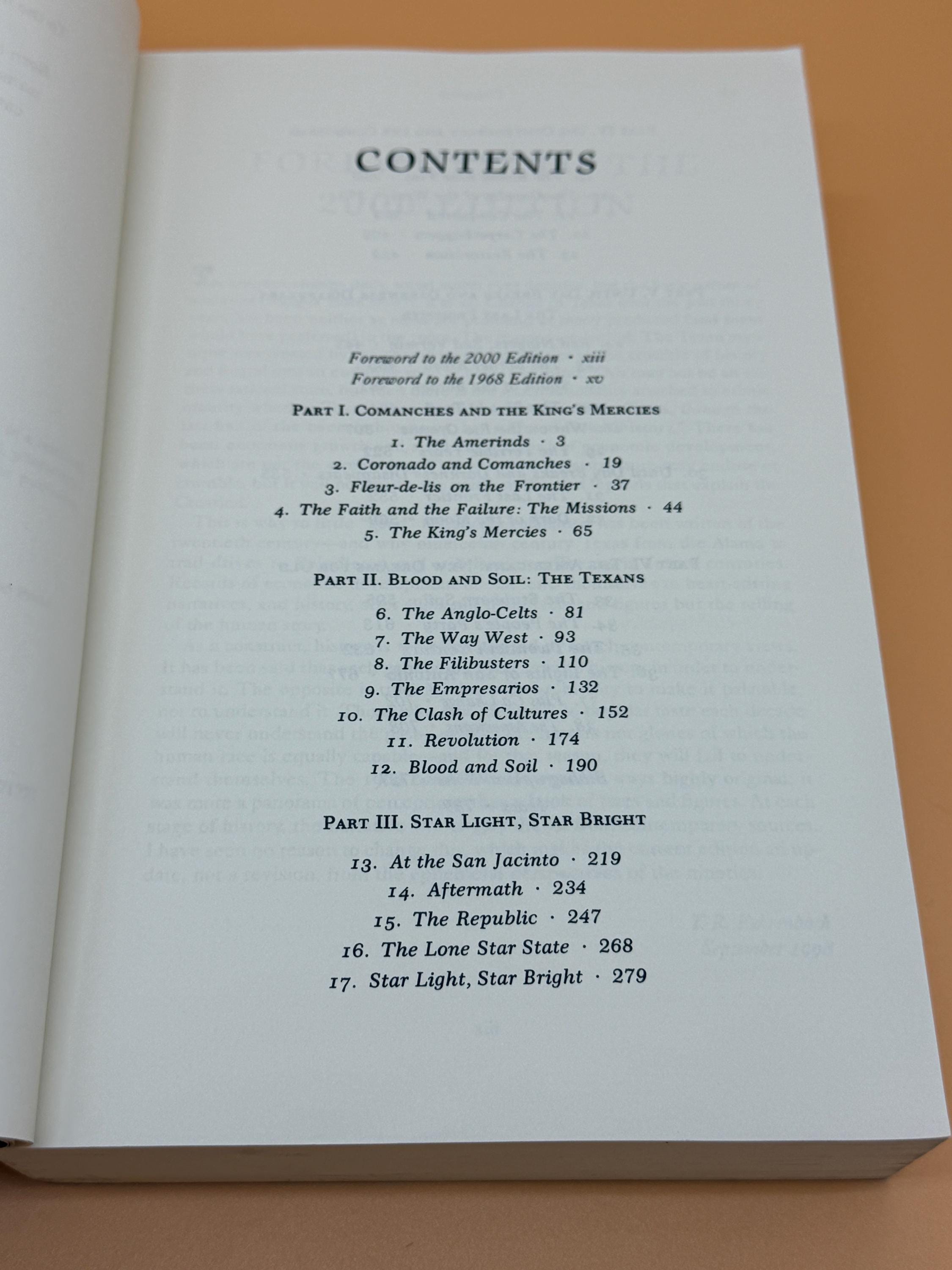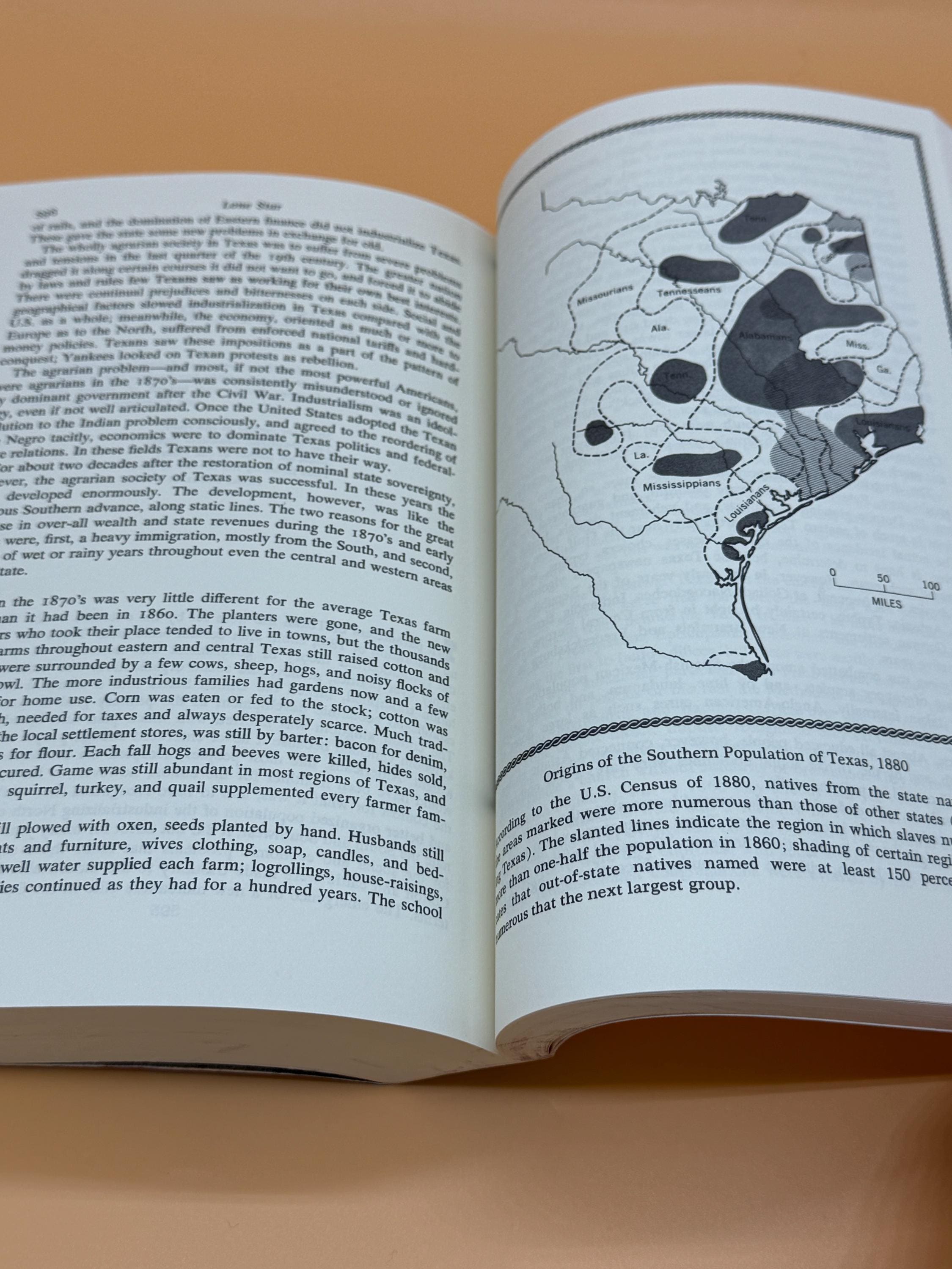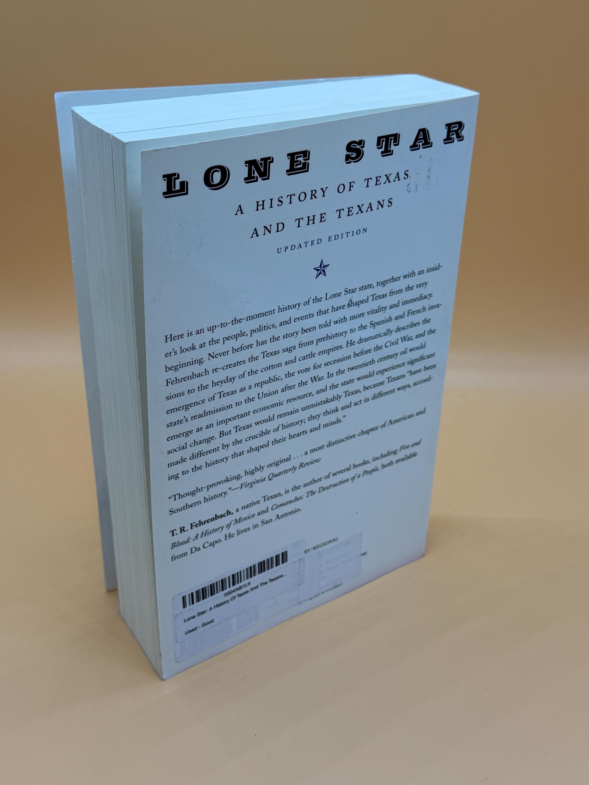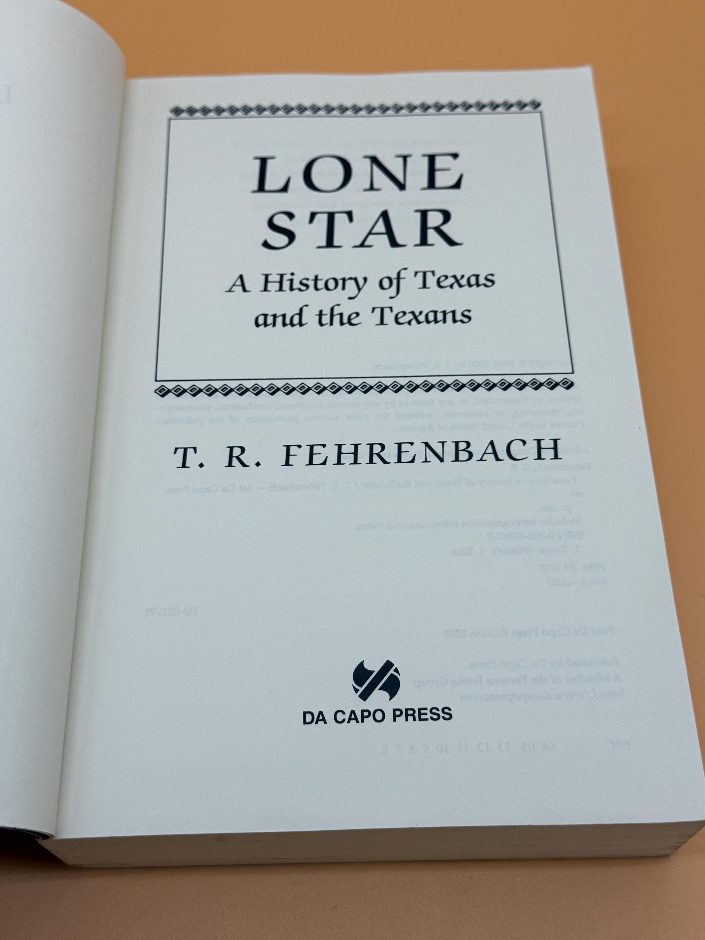 Lone Star A History of Texas and The Texans by T.R. Fehrenbach is an updated history of the Lone Star state. It offers an inside look at the people, politics, and events that have shaped Texas from the beginning. The author re-creates the saga from prehistory to the Spanish and French invasions to the heyday of the cotton and cattle empires. he described the emergence of Texas as a republic, the vote for secession and the state's readmission to the Union. The 20th century would see the oil boom and the state would experience social change. But, he argues that Texas is still Texas and will always be Texas.