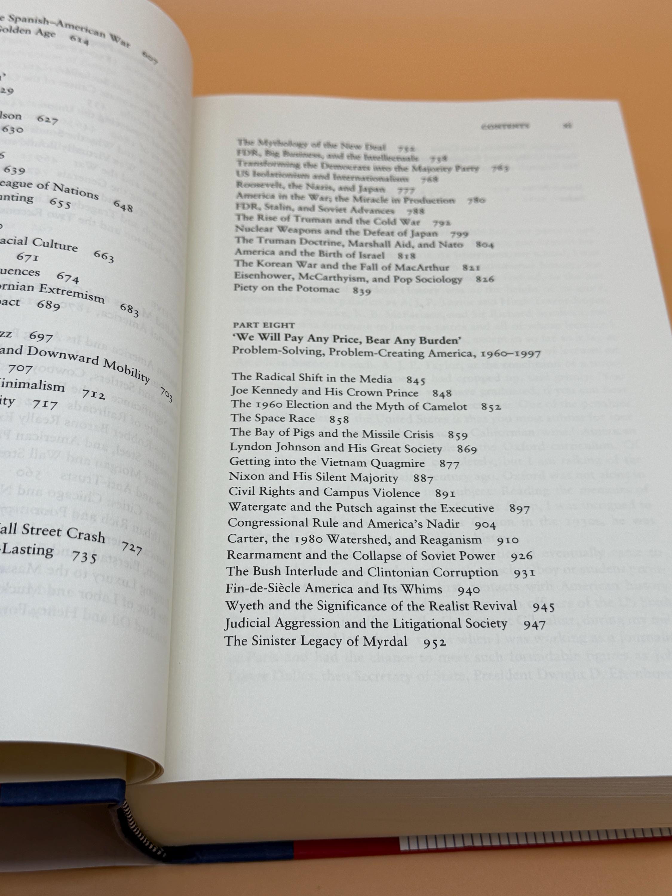 A History of the American People by Paul Johnson is a towering narrative of American history. It is an interpretation of American history from the first settlements to to the Clinton administration. It covers every aspect of history - politics, business, economics; art, literature and science; society and customs; traditions and religious beliefs. Letters, diaries, and recorded conversations ensure accuracy. Historical figures are presented in full along with citizens, the link to English culture, the roles of wartime presidents and other notable figures. People prominent and unknown are represented along with historical events and more.