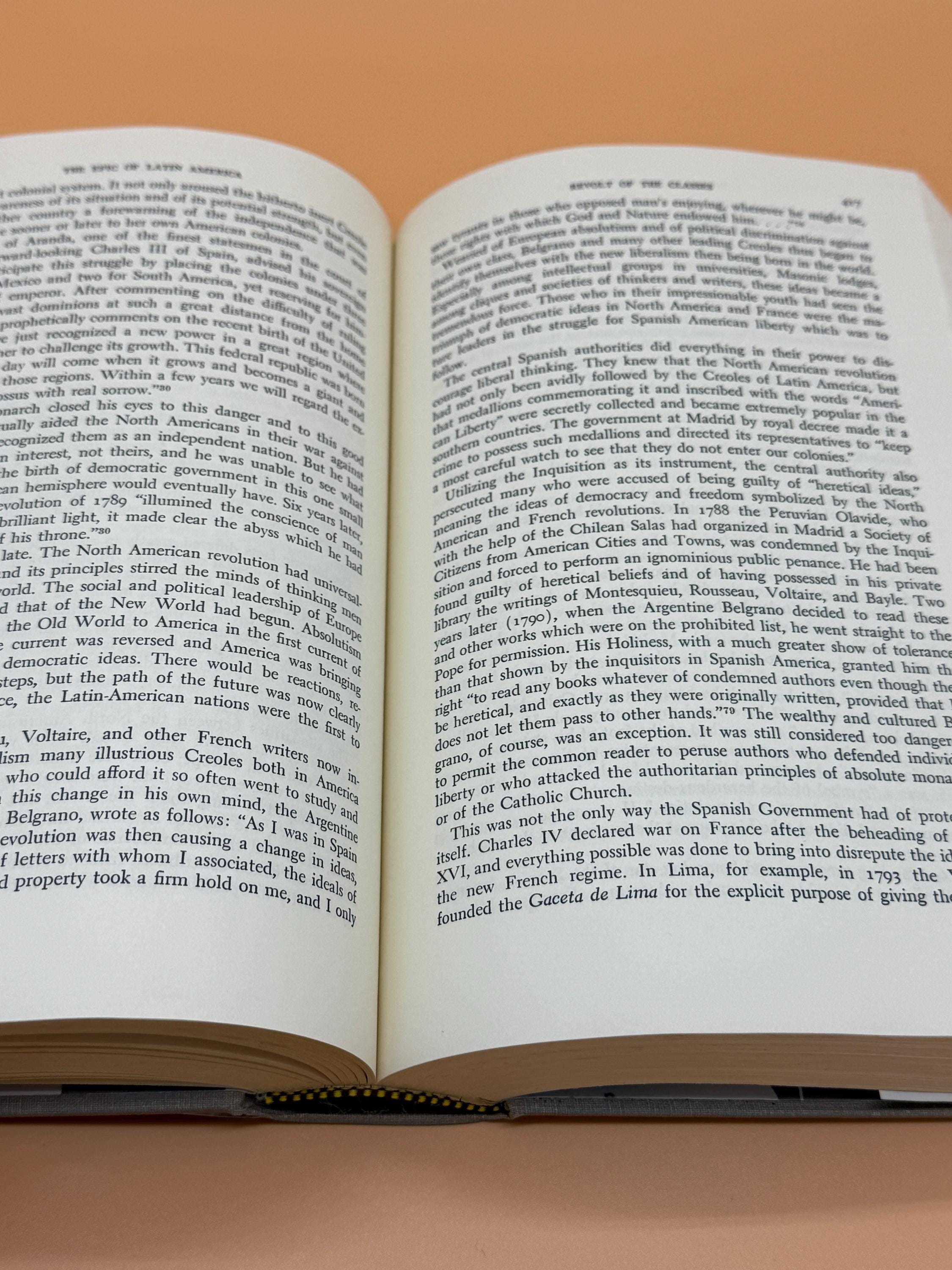 The Epic of Latin America by John A. Crow is a classic history of Latin America. Introductory chapters on the Maya, Inca, Aztec, their culture and contributions, lead readers into the colonial period- Spanish and Portuguese conquerors and settlers, miners, ranchers, priests, and more and move into contemporary times. The author intertwines artistic growth with historic events and social history in an overall blend of Latin American life.