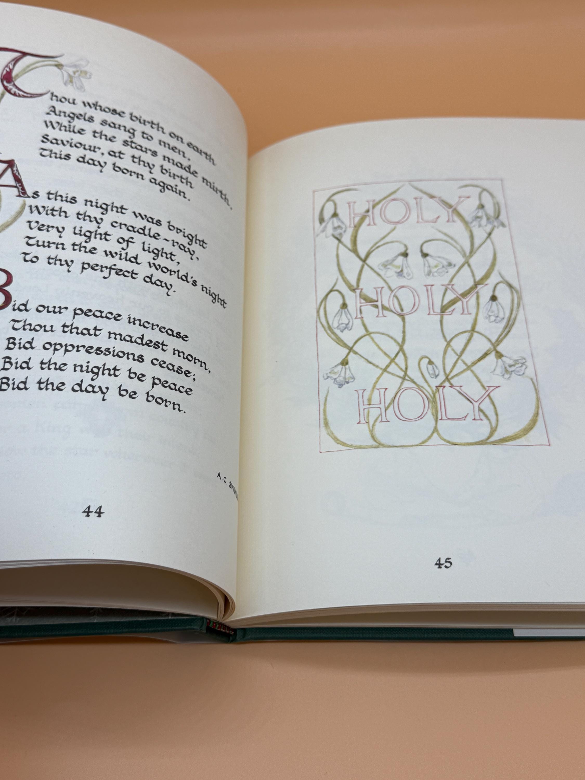 This is a near fine (almost like new) hardcover with dust jacket. 1984 DoubleDay Publishing. This copy is still crisp and clean inside and out. The pages are crisp and clean. The binding is tight and straight. Green hardcover boards under jacket are also near fine with barely a hint of shelf wear. The accompanying dust jacket is clean and shiny with only very light shelf wear. Super octavo book size or 8" x 10" with 122 pages not including index of authors and composers with first lines, birth dates and more.