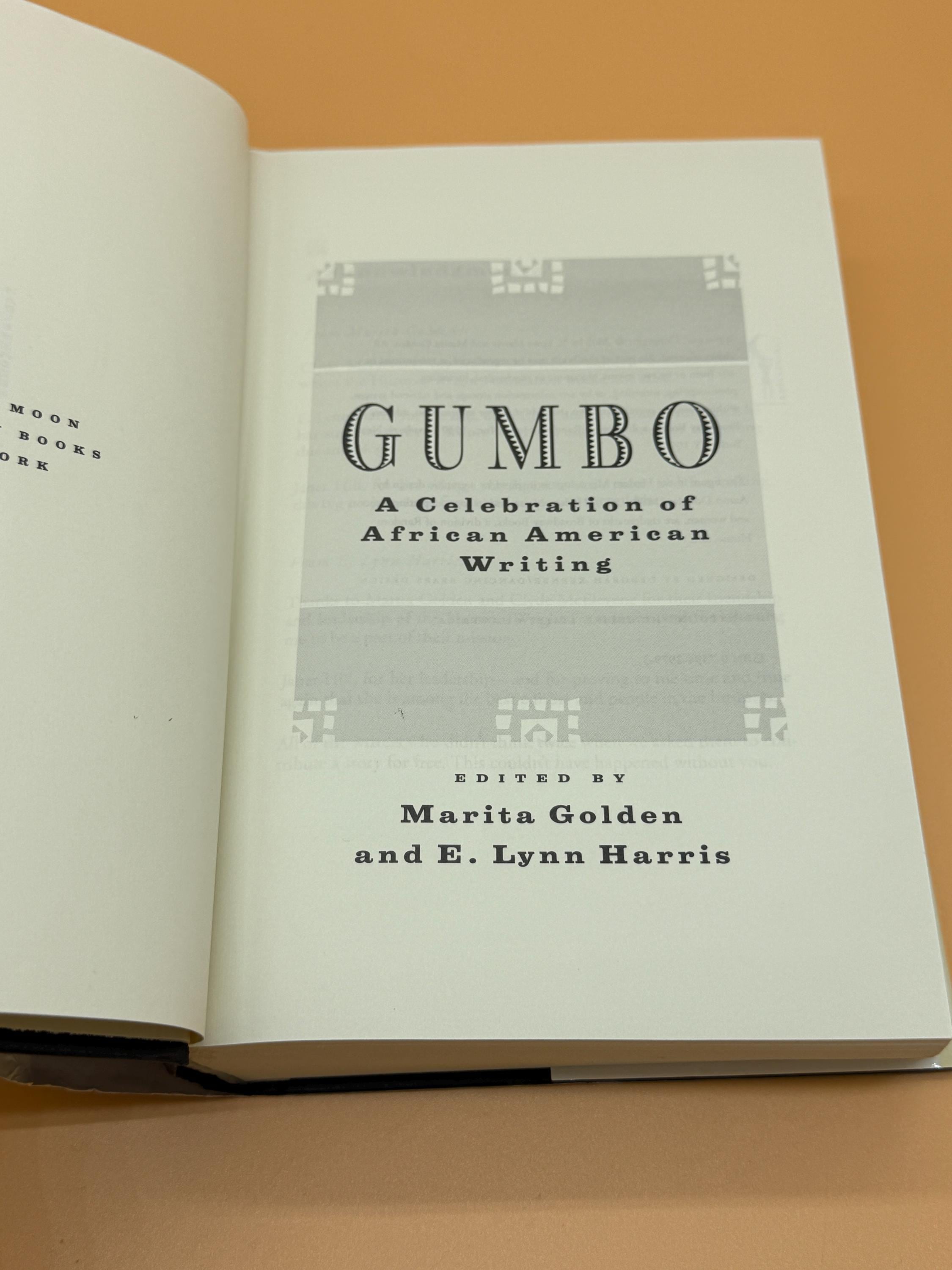 Gumbo An Anthology of African American Writers has been edited by Marita Golden and E. Lynn Harris. It includes stories from E. Lynn Harris, Marita Golden, Eric Jerome Dickey, John Edgar Wideman and more. It contains over 50 well-known black writers. Previously unpublished works are included along with popular favorites.