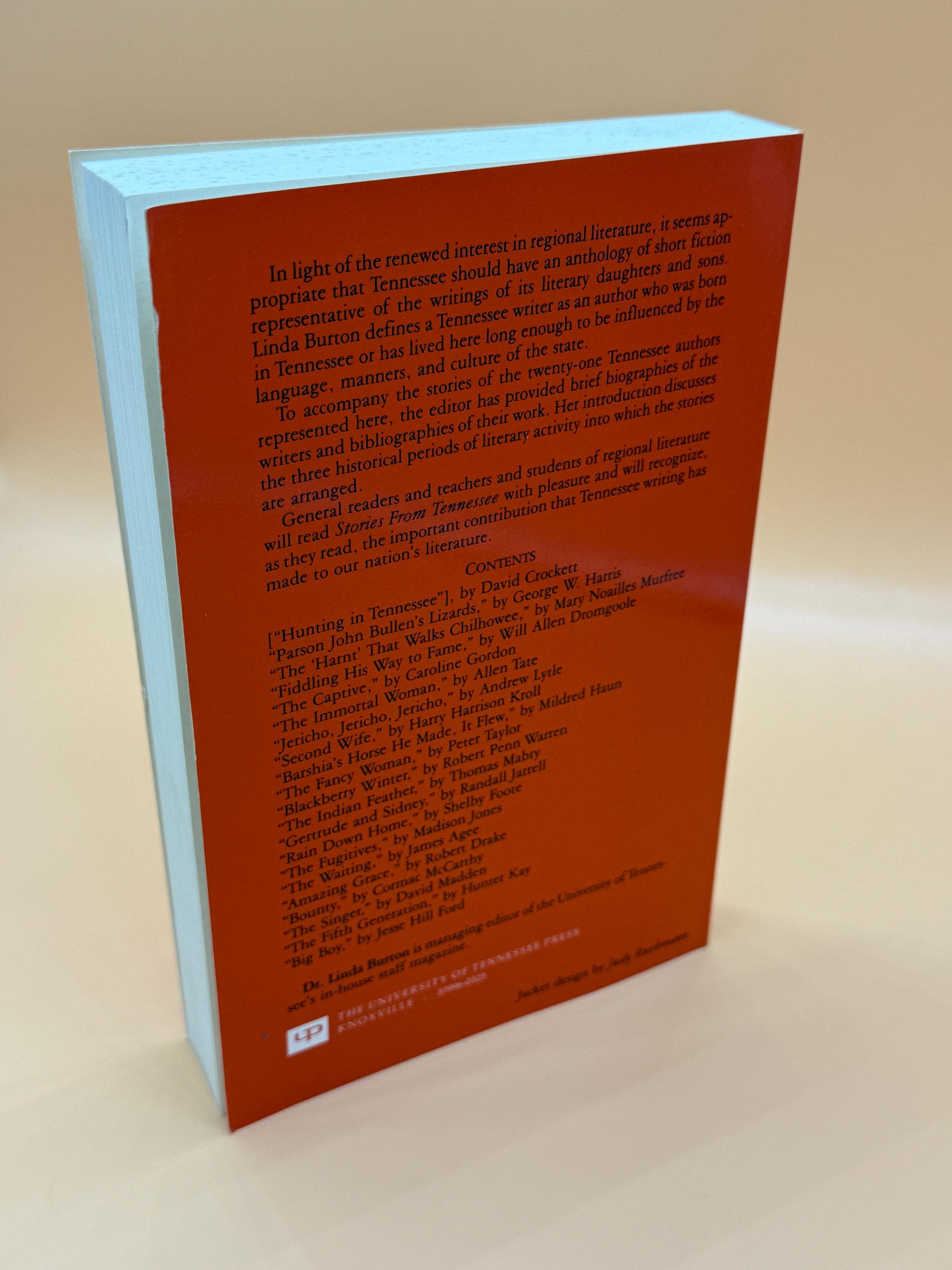 Stories From Tennessee has been edited by Linda Burton. It is an anthology of short stories representative of Tennessee literary daughters and sons. The editor defined a Tennessee writer as someone born there who lived there long enough to be influenced by the language, matters, and culture of the state. The book also provides brief bios of the writers contained. The book is divided into three sections; The Early Years, The Middle Period, and The Modern Era. Authors such as David Crockett, Allen Tate, Peter Taylor, Shelby Foote, Robert Penn Warren, Thomas Mabry, Robert Drake, David Madden, and more fill the pages. Over 20 stories in all.