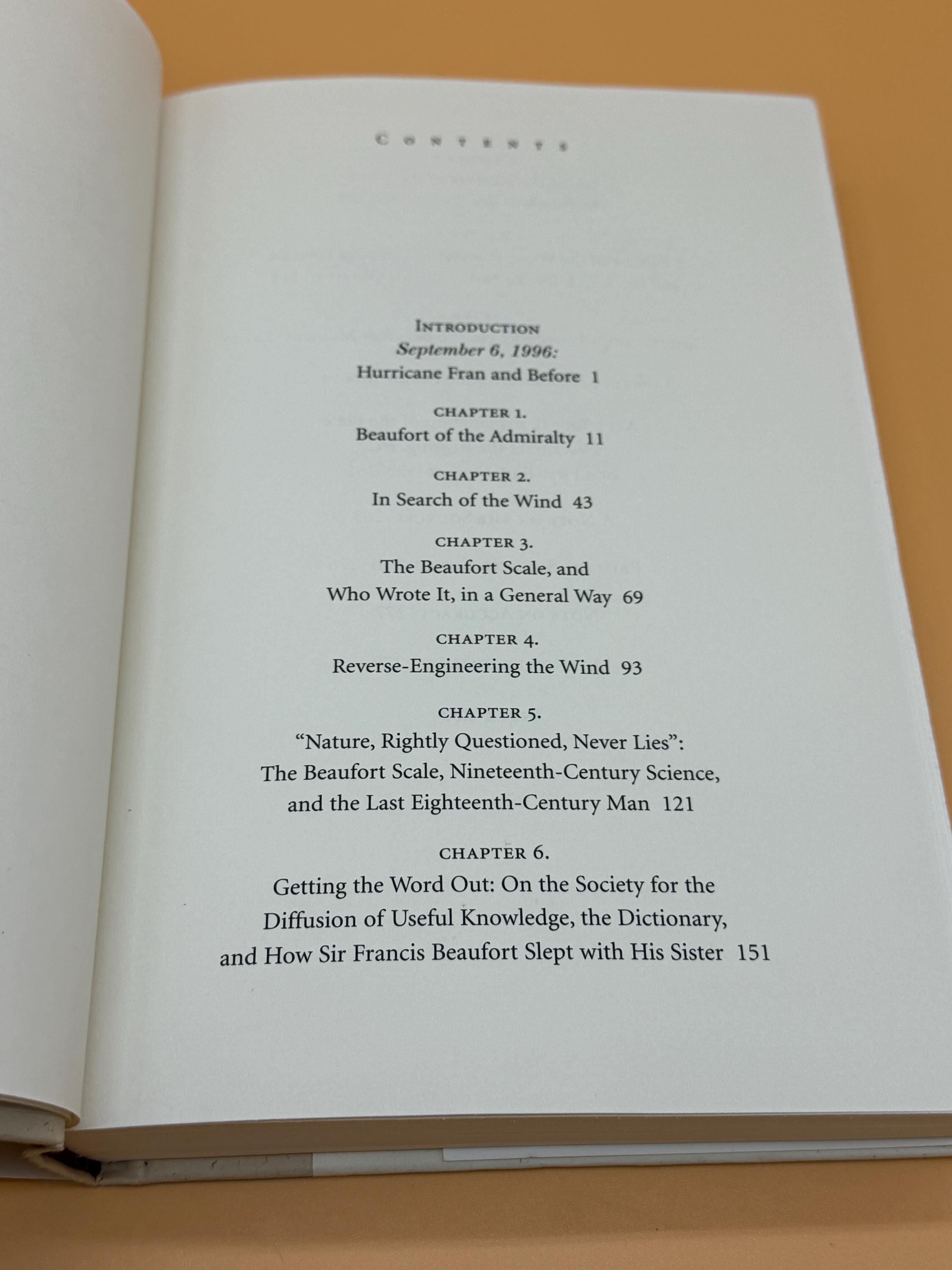 Defining The Wind by Scott Huler is subtitled The Beaufort Scale and How a 19th Century Admiral Turned Science Into Poetry. After discovering the Beaufort Wind Scale, the author embarked on a journey over land and sea into a fascinating world of explorers, mariners, scientists and writers. He went in search of Admiral Francis Beaufort himself who was the assumed author of The Beaufort Wind Scale. But to truly define such, the author had to delved deep into history and historical figures such as Daniel DeFoe and Darwin among others. Hurler's research landed him in a fascinating and rich period of history. Modern science was being defined. Beaufort embodied the scientific networker of his time along with Anders Celsius and others. As an example, Beaufort was tasked with the search for a naturalist to accompany The Beagle, and he named a young naturalist named Darwin.