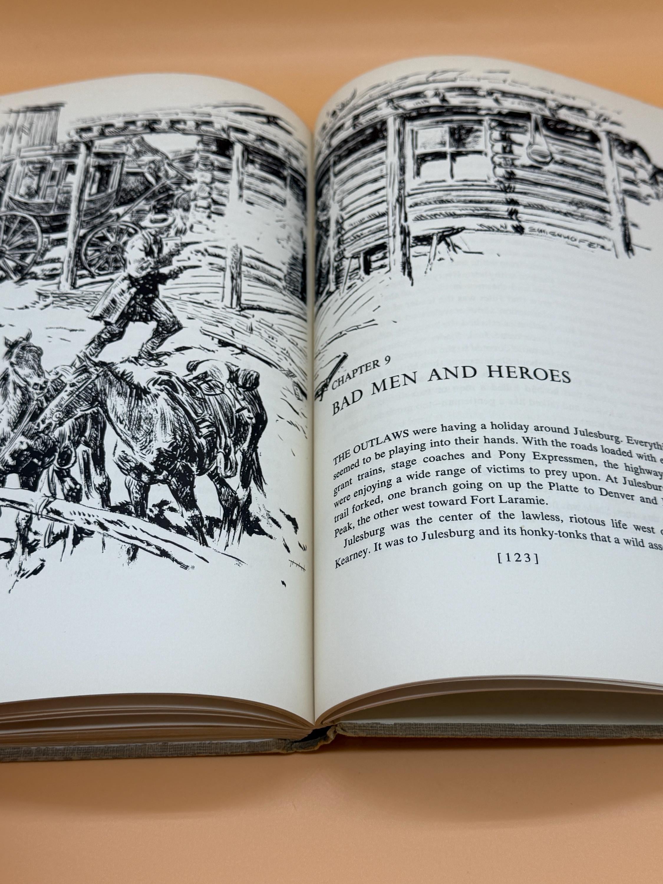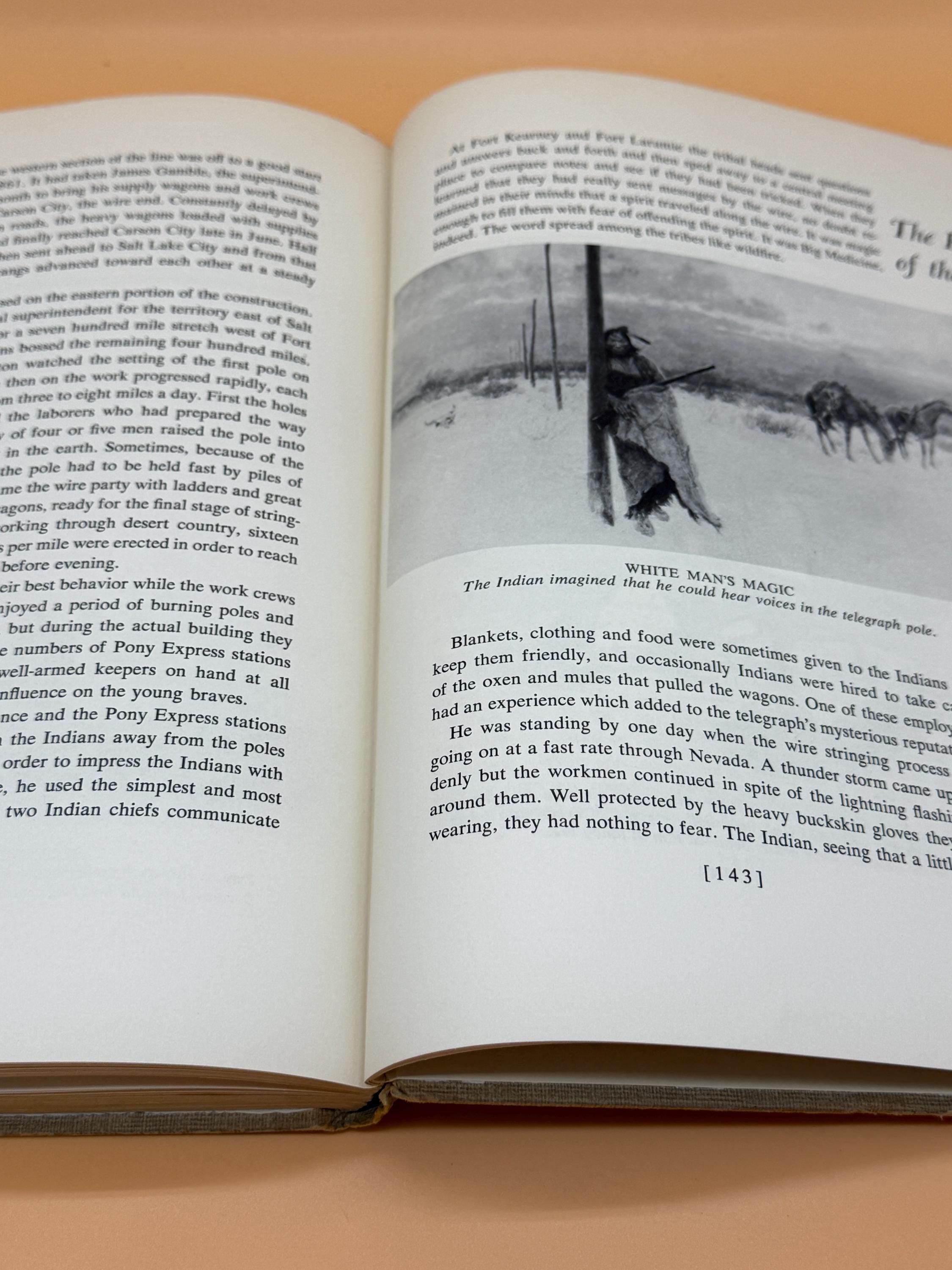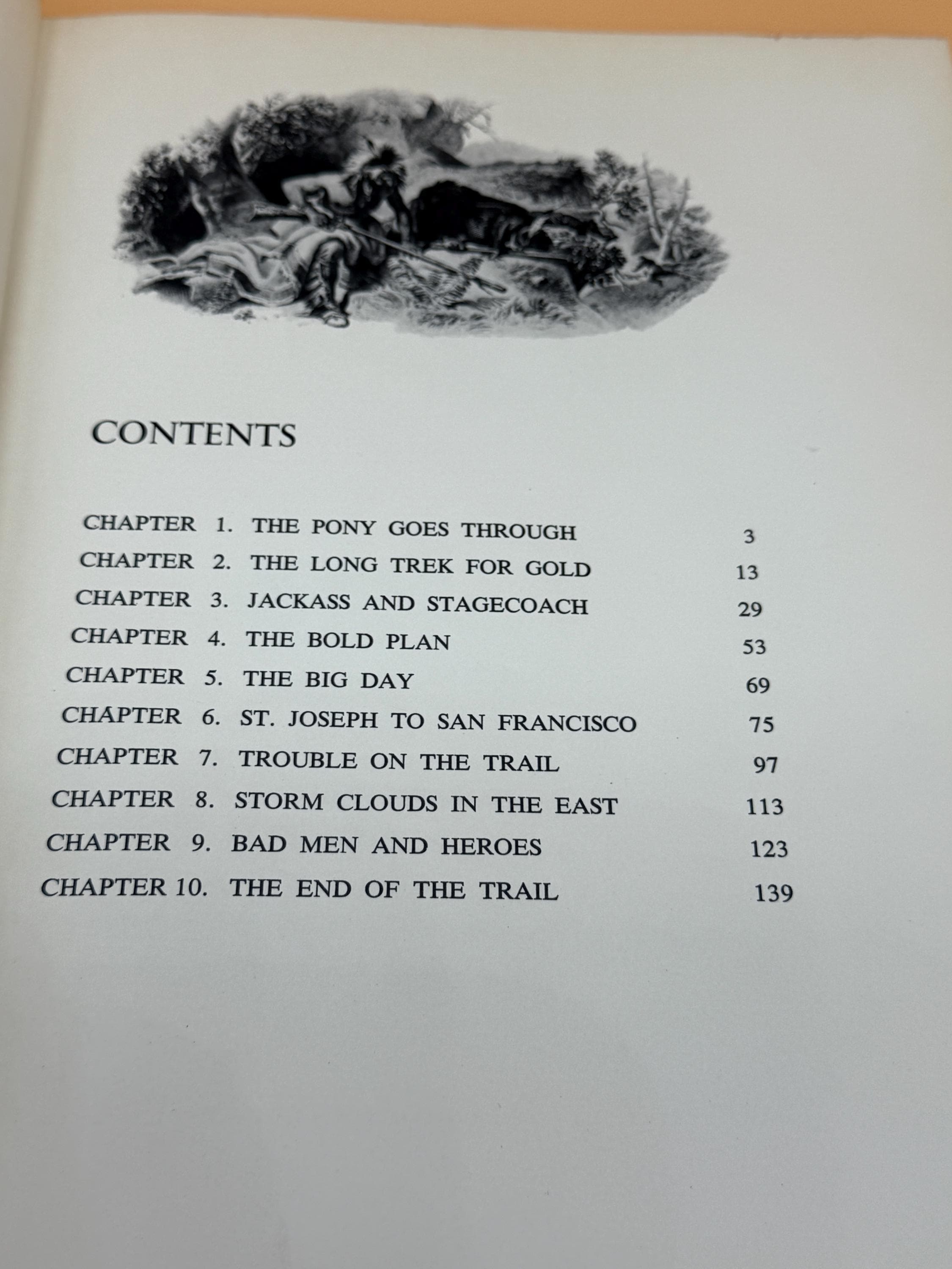This is a very good hardcover, NO dust jacket jacket missing. 1955 Grosset & Dunlap Publishing. This copy is very good inside and out. The inside pages are very clean and very good. The binding is tight and straight. Tan hardcover boards feature illustration of express rider front with brown title lettering along spine. The hardcover boards are very good BUT there is light fading and light shelf wear mostly to corners/edges. Imperial octavo book size or 8.5" x 11" with 154 pages.