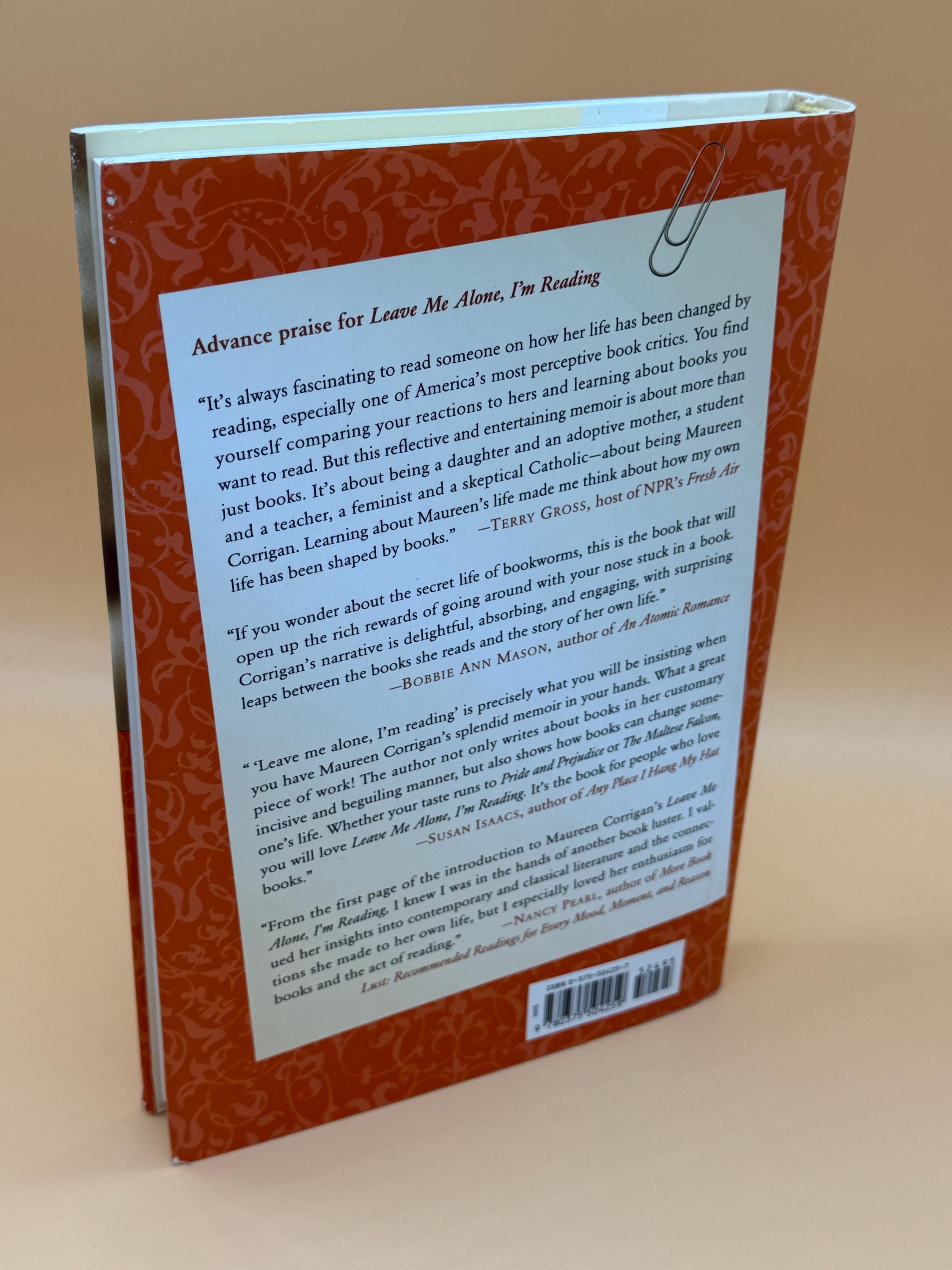 Leave Me Alone I'm Reading by Maureen Corrigan is subtitled Finding and Losing Myself in Books. The author, a book critic for NPR's Fresh Air, describes life as an obsessive reader. Part memoir, part reflelections on favorite and influential books, readers view the author's life through her love of books. Sure to please book worms, bibliophils, it is reflective and entertaining.