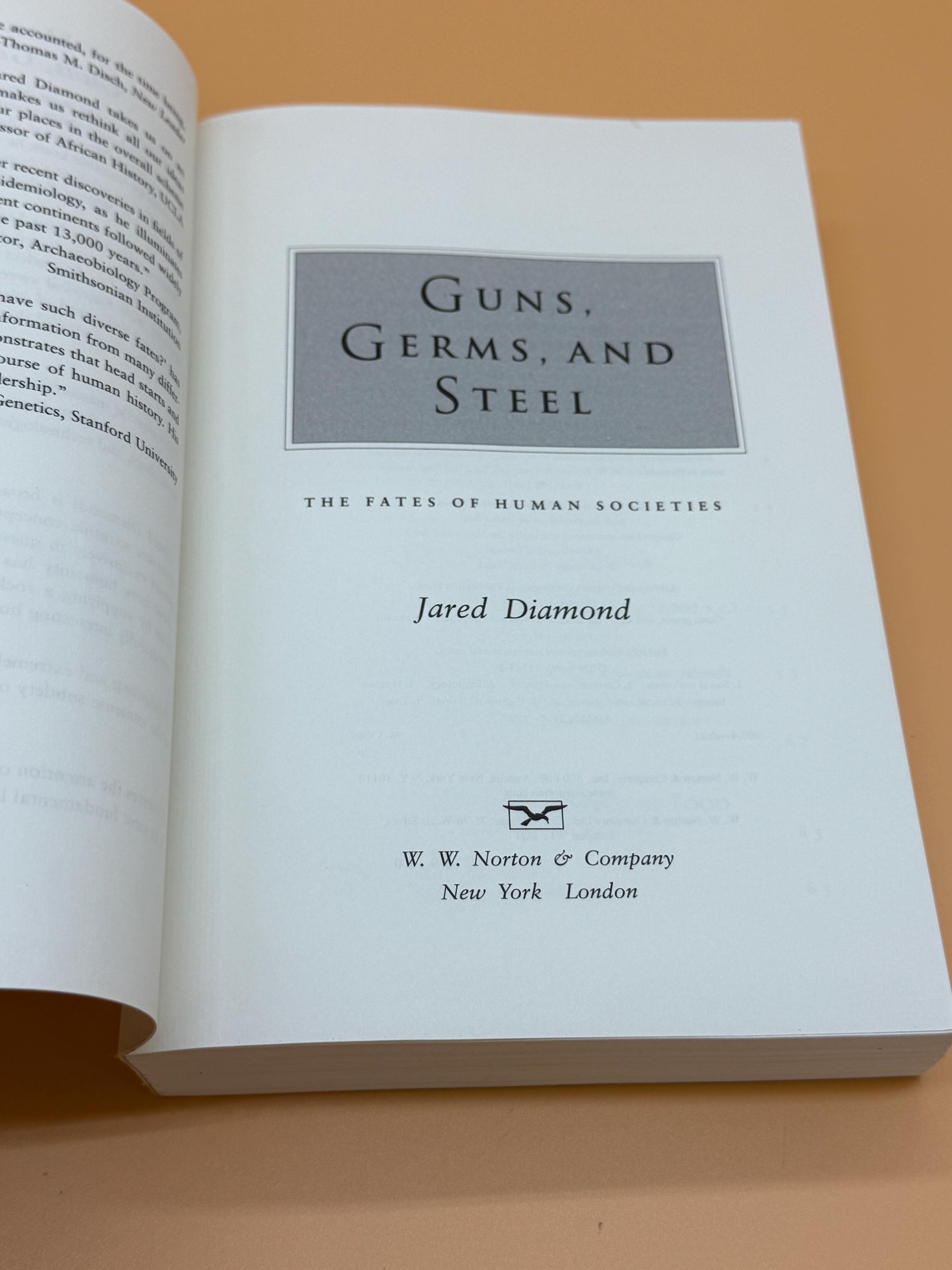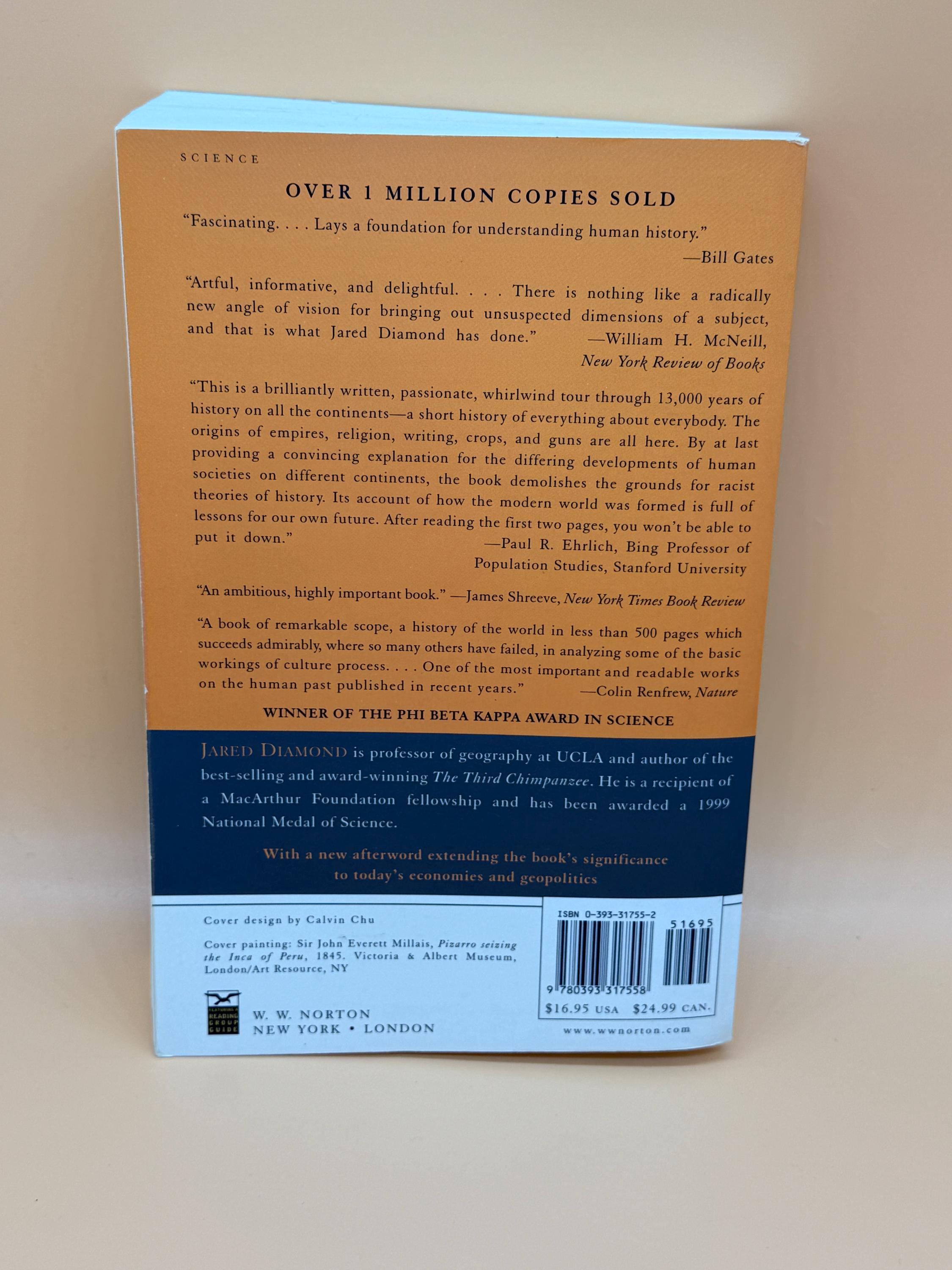 Guns Germs and Steel by Jared Diamond is subtitled The Fates of Human Societies. This 1999 edition contains a new afterword about the Modern World. The book covers 13,000 years of history on all continents. It speaks to the origins of guns, religions, empires, and more. The book won the Pulitzer Prize in 1998 for General Nonfiction.