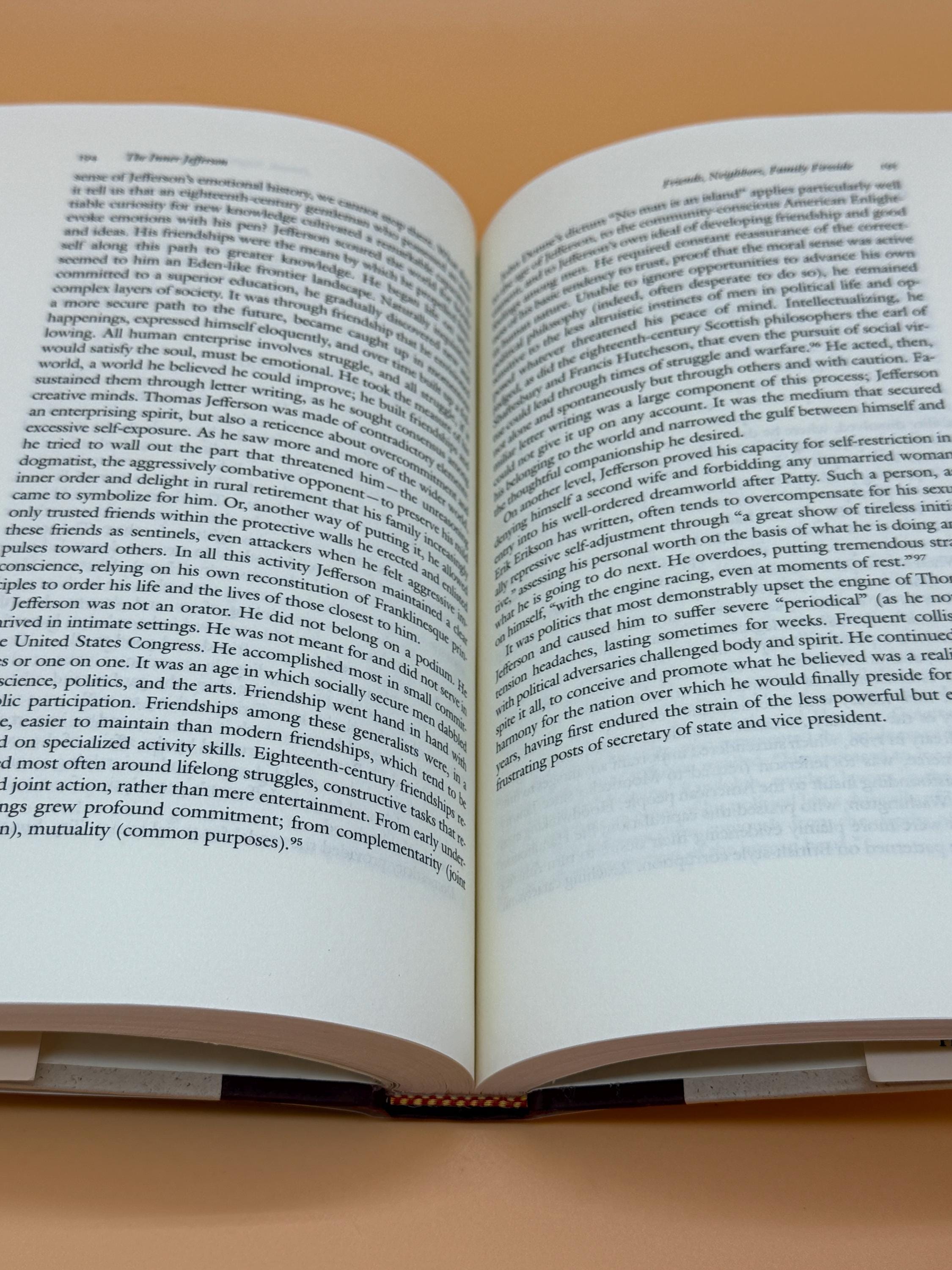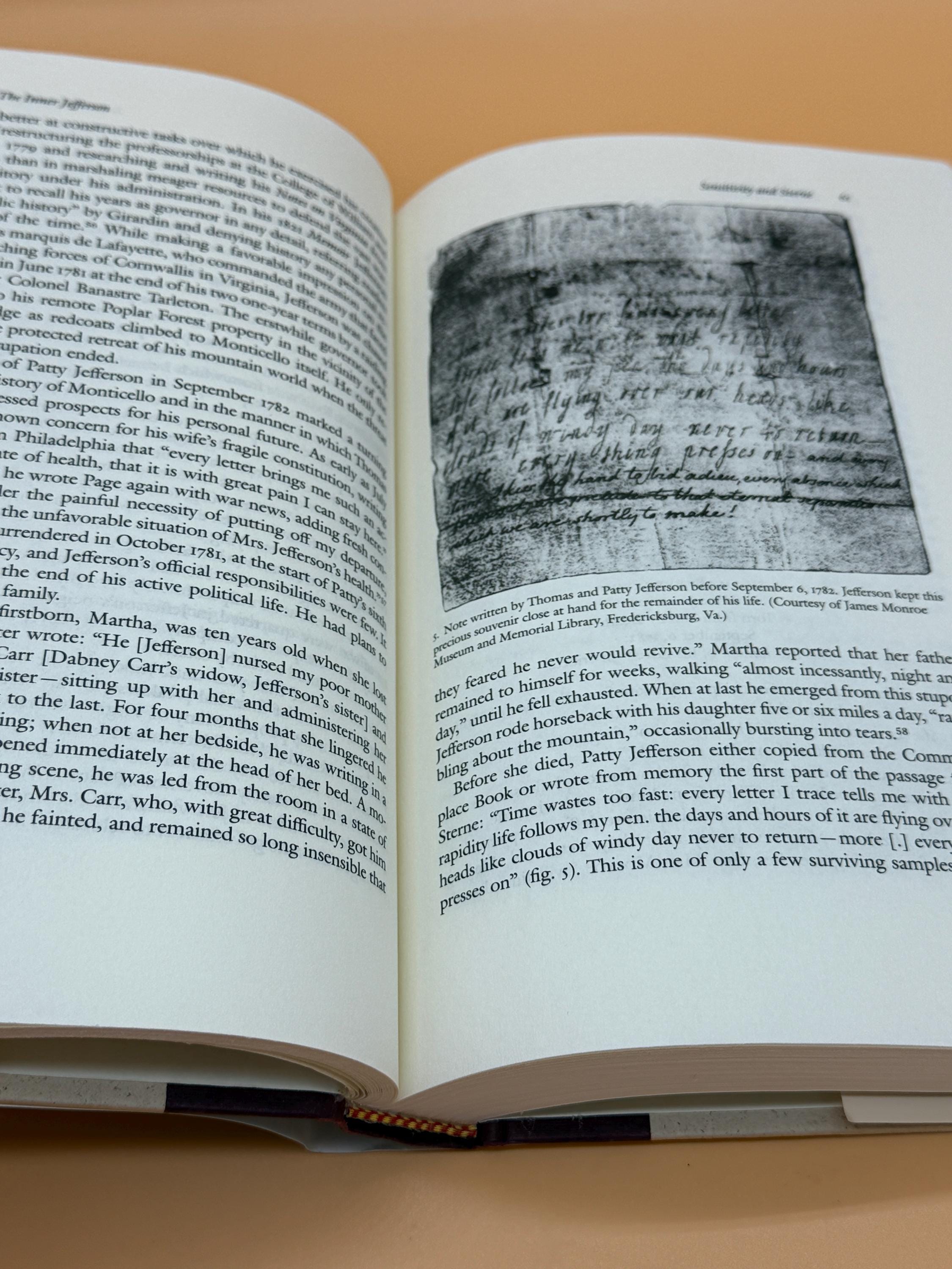 The Inner Jefferson by Andrew Burstein is subtitled Portrait of a Grieving Optimist. The author confronts misunderstandings about Jefferson's romantic life and provides insights into the man. He shows Jefferson to be a man of substance and character, yet possessing a mean streak, alternately strong and frail, ordinary and extraordinary. Burstein examined 7 decades of letters and private account to reveal the inner Jefferson.