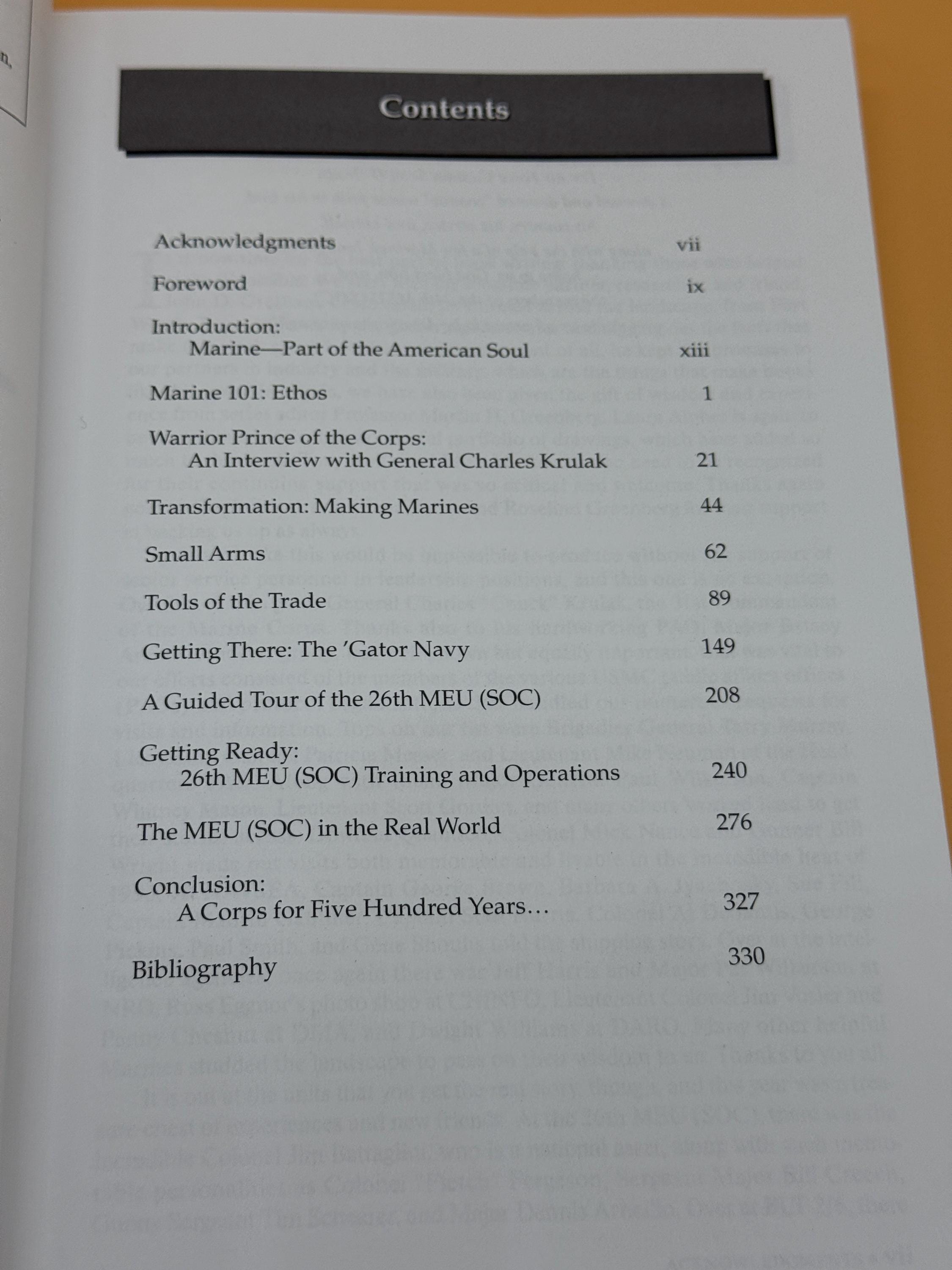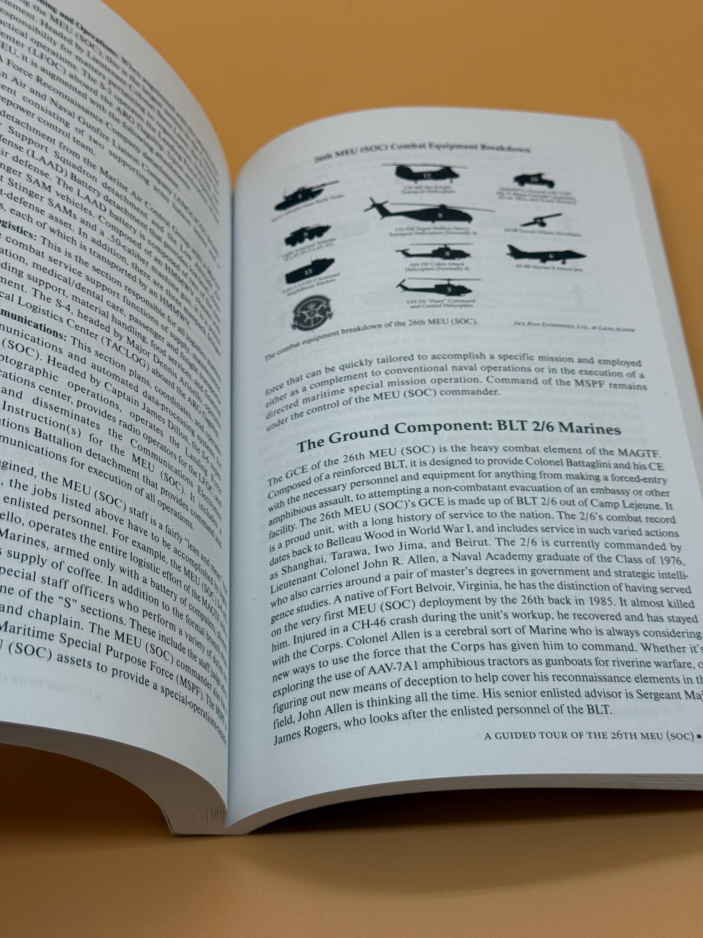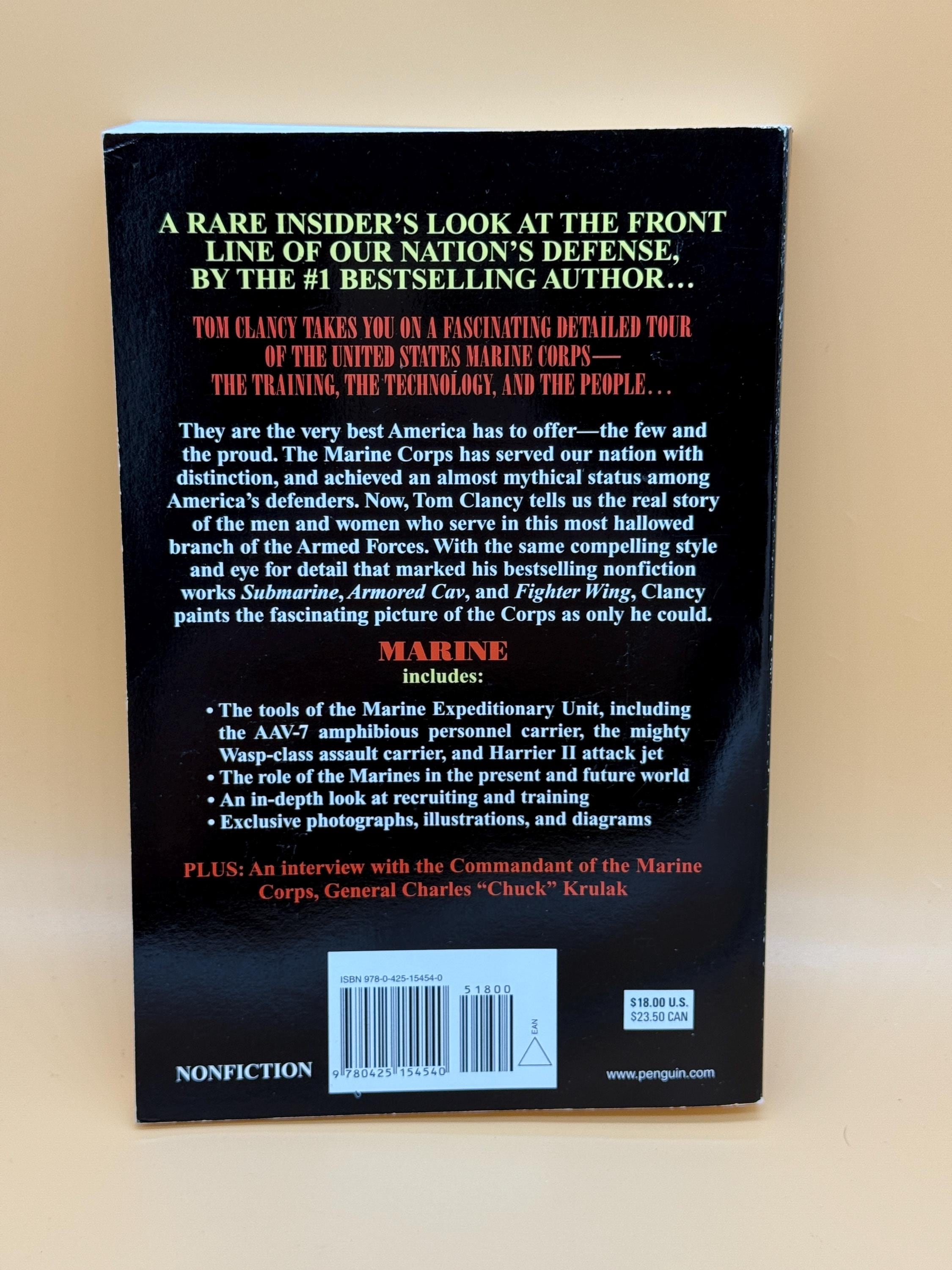Marine A Guided Tour of a Marine Expeditionary Unit by Tom Clancy and John Gresham is a fascinating and detailed tour of the United States Marine Corps - their training, technology and people. It includes tools of the Marine Expeditionary Unit including amphibious personnel carriers, the Wasp-Class assault carrier and Harrier ll attack jet. It gives a detailed look at recruiting and training and the role of the Marines. It is extensively filled with photos, illustrations and diagrams.