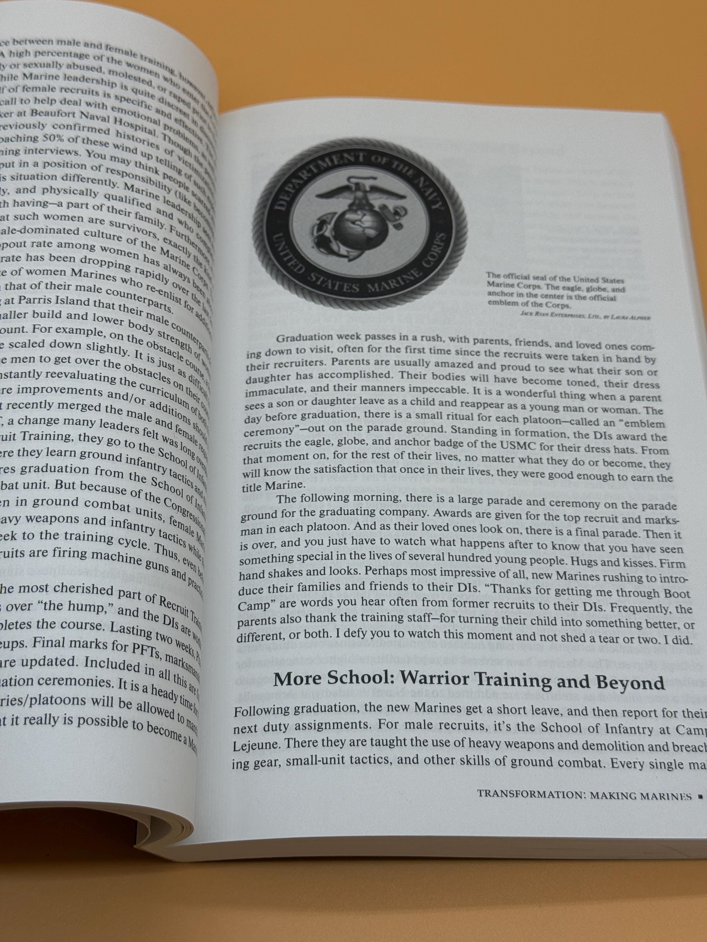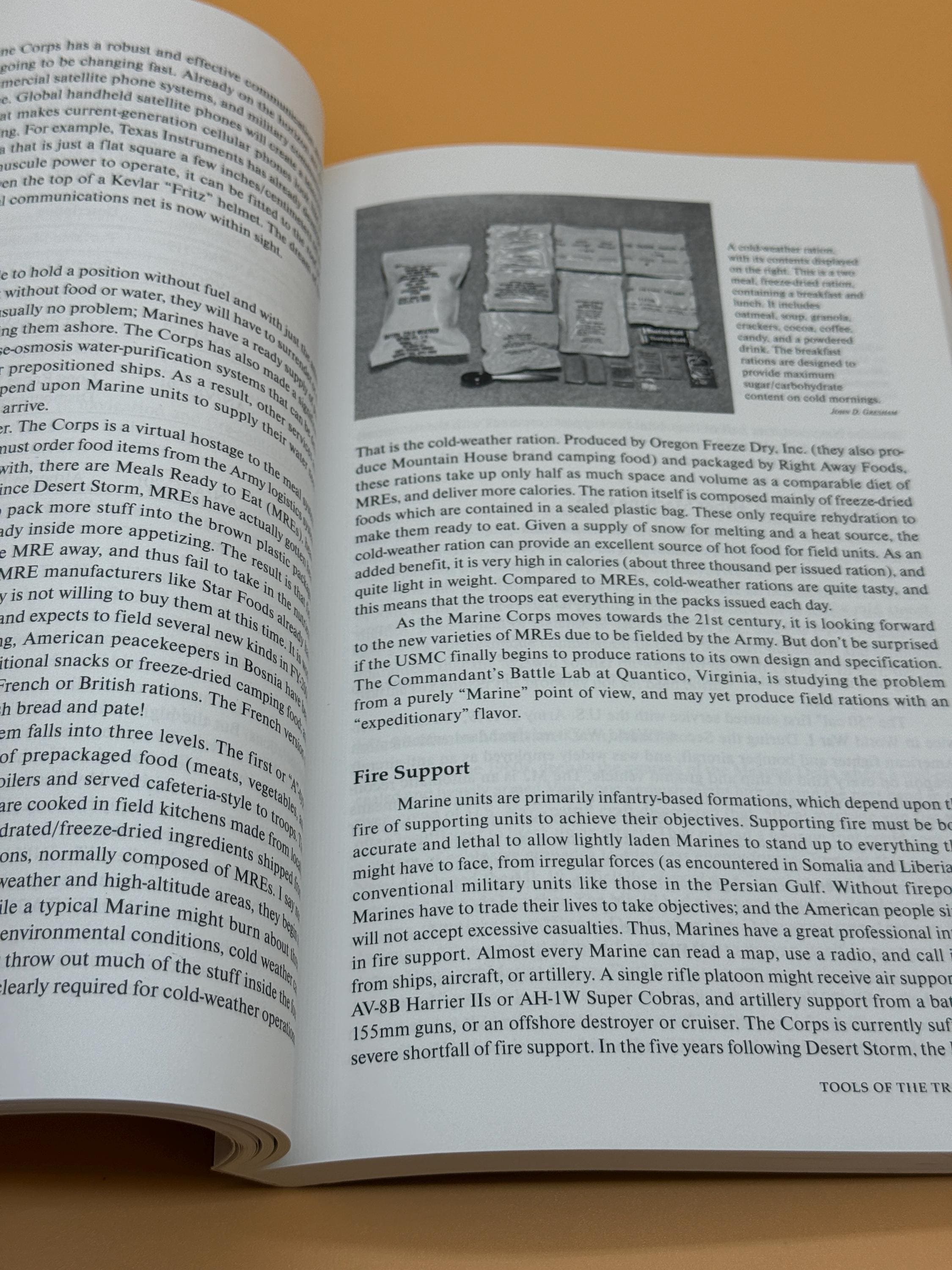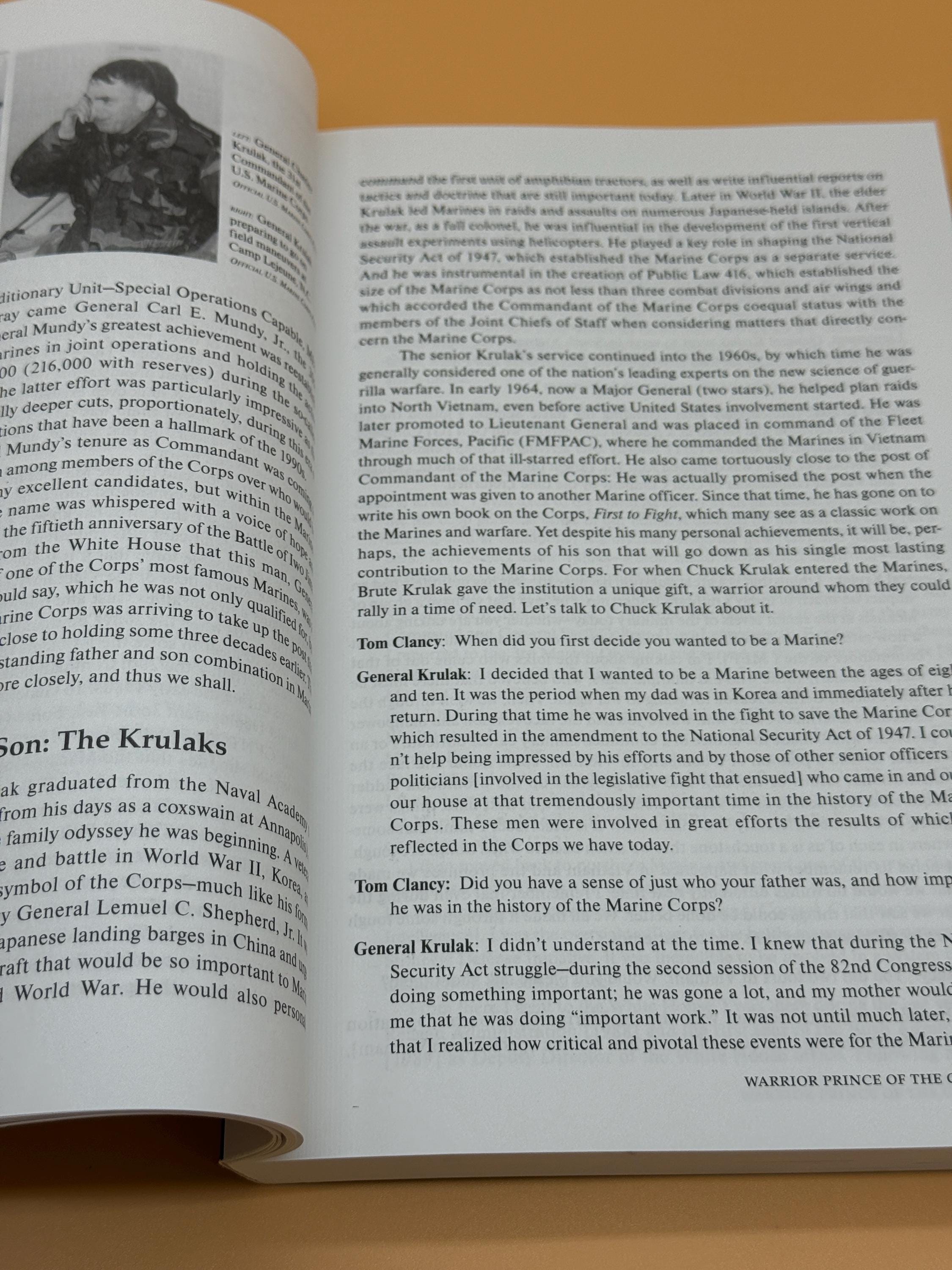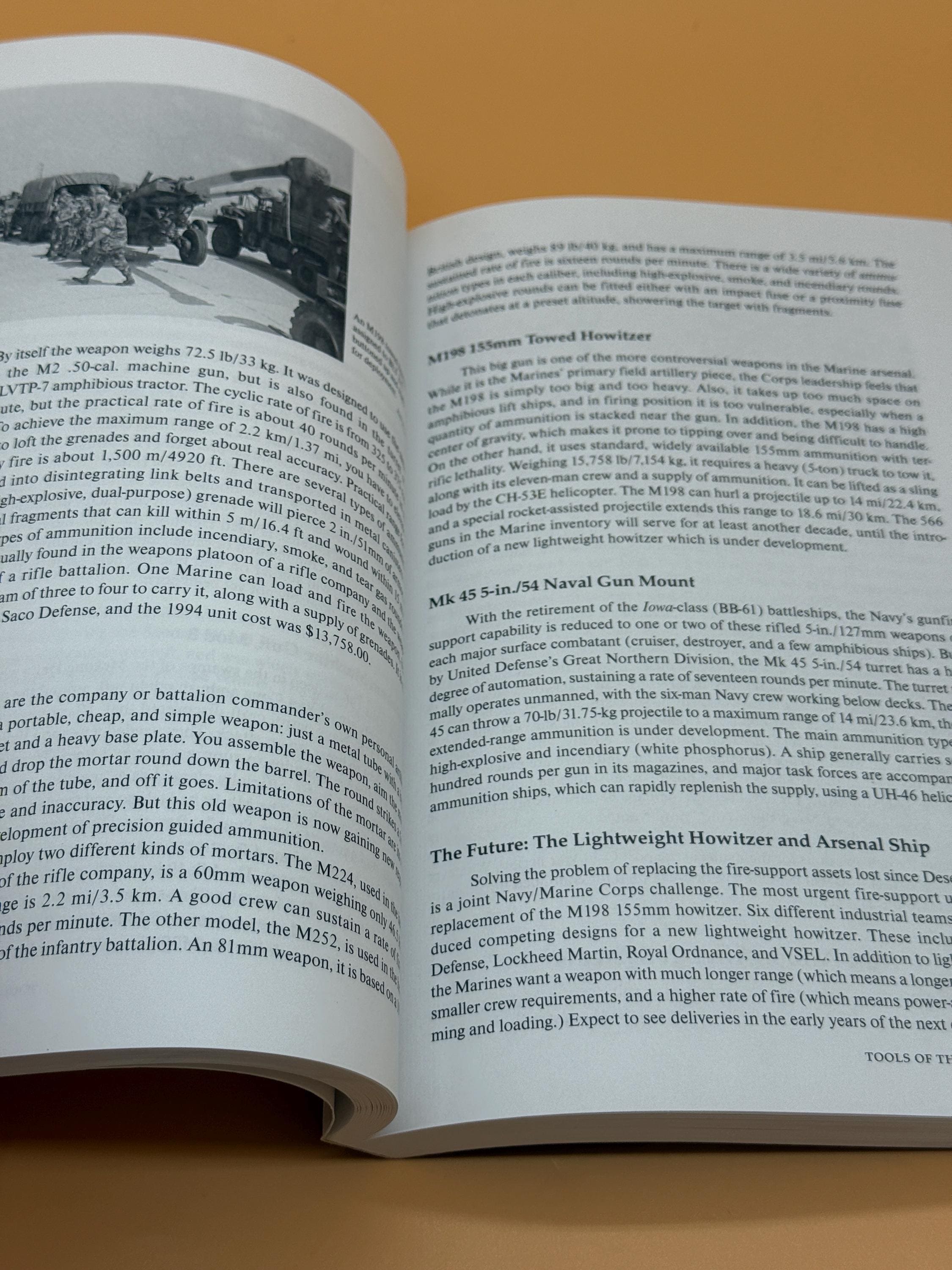 Marine A Guided Tour of a Marine Expeditionary Unit by Tom Clancy and John Gresham is a fascinating and detailed tour of the United States Marine Corps - their training, technology and people. It includes tools of the Marine Expeditionary Unit including amphibious personnel carriers, the Wasp-Class assault carrier and Harrier ll attack jet. It gives a detailed look at recruiting and training and the role of the Marines. It is extensively filled with photos, illustrations and diagrams.