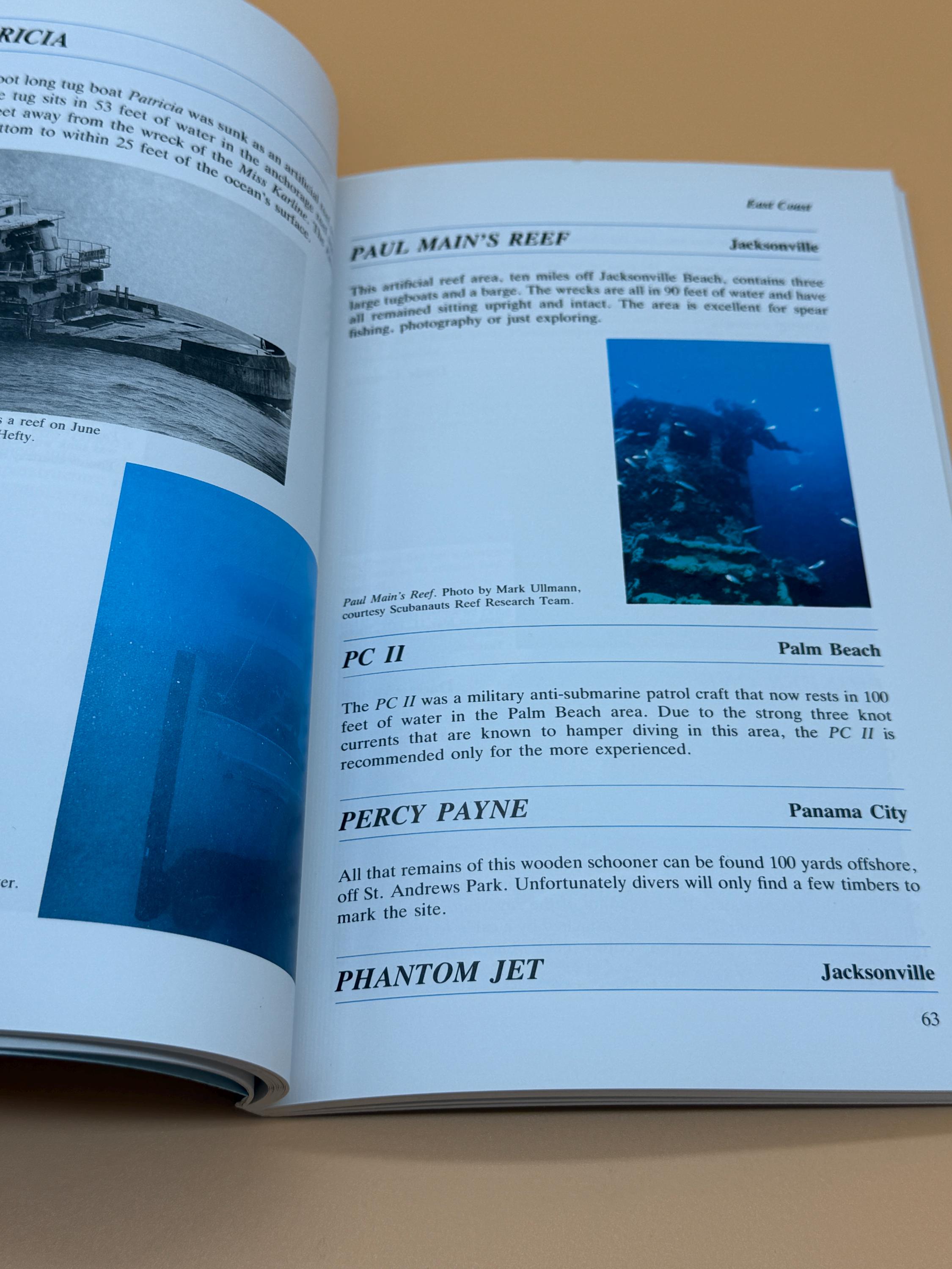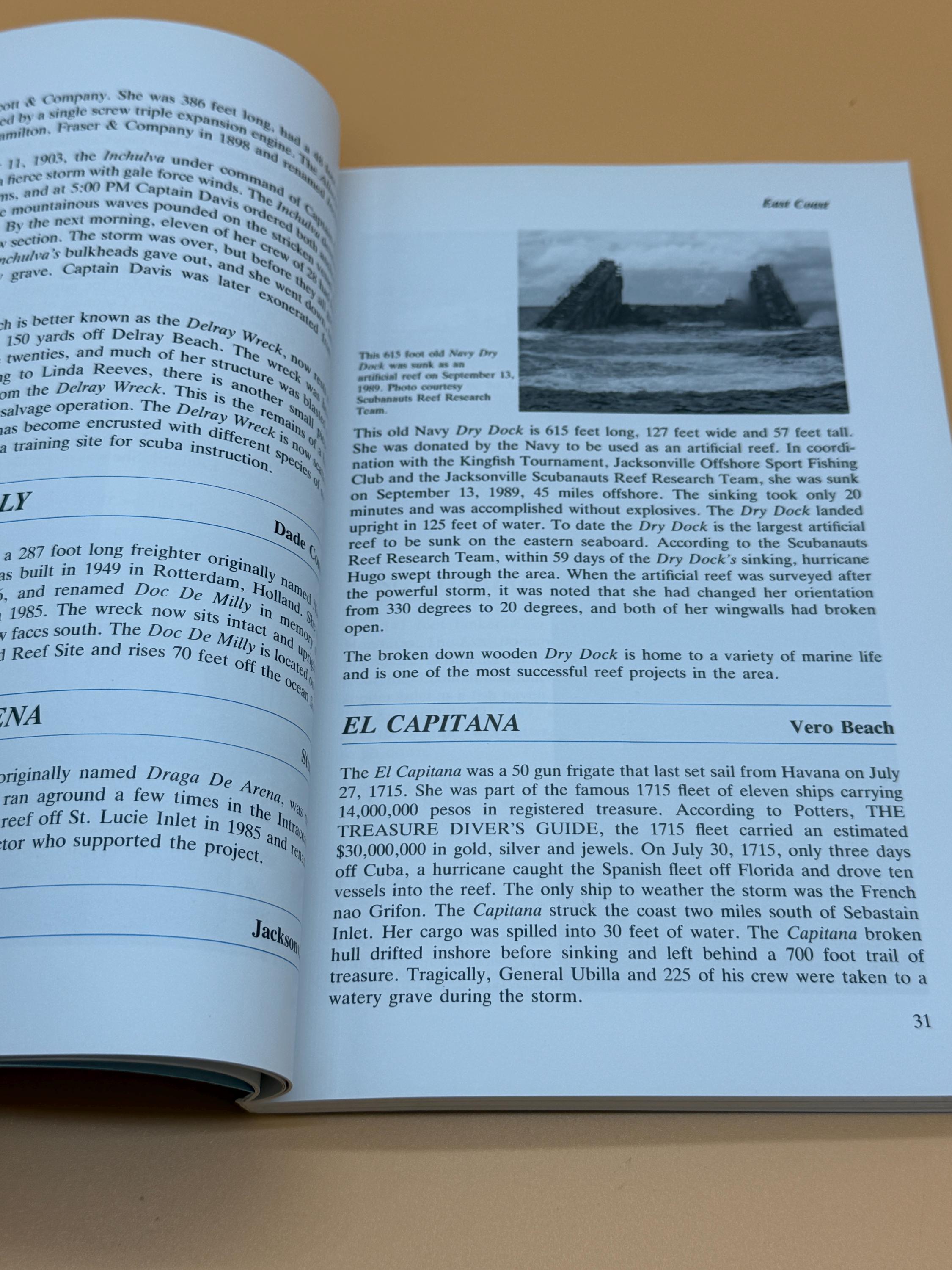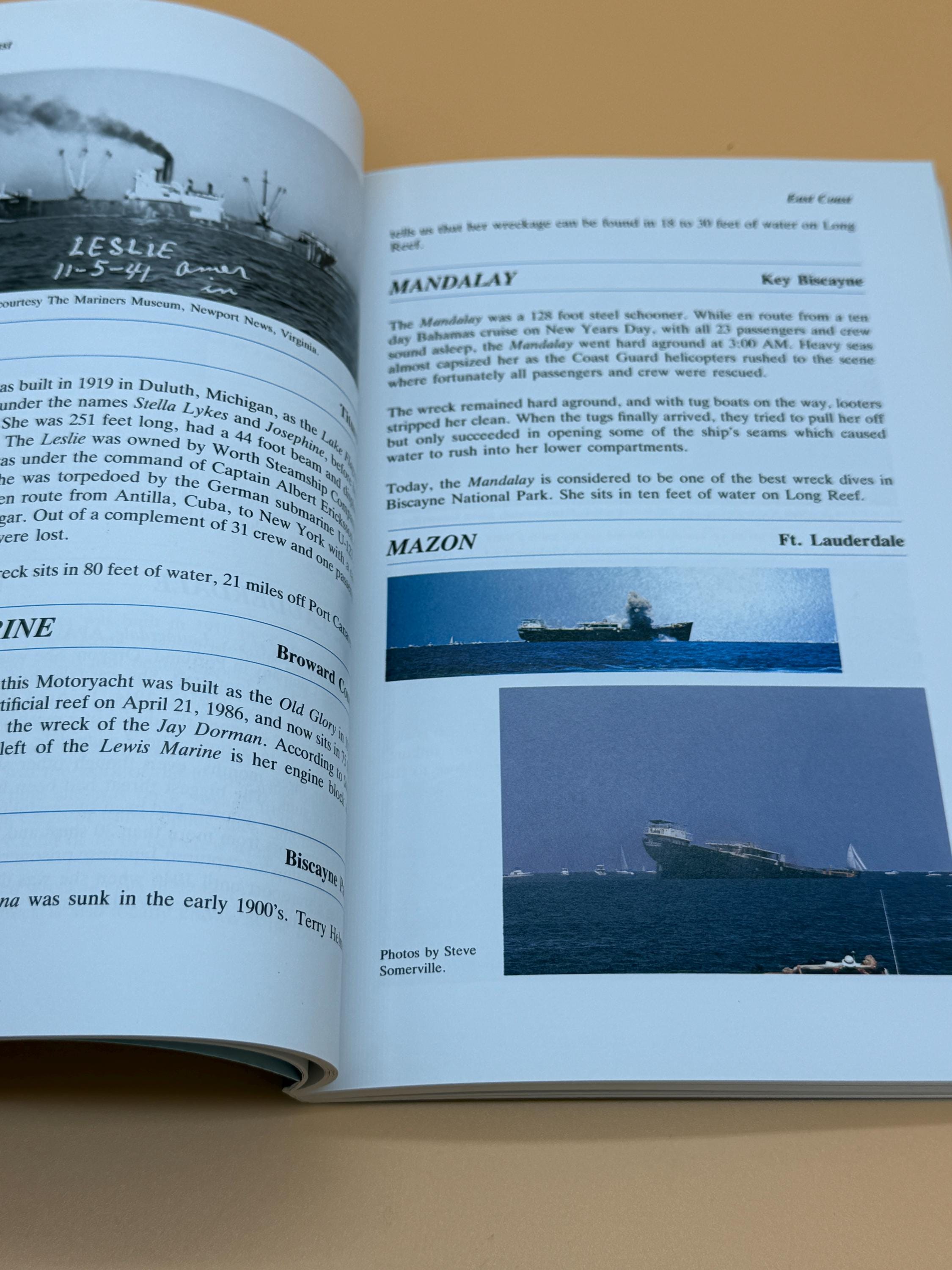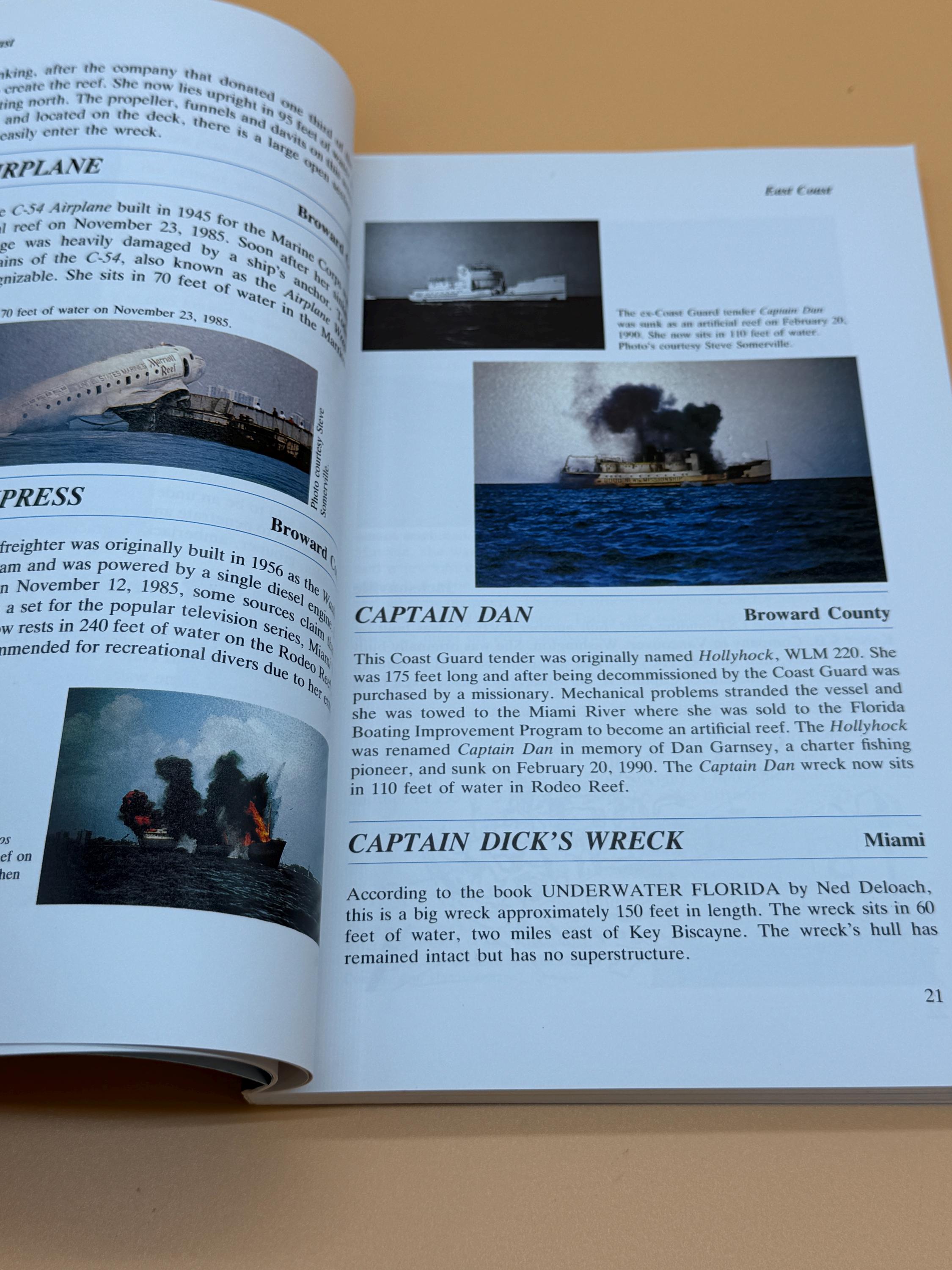 Florida Shipwrecks by Daniel & Denise Berg is subtitled The Diver's Guide to Shipwrecks Around the State of Florida and The Florida Keys. It includes a foreword by Stephen Frink. The book is an illustrated guide with photos, sketches and detailed text in the history and condition of over 235 shipwrecks. There are over 240 illustrations which include 151 color photos and 83 historical vintage black and white photos.