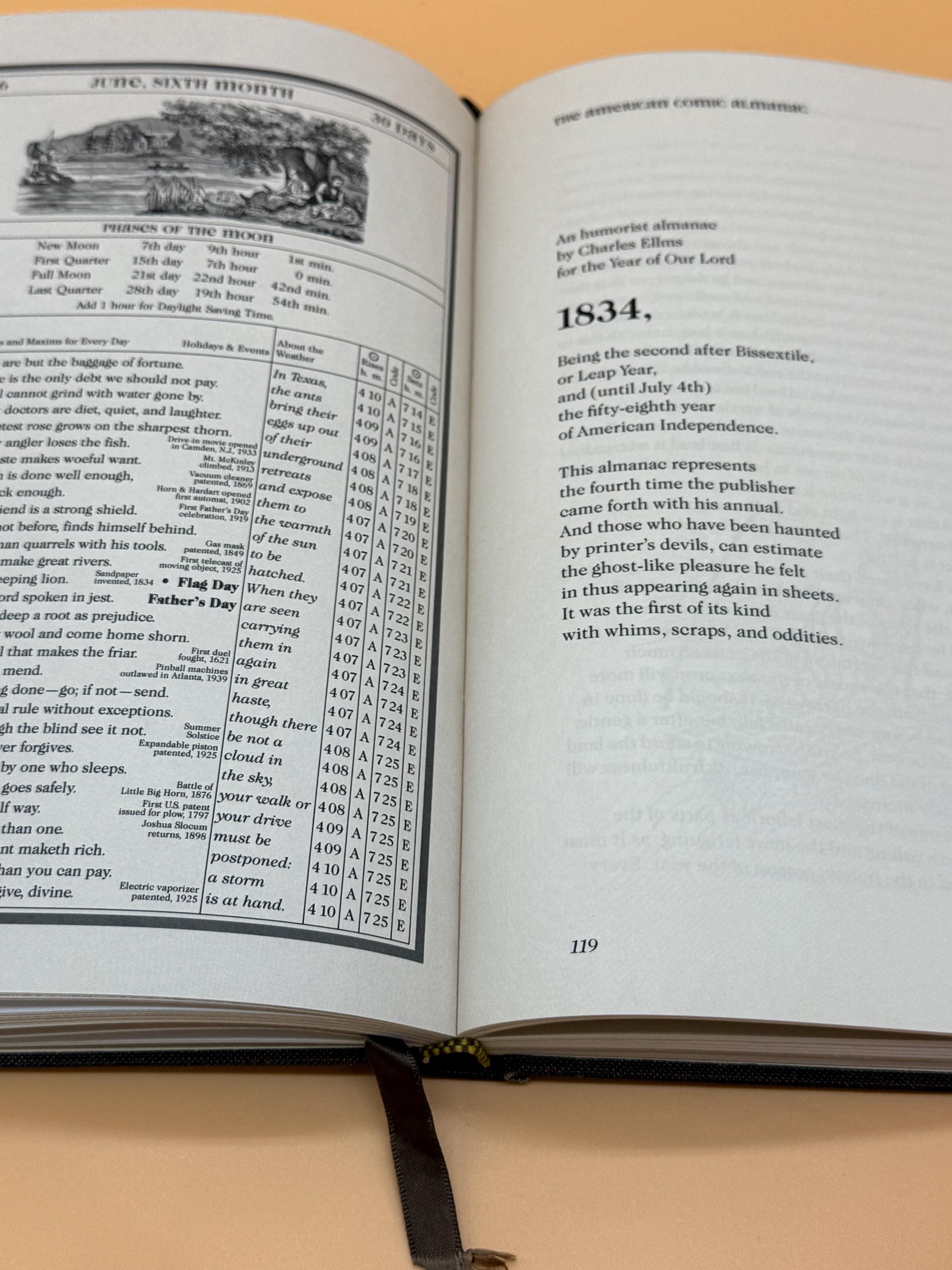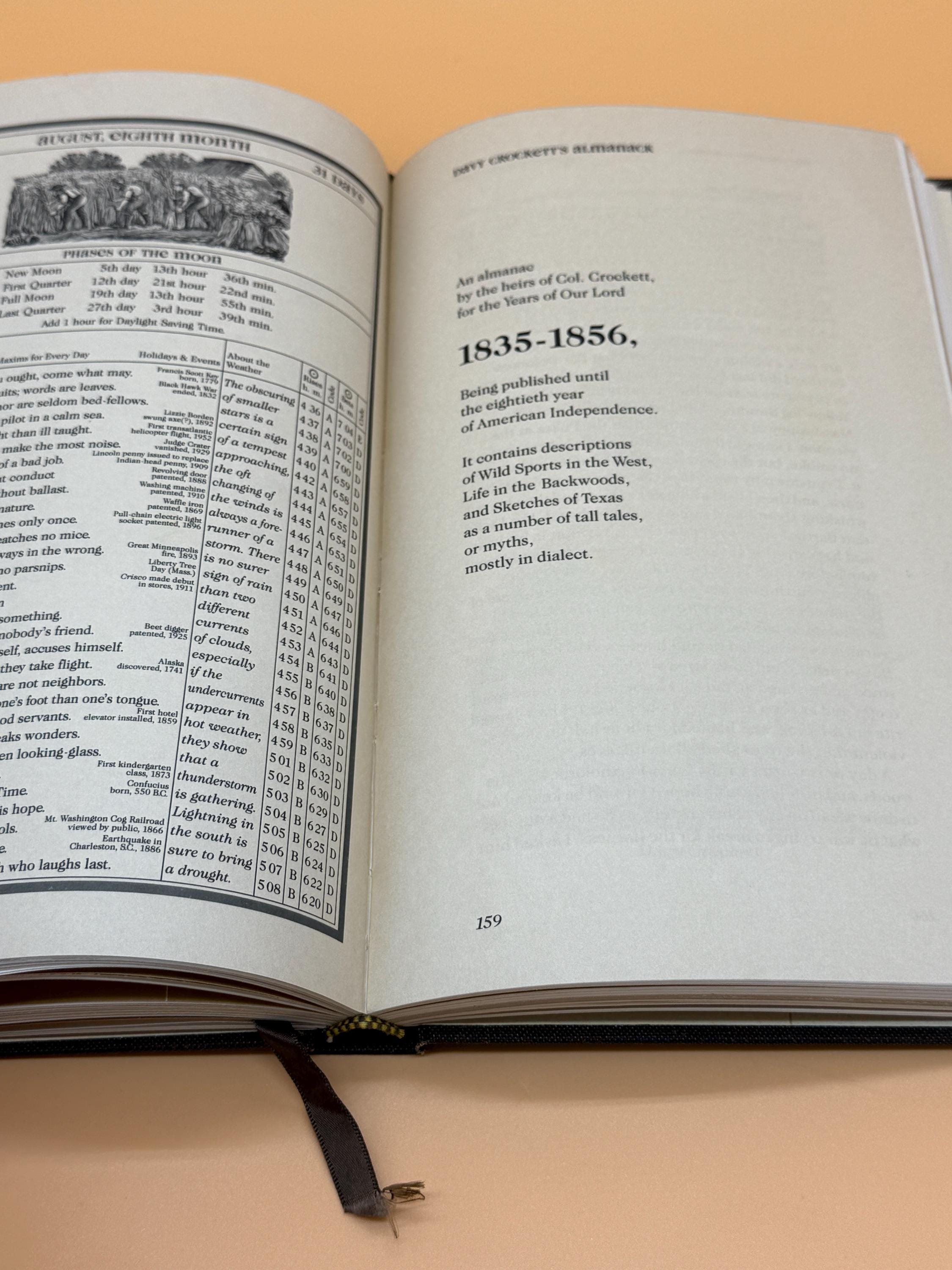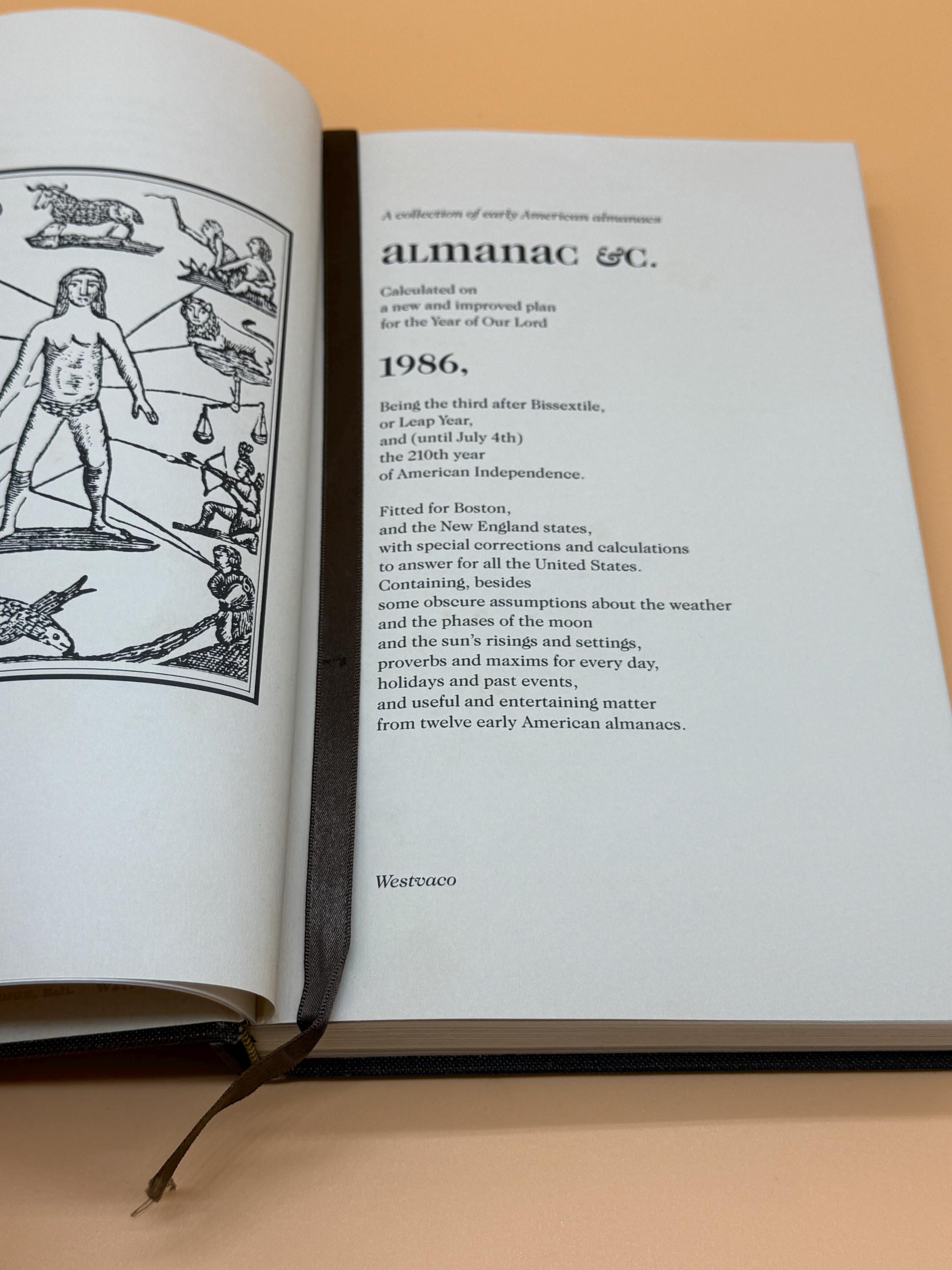 Almanac A Collection of Early American Almanacs was the 28th printed in the series by Westvaco. It highlights the importance of the almanac in American heritage. Early almanacs were forerunners of the modern magazine. The first American Almanac was printed in Cambridge, Mass. in 1639 under supervision of Harvard College. This edition contains a selection from the contents of 12 early American Almanacs. Selections include Poor Richards Almanack 1758, Farmers Almanack 1831, Davy Crockett's Almanack 1835-1856, Josh Billings Farmers Allminax and more.