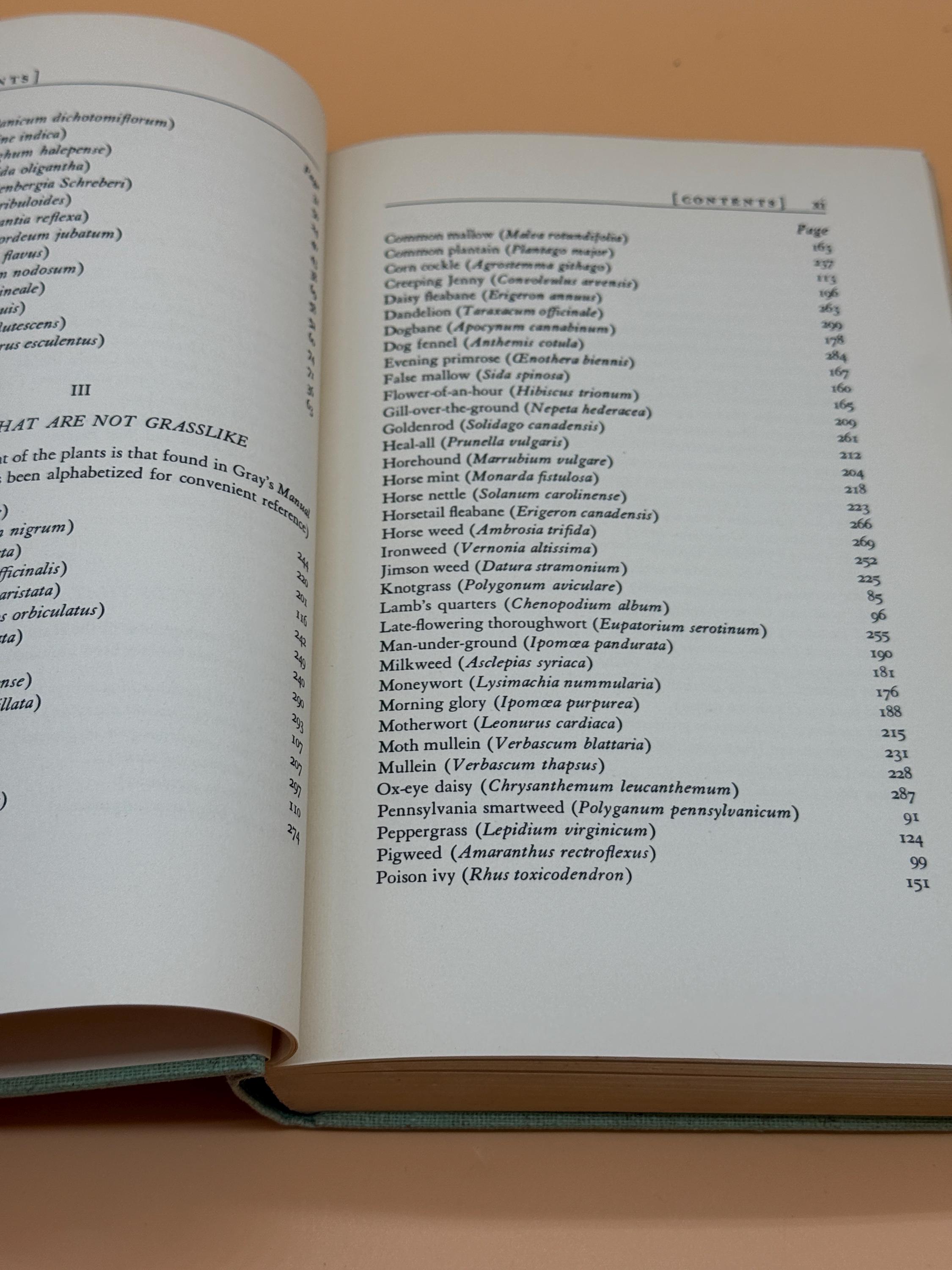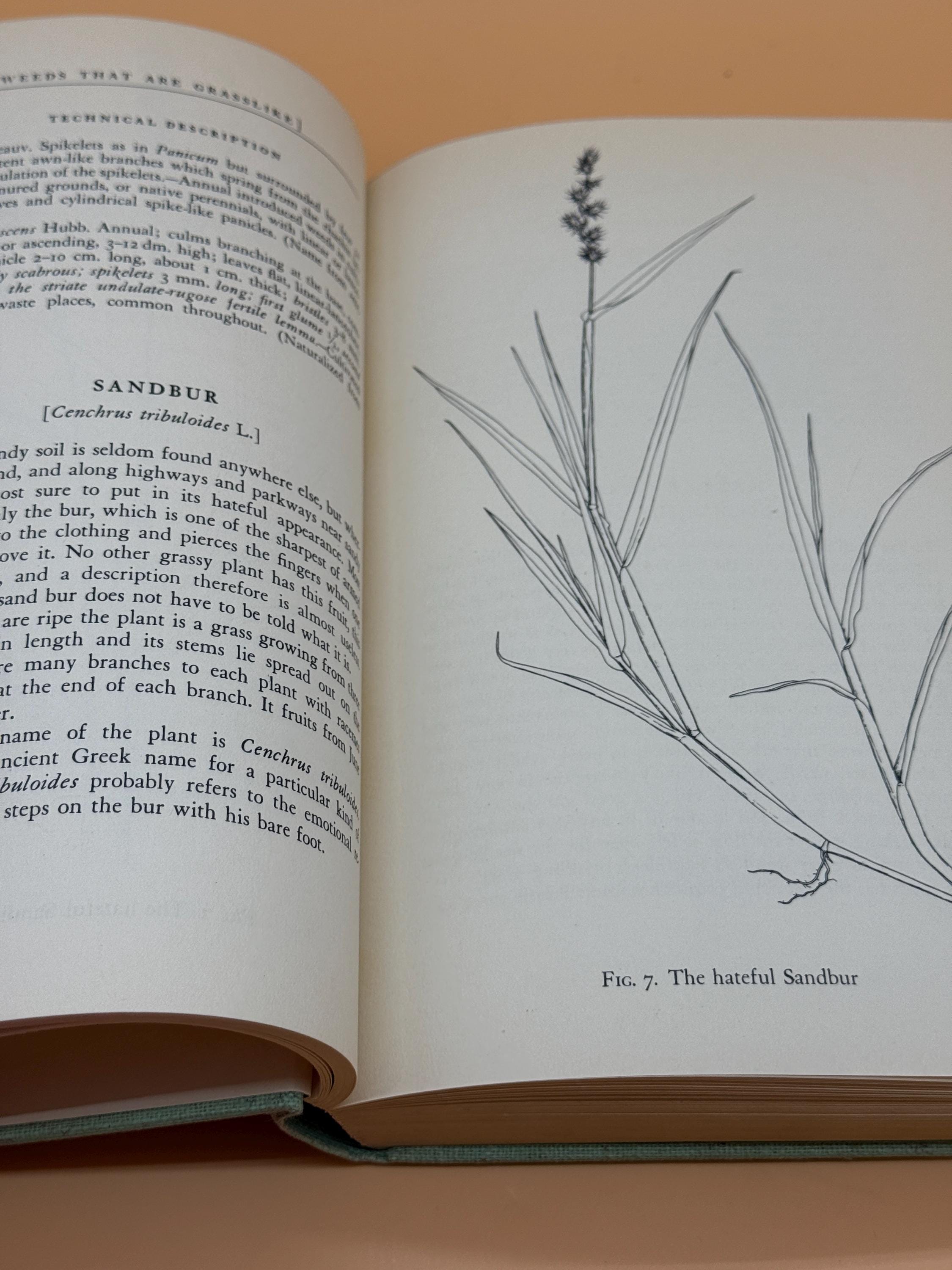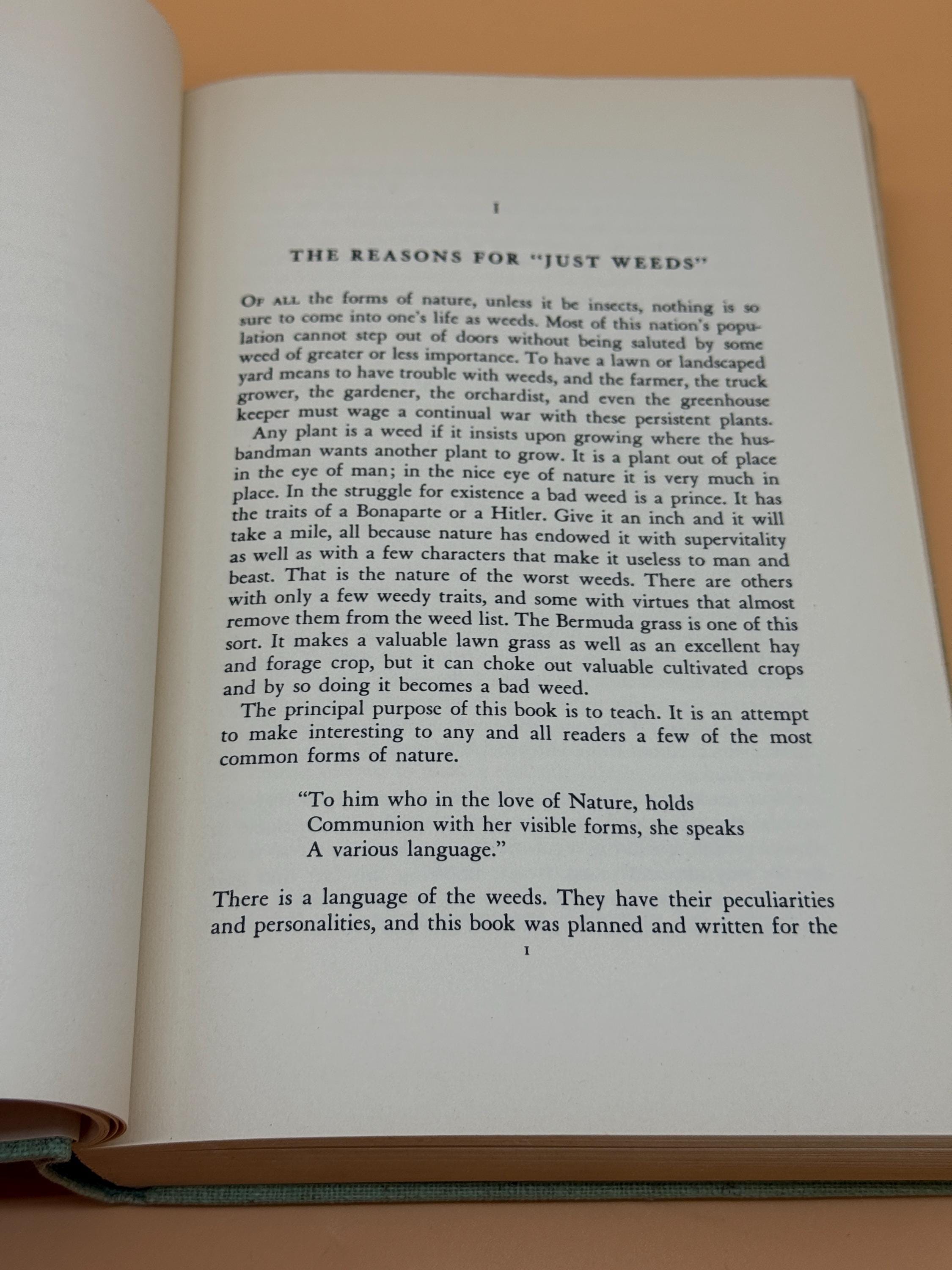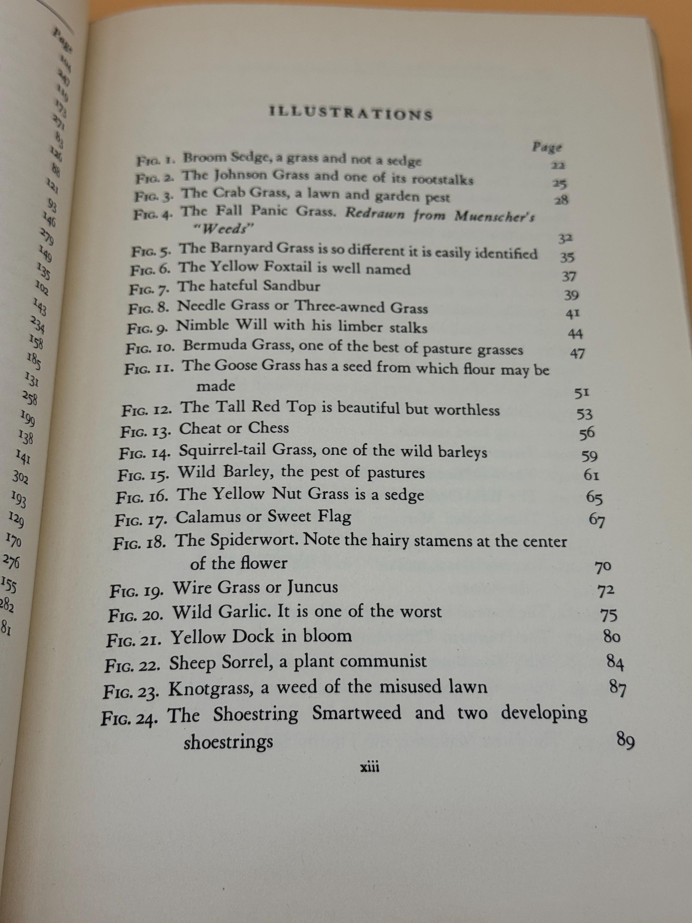 Just Weeds by Edwin Rollin Spencer has been finely illustrated by Emma Bergdolt. The book is designed for the botanist, naturalist, or novice who sees a weed in garden or roadside to be able to identify the weed and learn something about it. Chapters include Habitat and Seasonal Indexes, Weeds That Are Grasslike, and Weeds That Are Not Grasslike. The extensive line drawings of weeds highlight the informative text throughout.