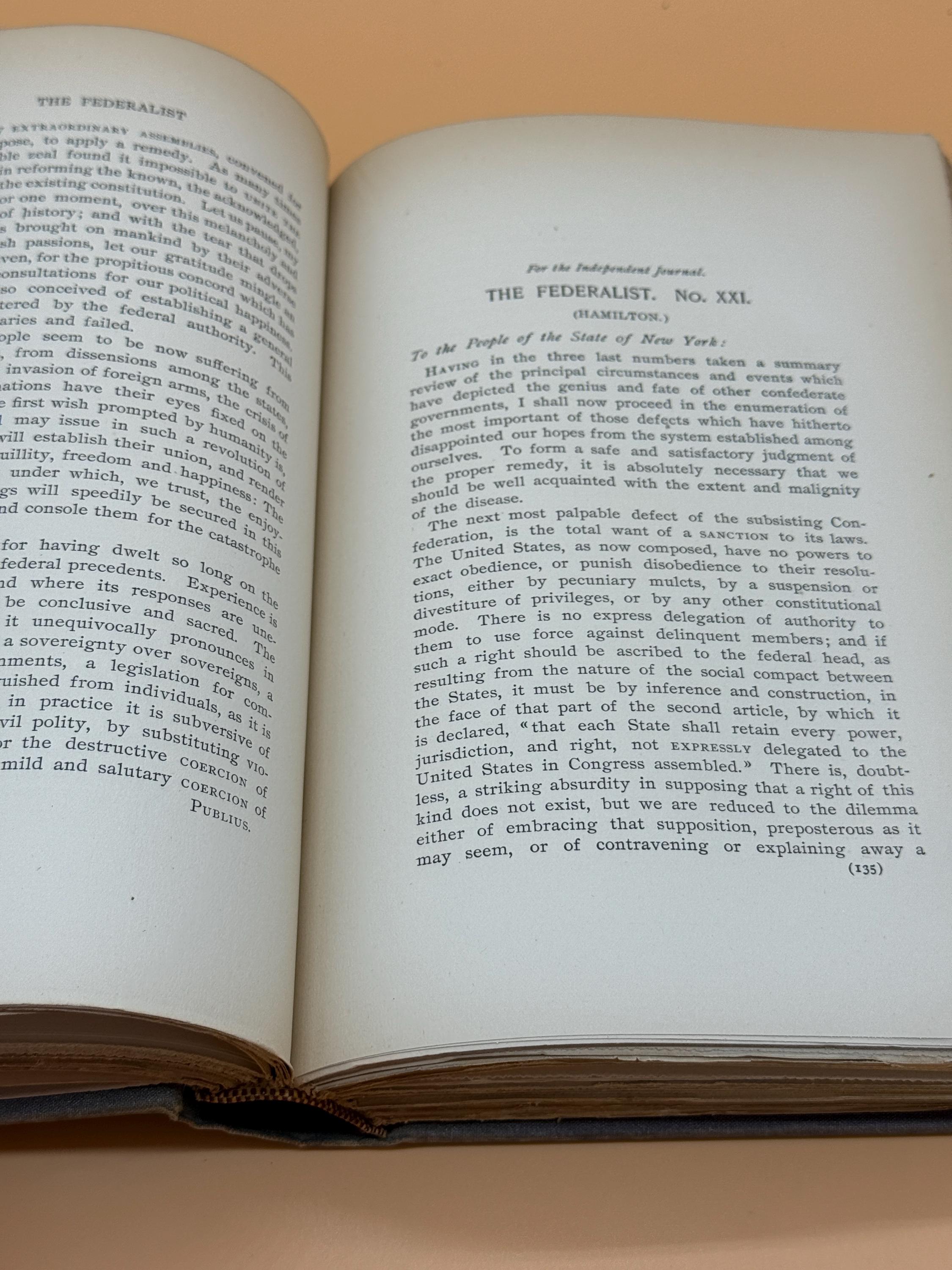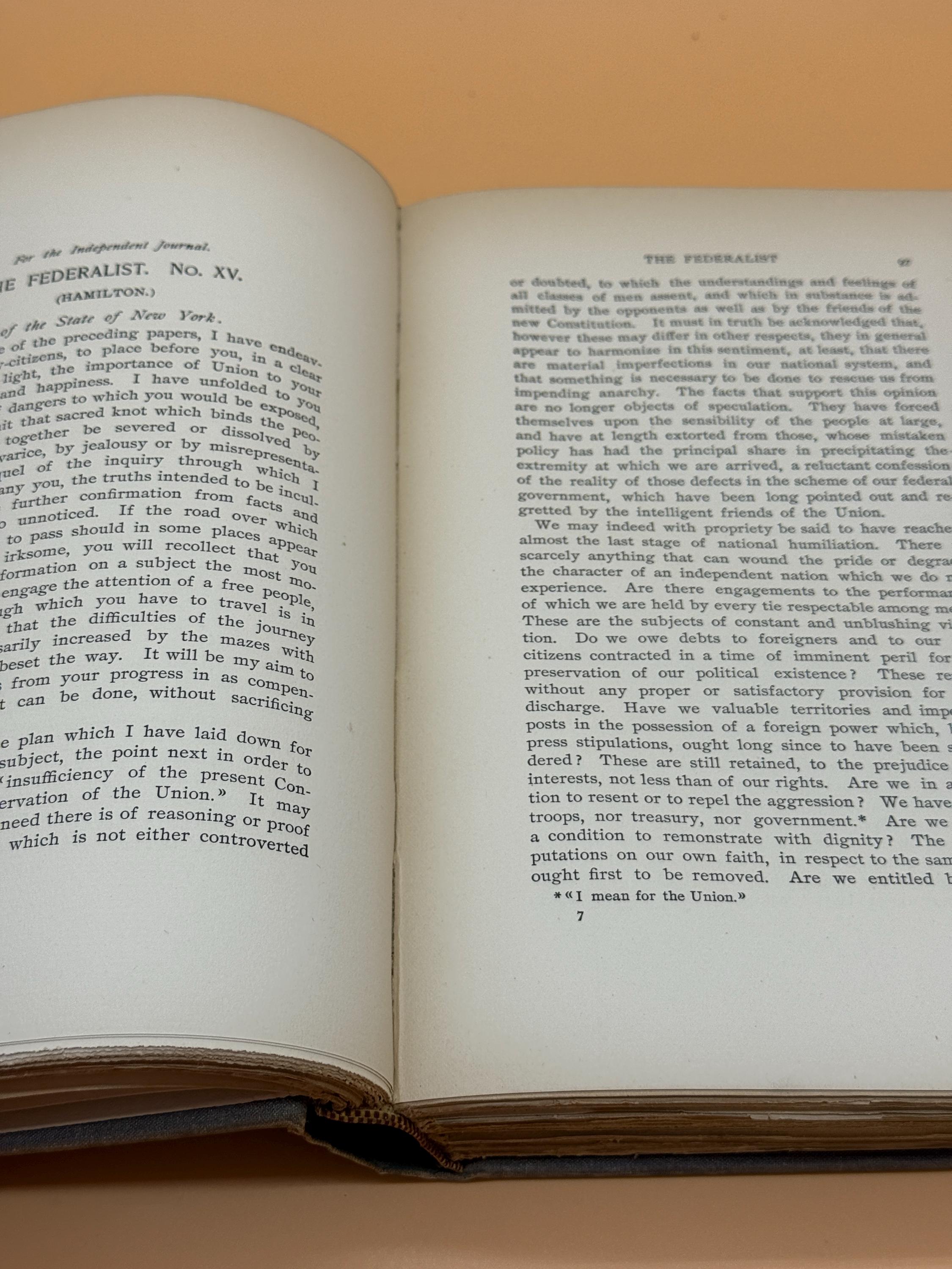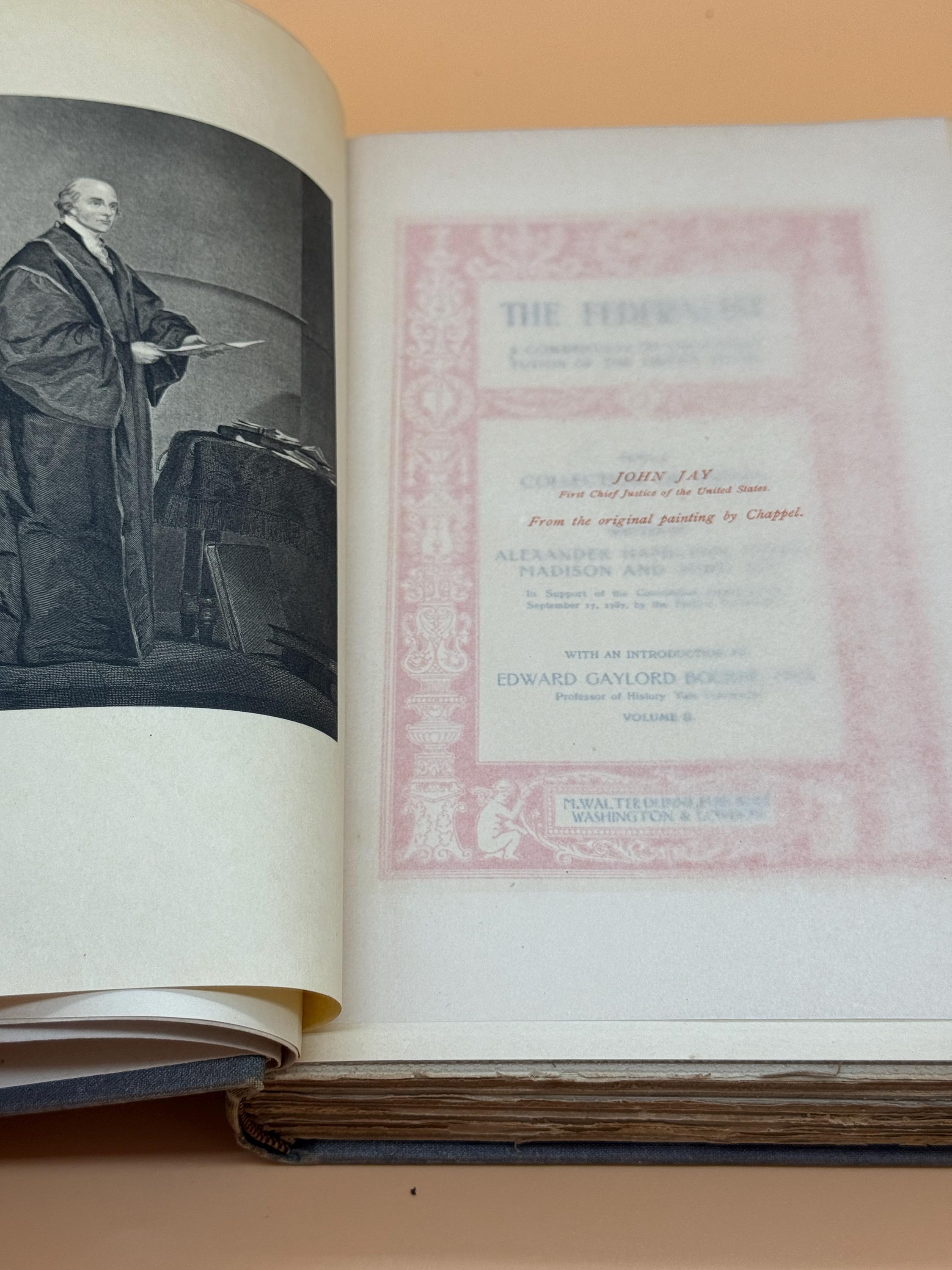Originally published by Walter Dunne as a 20 volume set featuring history and philosophy essays, this listing is for the 2 Volume Set, The Federalist and includes The English Constitution as Part 2 of Volume 2. The full title is The Federalist A Commentary On The Constitution of The United States Being a Collection of Essays by Alexander Hamilton, James Madison and John Jay. Includes Intro by Edward Gaylord Bourne. Part Two of Volume Two is The English Constitution by Walter Bagehot. Intro by Edwin Erle Sparks.