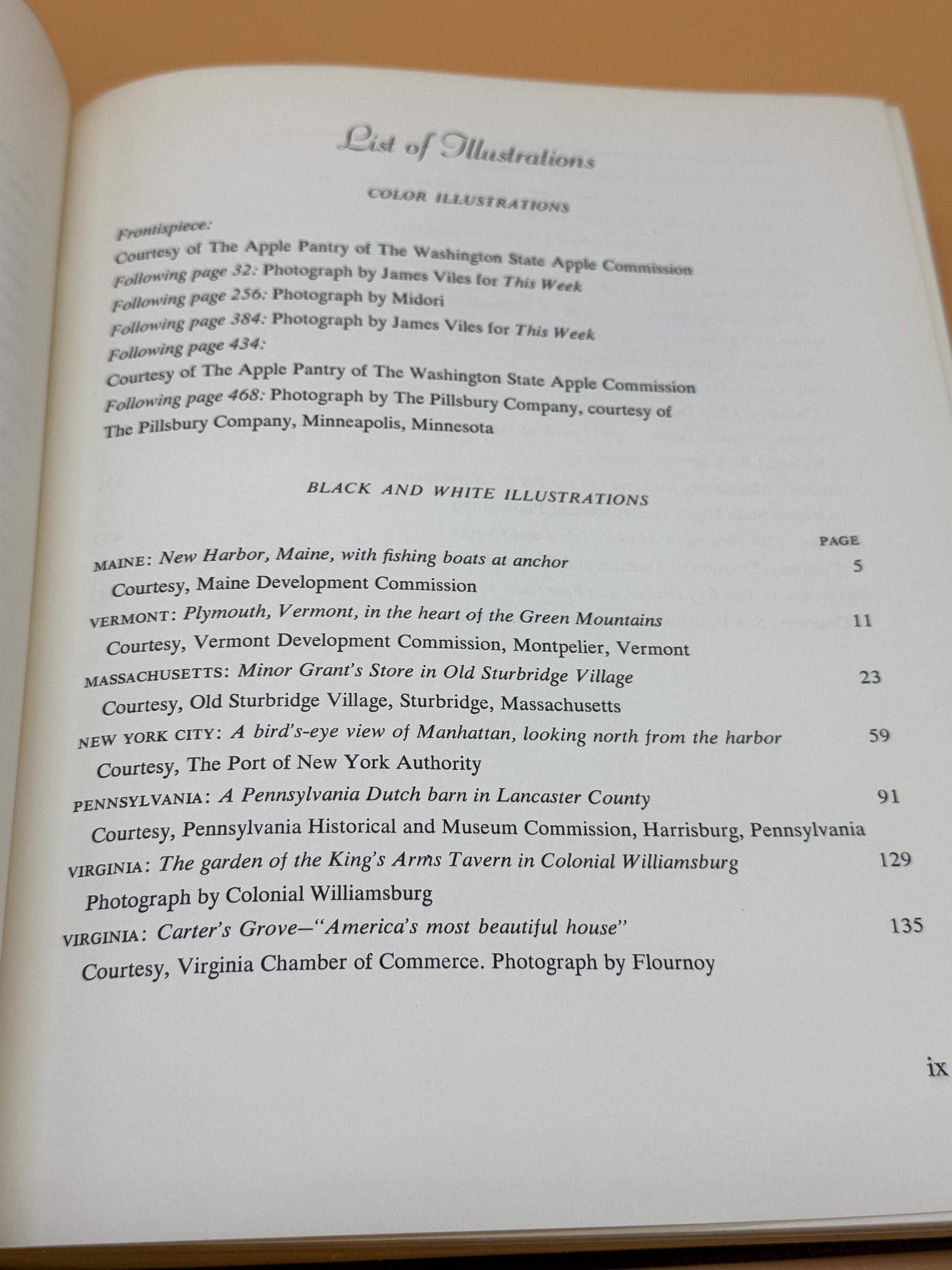 How America Eats by Clementine Paddleford is a collection of recipes from all over the United States. From Maine to California, the author collected recipes from farm kitchens, governors mansions, Hamburg diners, great chefs, and tea rooms. The author talks of how American dishes came from many countries but over the years have become Americanized. Pioneer mothers who created dishes with the foods available are now called "regional" recipes. Some recipes are for the gourmet, some for the quick-cook artists. Regardless, the book is full of delightful recipes from all over the United States. There are both color and black and white illustrations and photos that bring recipes to life.
