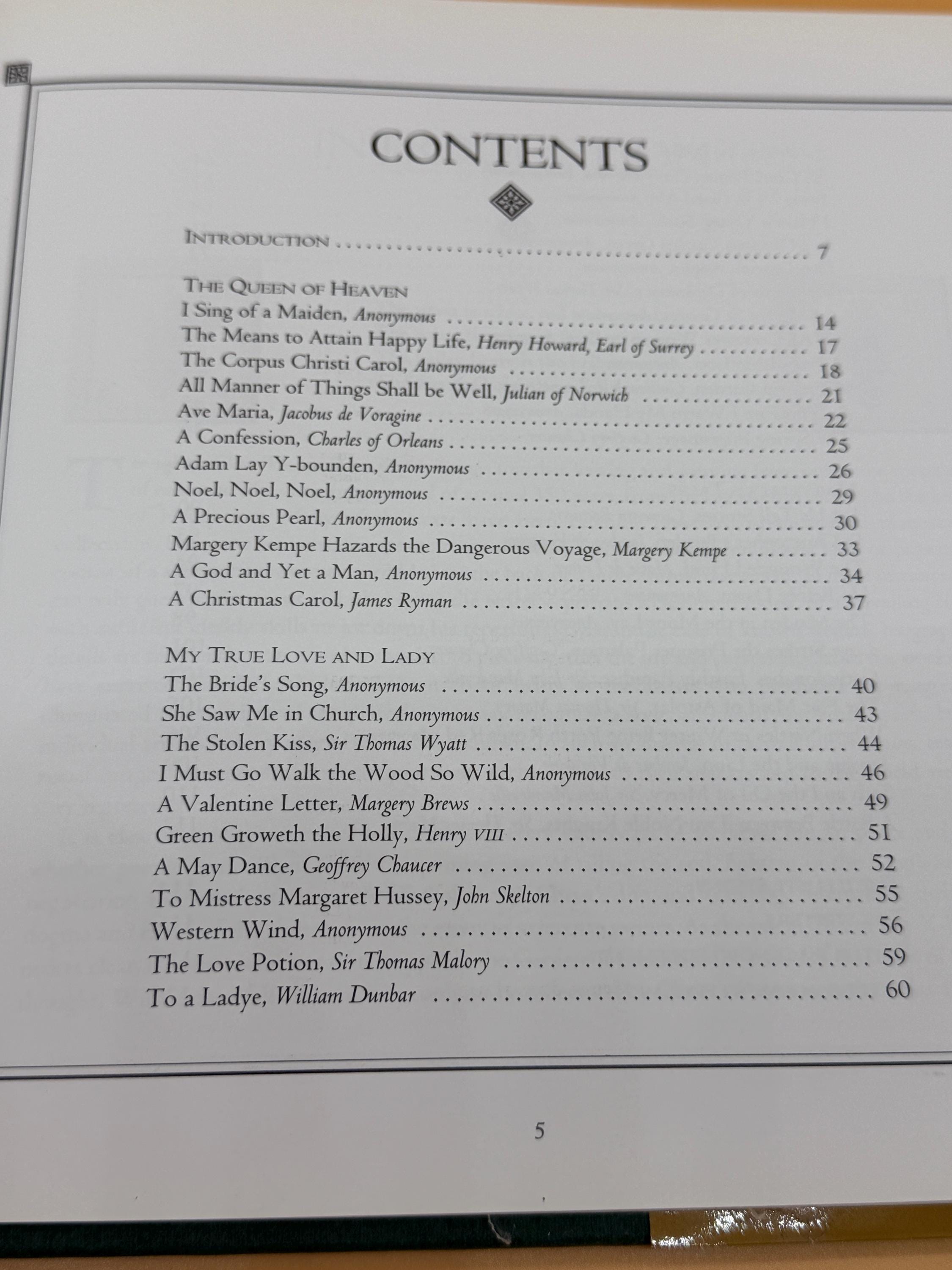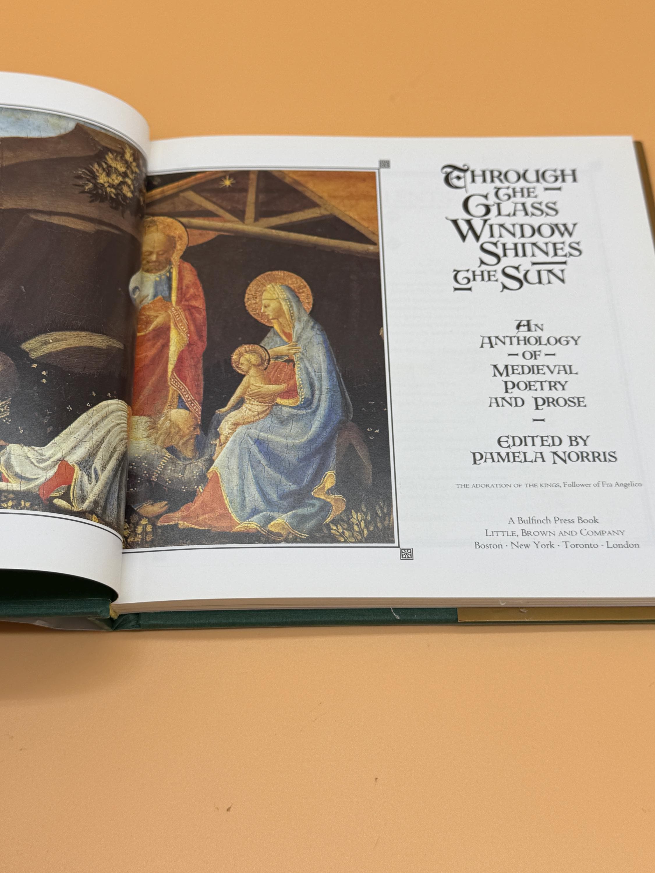 Through the Glass Window Shines the Sun An Anthology of Medieval Poetry and Prose has been edited by Pamela Norris. It brings together writing and painting from across the spectrum of European medieval life. It is arranged thematically and includes traditional lyrics and carols along with love poems by John Skelton, Charles of Orleans, Sir Thomas Wyatt and more. The colorful illustrations include illuminations from magnificent decorative manuscripts of The Middle Ages. It is a wonderful collection that presents a memorable panorama of the medieval world.