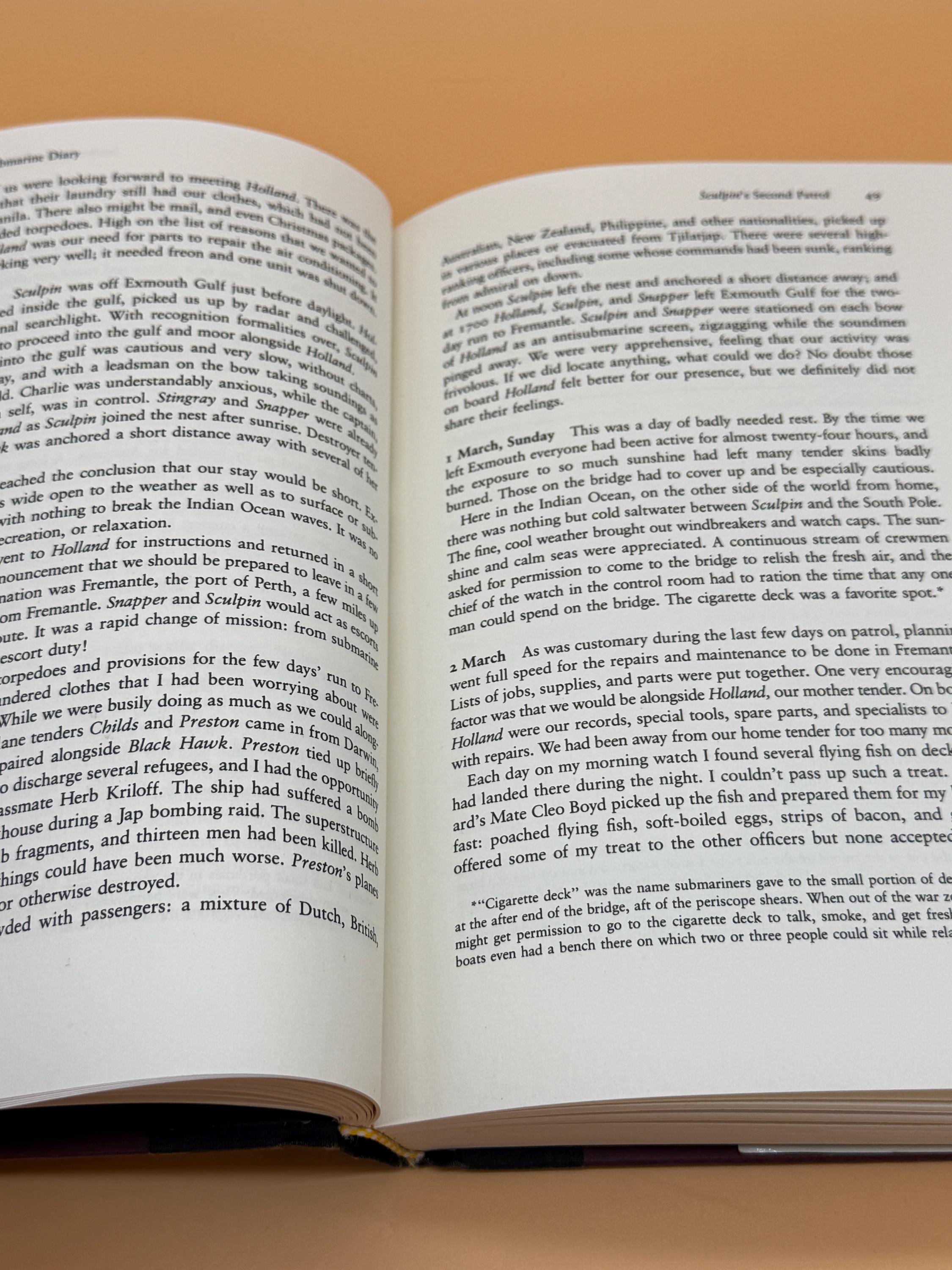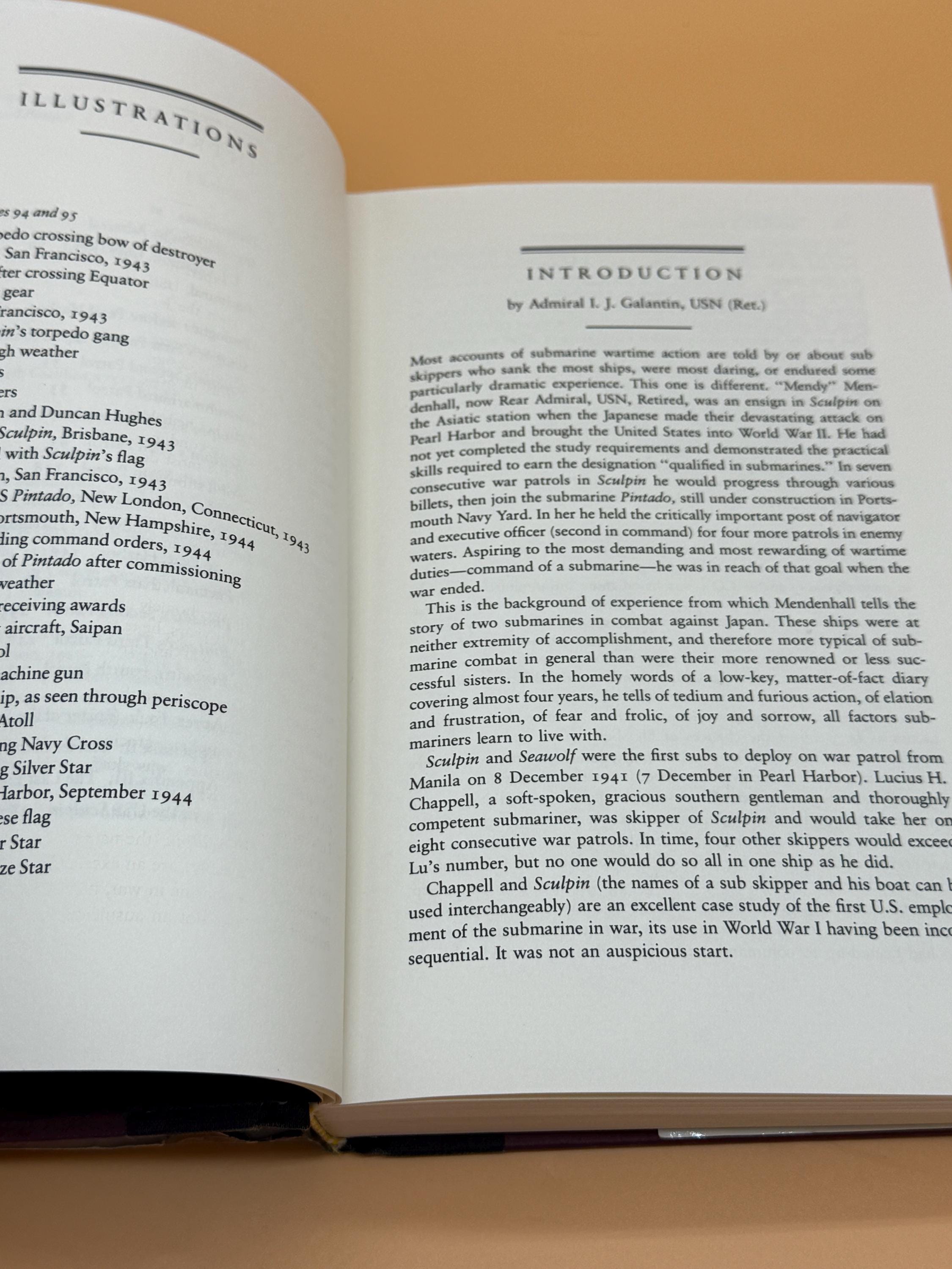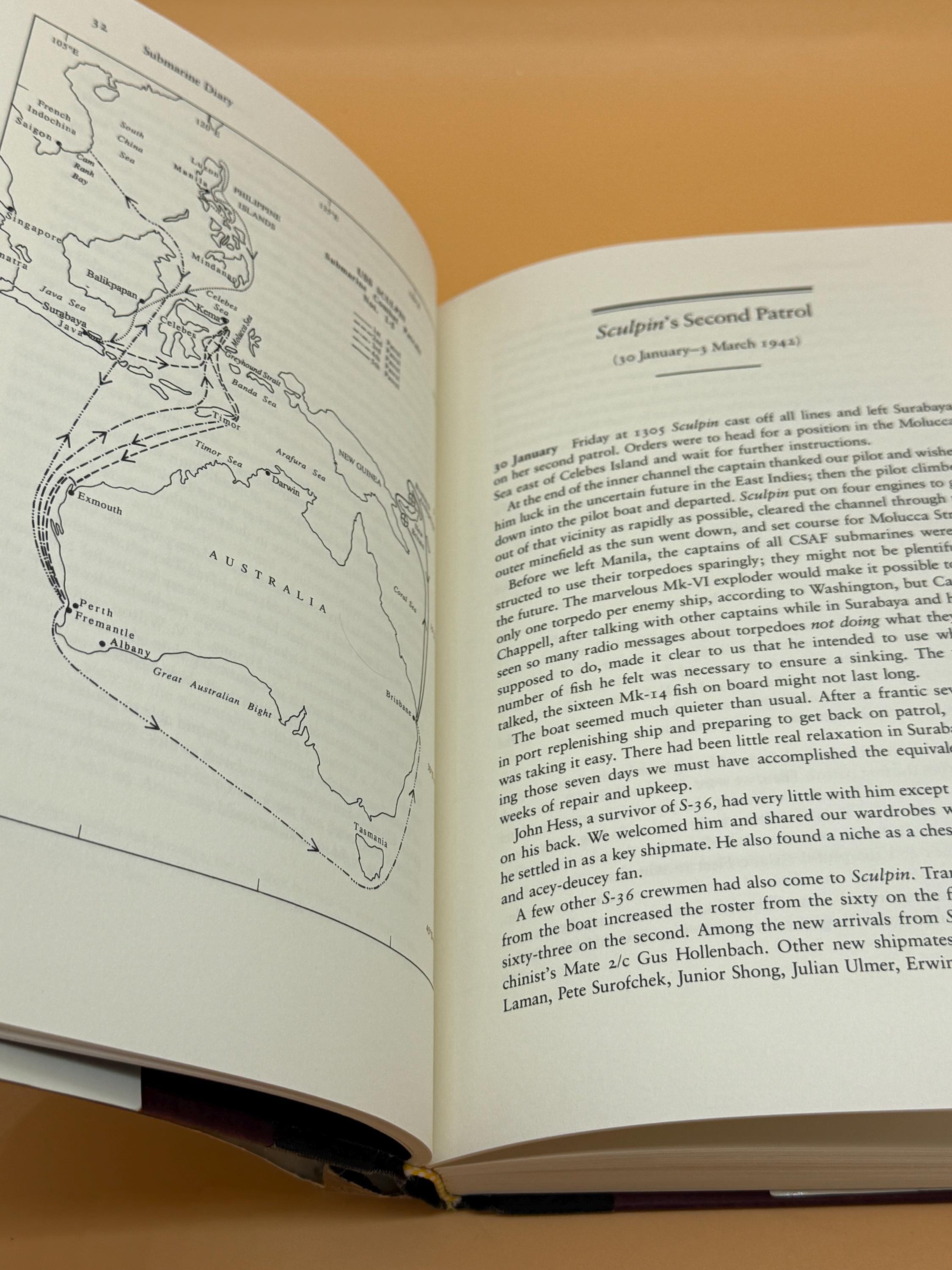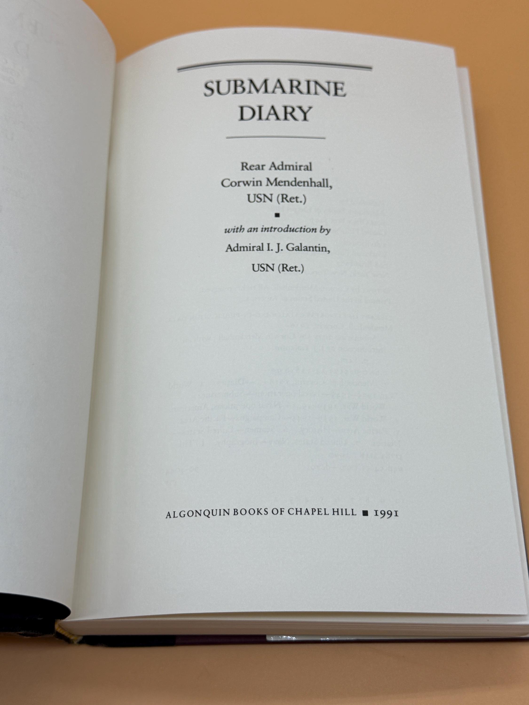 Submarine Diary by Rear Admiral Corwin Mendenhall, U.S.N (Ret) is subtitled The Silent Stalking of Japan. When news of the attack on Pearl Harbor came, fleet submarine USS Sculpin, stationed at Manila, quickly put out to sea in search of enemy ships. Her junior ensign in charge of torpedoes, Corwin Mendenhall, made seven undersea patrols aboard the Sculpin in the Pacific. This is the story of those patrols. It is a detailed account of what serving aboard a wartime submarine requires. Along with the perils of attack at sea or air, submariners had to contend with imperfect torpedoes that often failed to operate properly. By V-J Day some 2,000+ Japanese navy and merchant vessels had been sent to the bottom of the sea. American submarines accounted for more than 55% of that number. But the costs were high. 22% of those who ventured to war on submarines failed to return. This is a detailed account accompanied with vintage photos