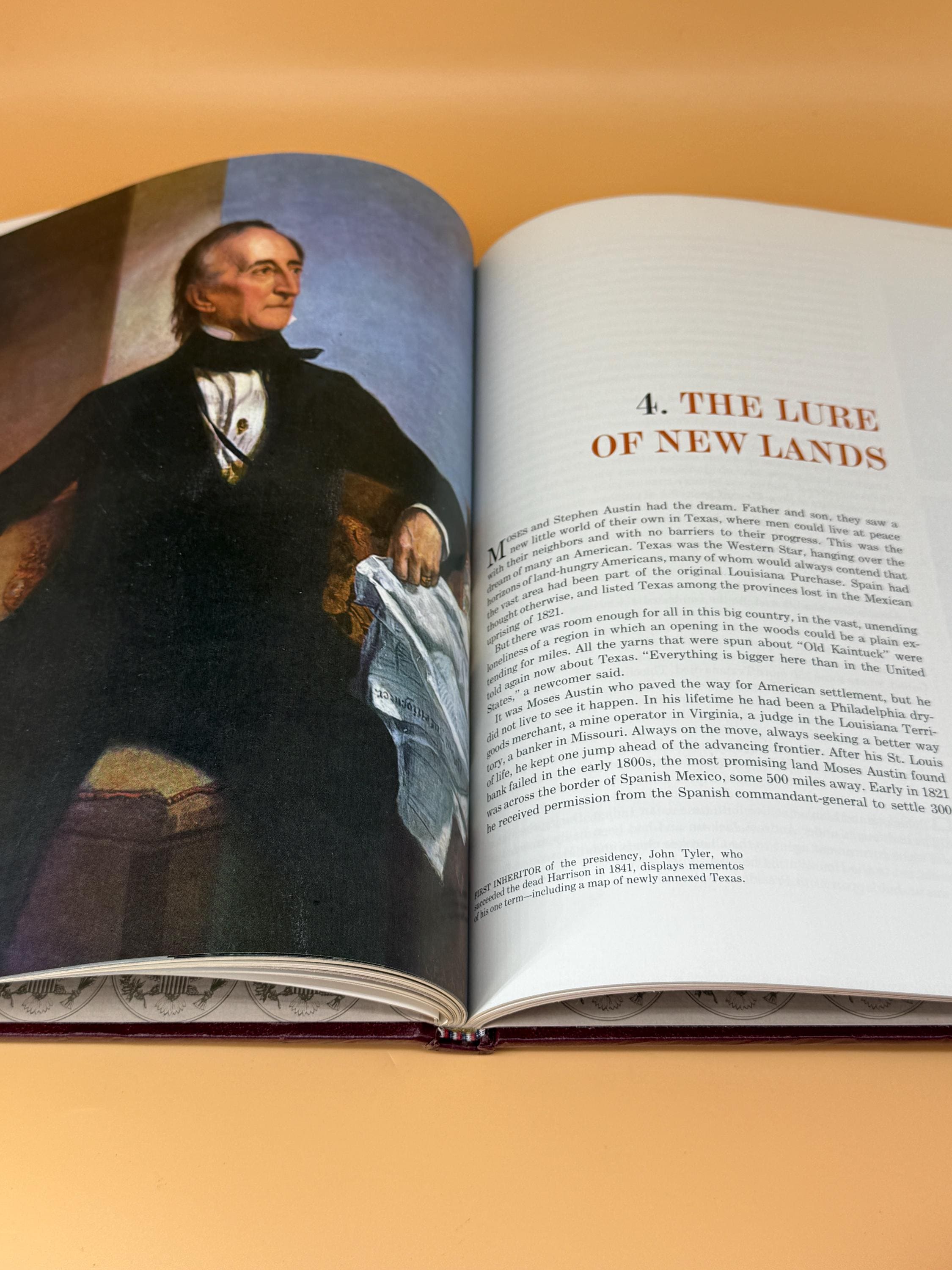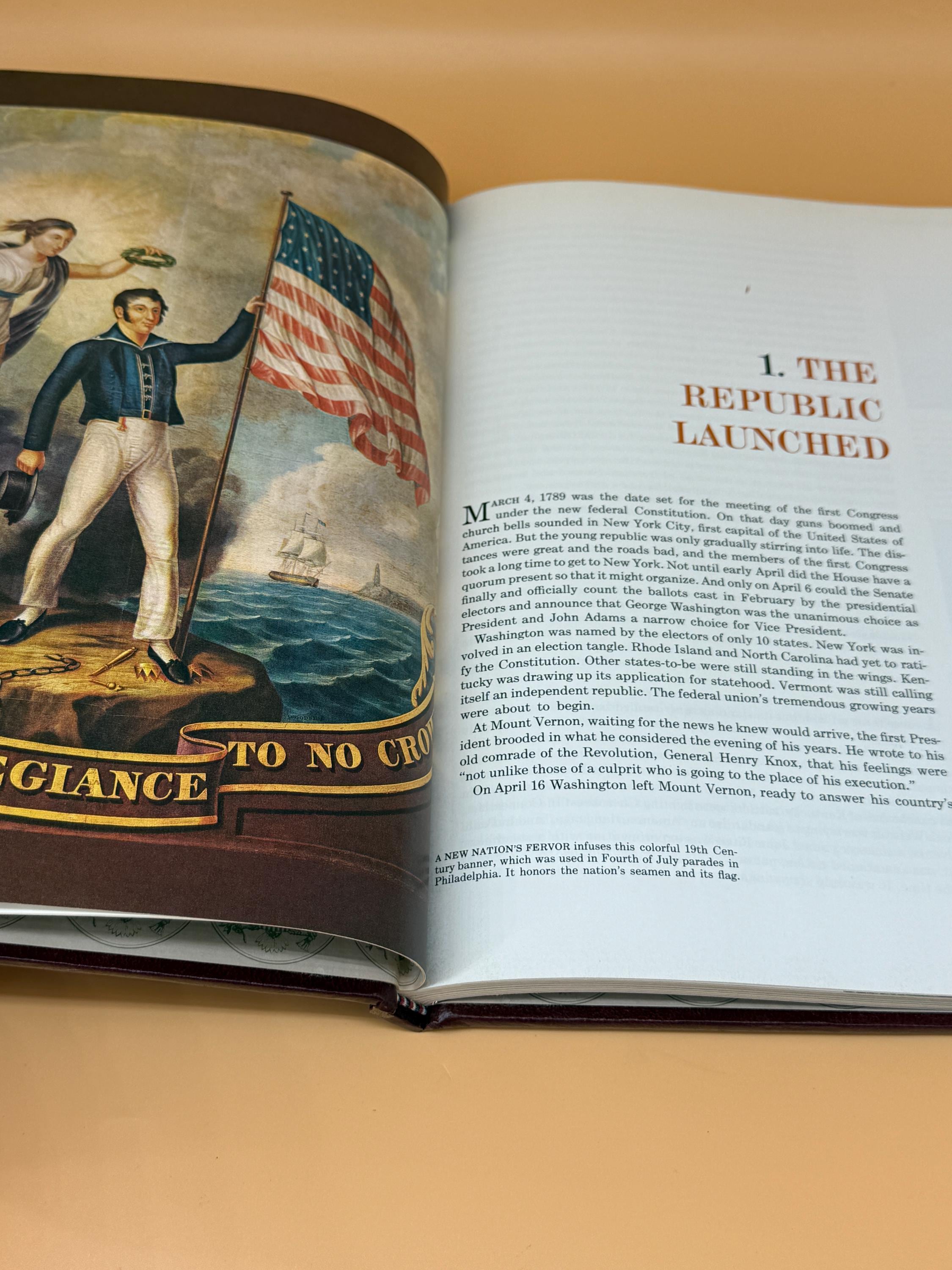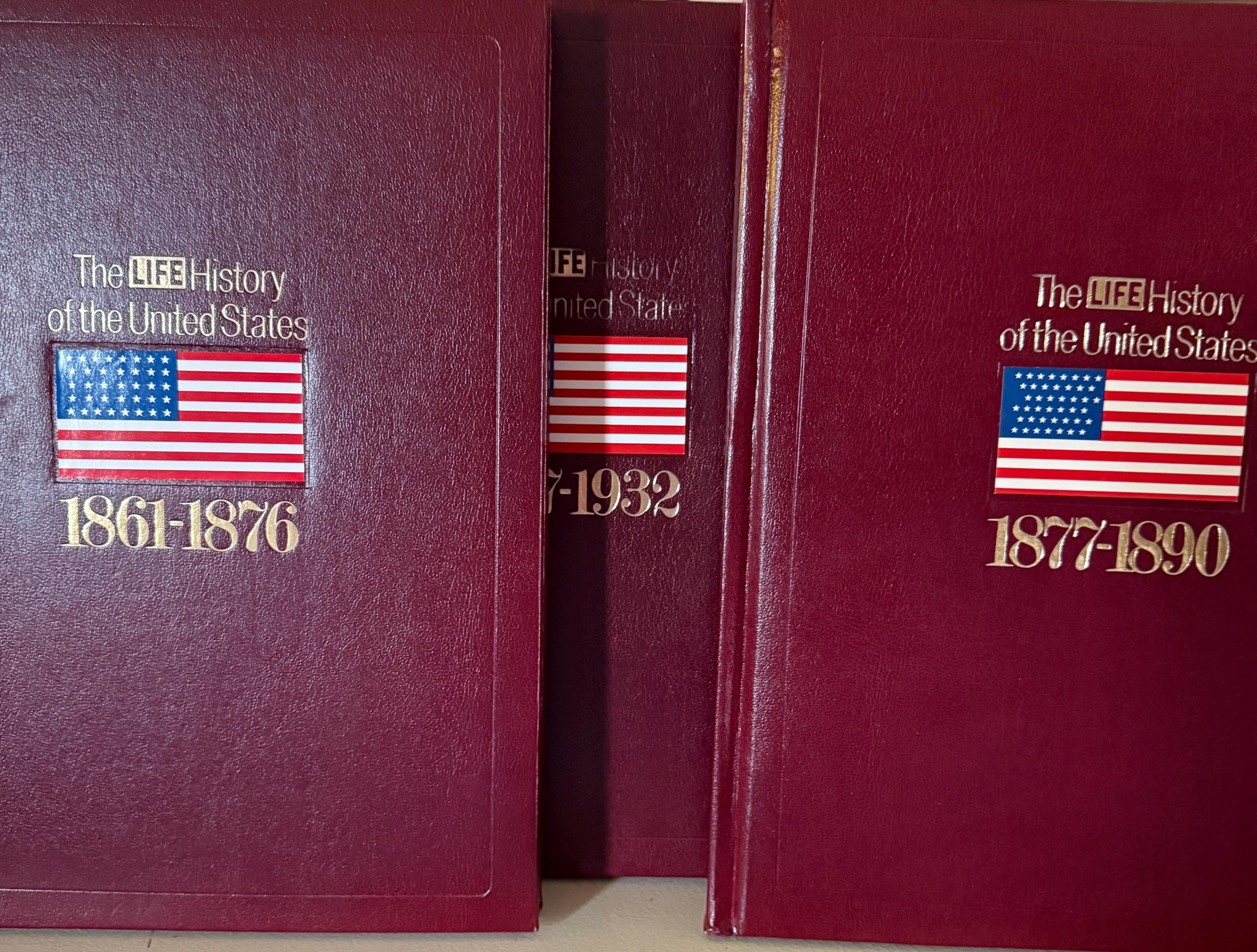 The Life History of the United States was originally published by Time Life Books in 1963. This set is the 1975 reprint. It consists of 12 volumes all bound in maroon leather-like padded covers for a fine binding look. The title list of the 12 volumes is as follows; Volume One The New World Before 1775, Volume Two The Making of a Nation 1775-1789, Volume Three The Growing Years 1789-1829, Volume Four The Sweep Westward 1829-1849, Volume Five The Union Sundered 1849-1865, Volume Six The Union Restored 1861-1876, Volume Seven Steel and Steam 1877-1890, Volume Eight Reaching For Empire 1890-1901, Volume Nine The Progressive Era 1901-1917, Volume Ten Boom and Bust 1917-1932, Volume Eleven New Deal and War 1933-1945 and Volume Twelve The Age of Change From 1945.