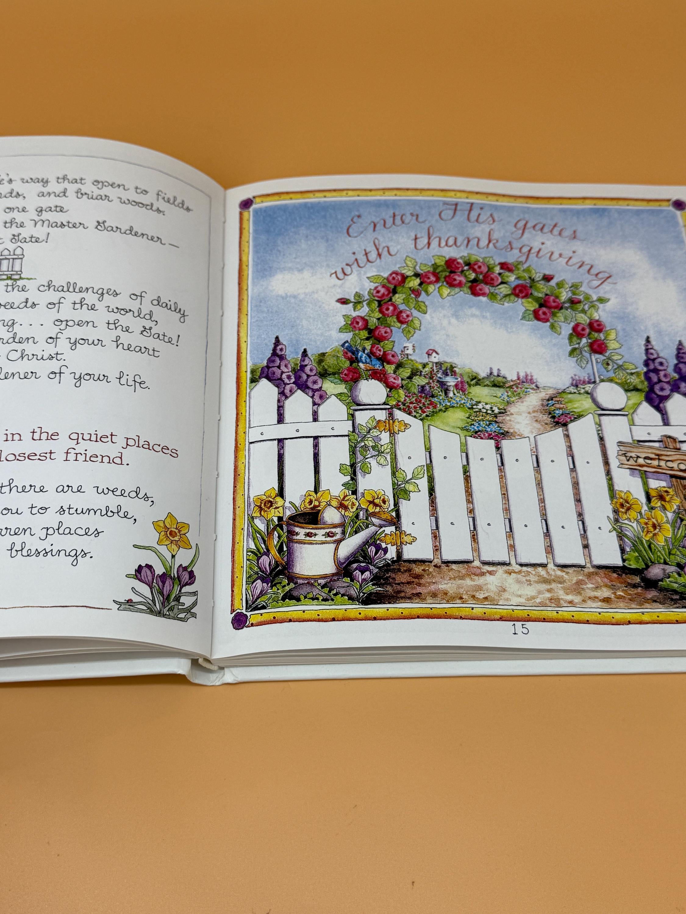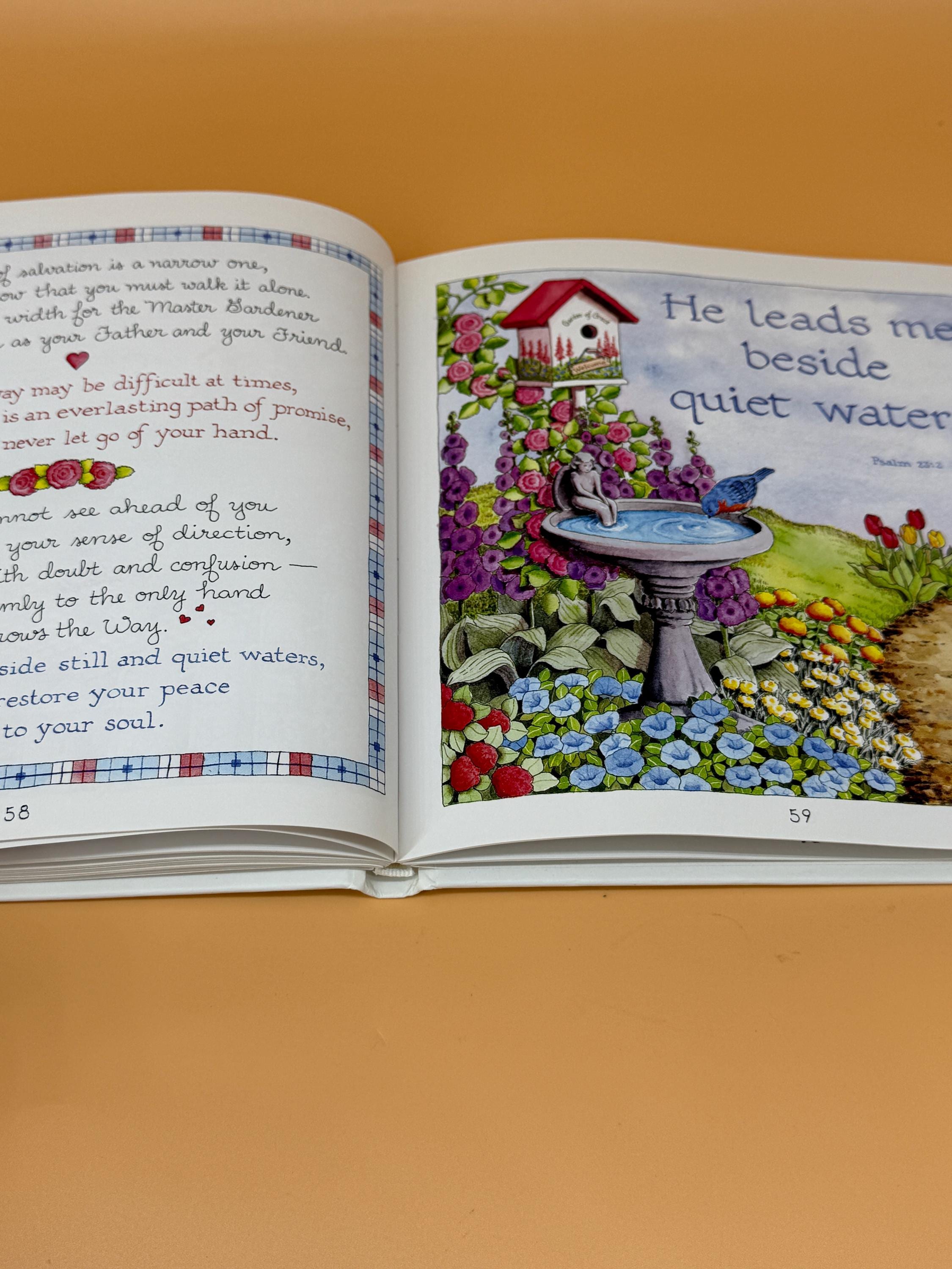 Down a Garden Path To Places of Love and Joy by Karla Dornacher is a wonderful for the garden lover filled with wonderful spiritual and religious inspirational words. The book portrays the Lord as Master Gardener and the small stories and illustrations reveal such. It is beautifully illustrated throughout and includes several pockets with pull out inspirational cards.