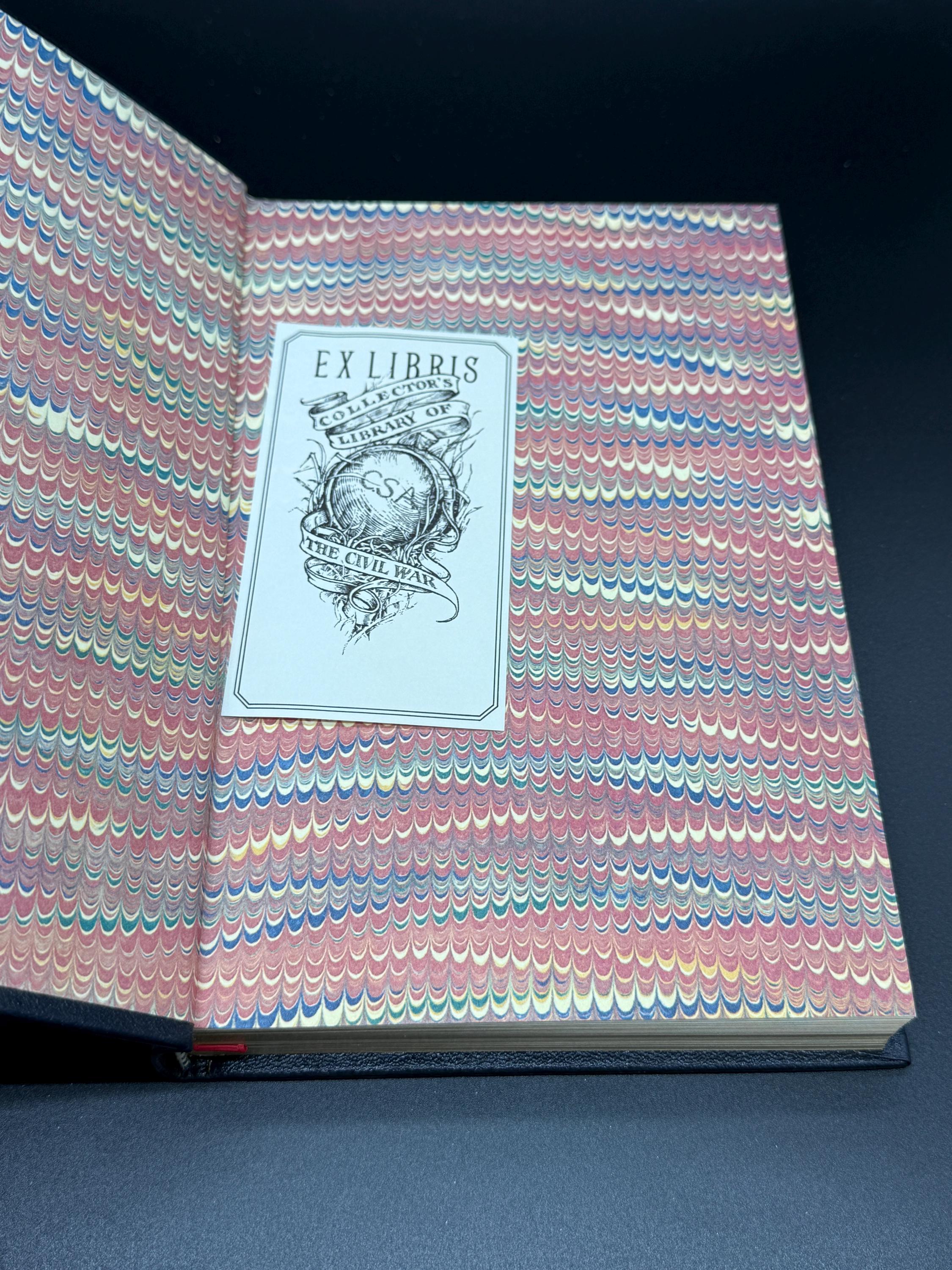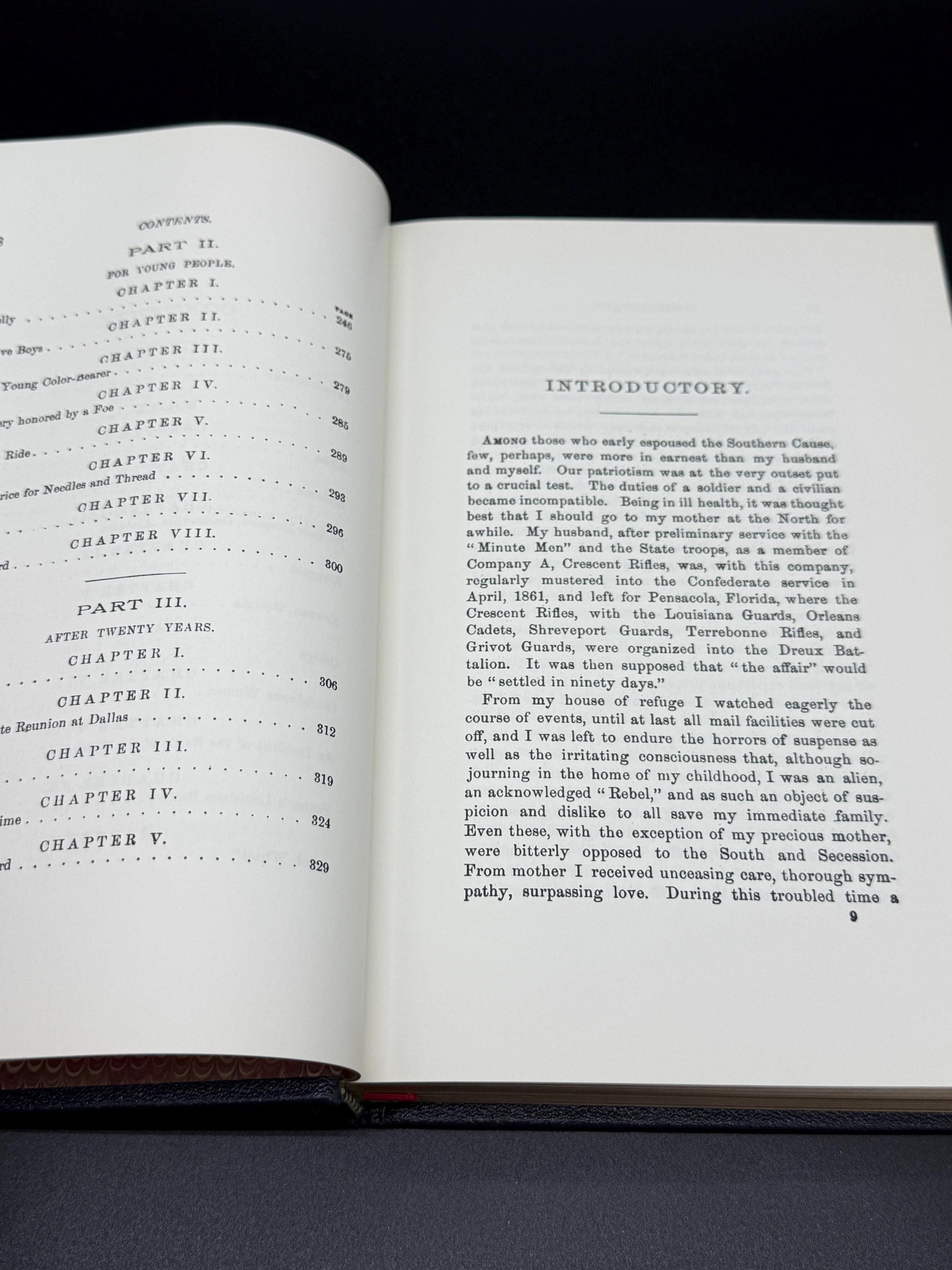 This is a near fine (almost like new) collectible leather bound hardcover. 1983 Time Life Collector's Library of the Civil War series. This collectors edition has been photographically reproduced from the first edition 1903, thus preserving the authenticity of the original including typographical errors and irregularities. Black leather bound hardcover with gold lettering and embossed illustration of foot soldiers on front cover. Gold tip page edges with red ribbon attached bookmark. Marbled endpapers front and back. Bound in fine sewn binding for aesthetics and durability, the binding is tight and straight. The pages inside are still crisp and clean with no markings seen. Original bookplate that accompanied the edition is affixed inside front cover. Includes original accompanying pamphlet. Octavo book size or 5" x 9" with 336 pages.