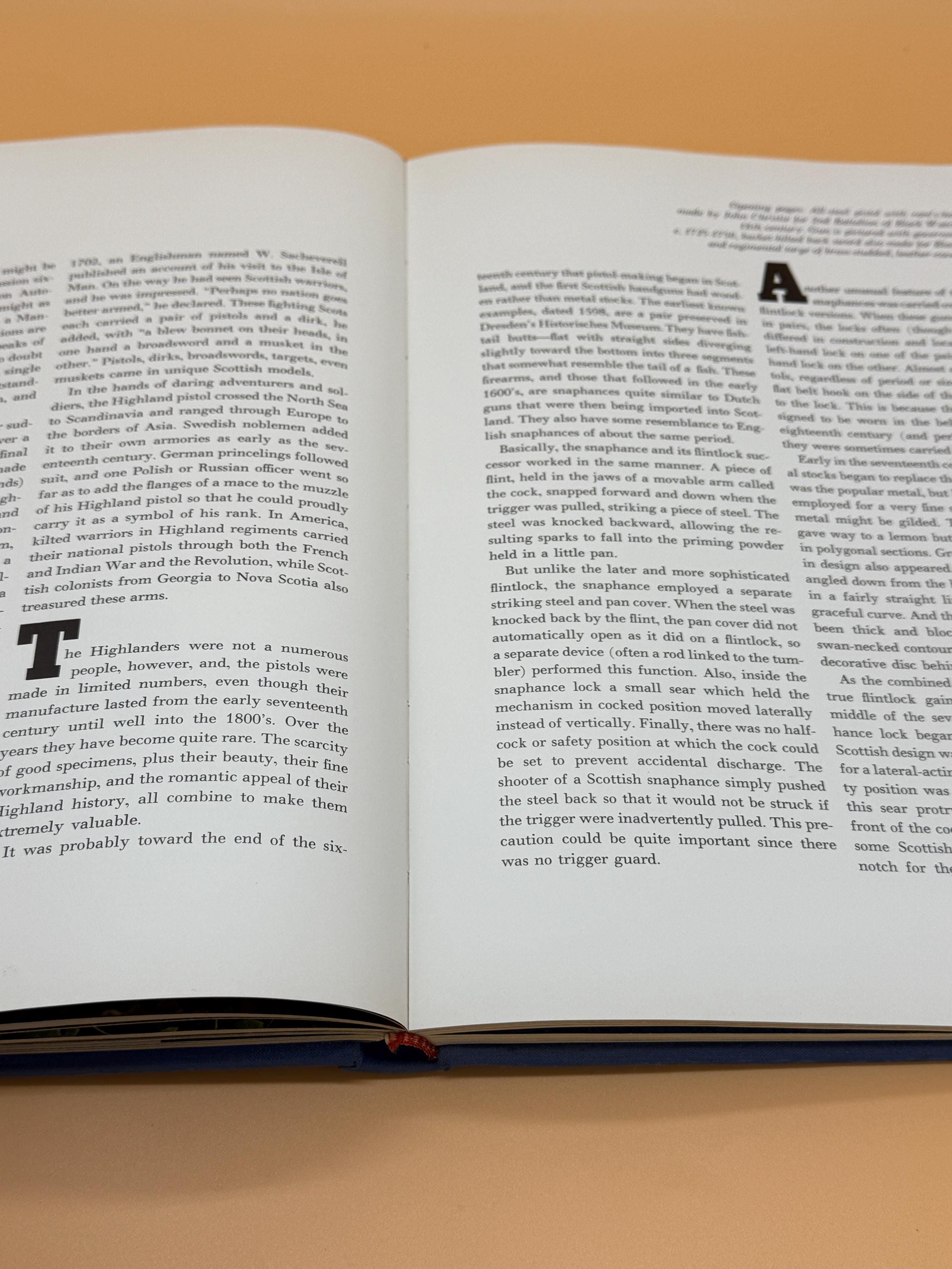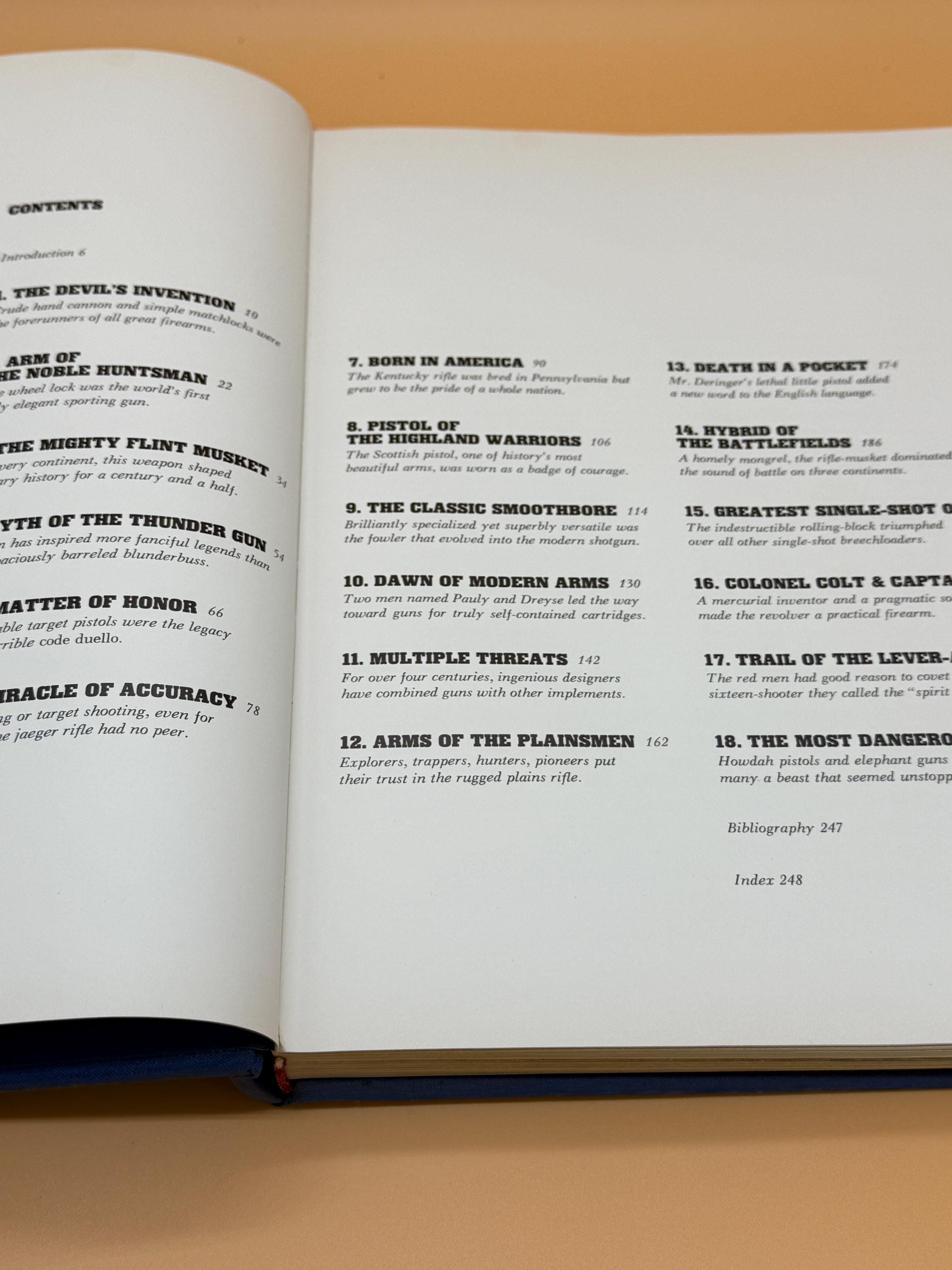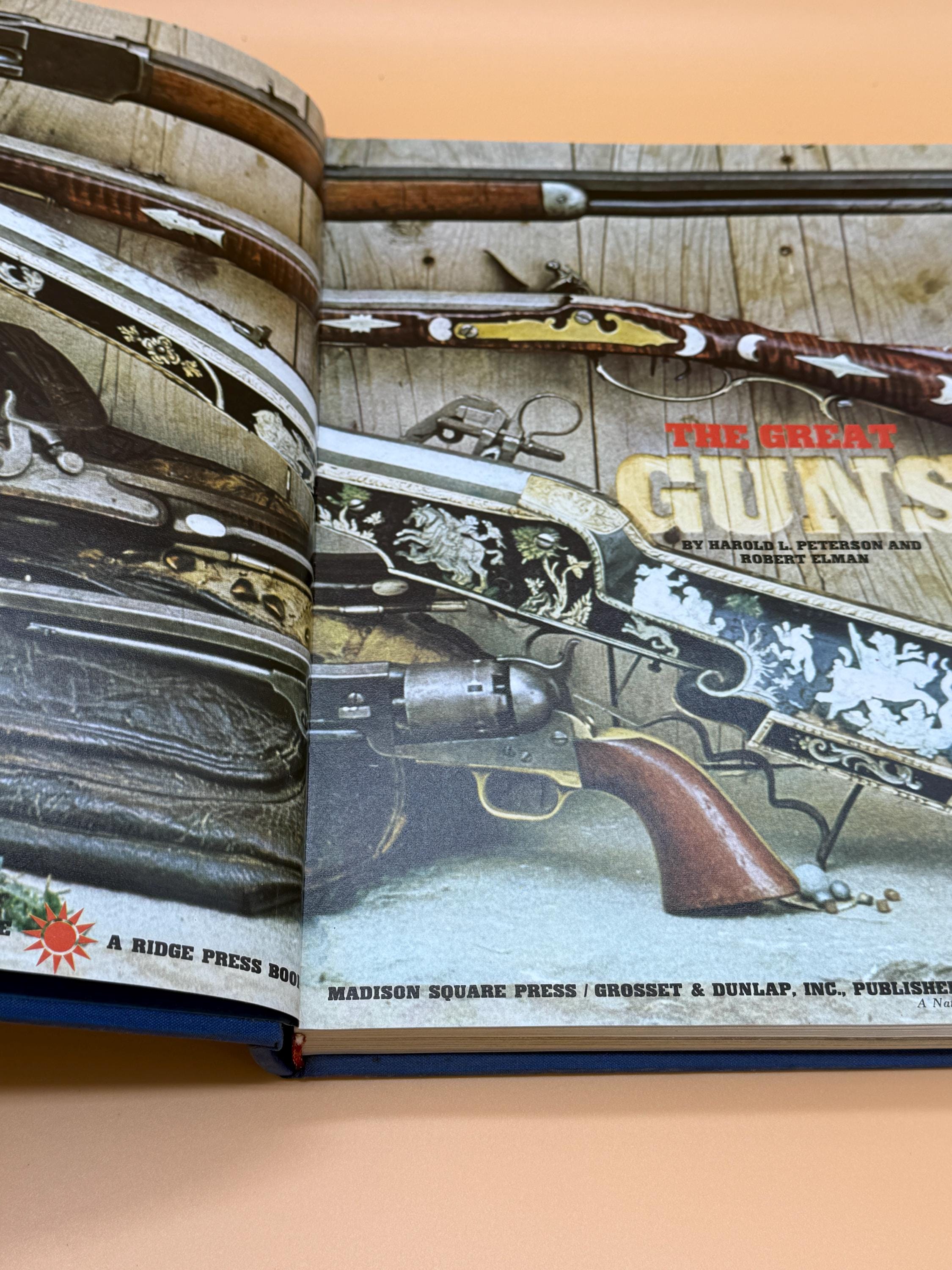 The Great Guns by Harold L. Peterson and Robert Elman is a detailed history of firearms. There are 18 chapters including Arm of the Noble Huntsman, The Mighty Flint Musket, Myth of the Thunder Gun, Born in America, Dawn of Modern Arms, Arms of the Plainsmen, Hybrid of the Battlefields, Colonel Colt and Captain Walker and more. It is extensively illustrated with color photos and vintage illustrations.