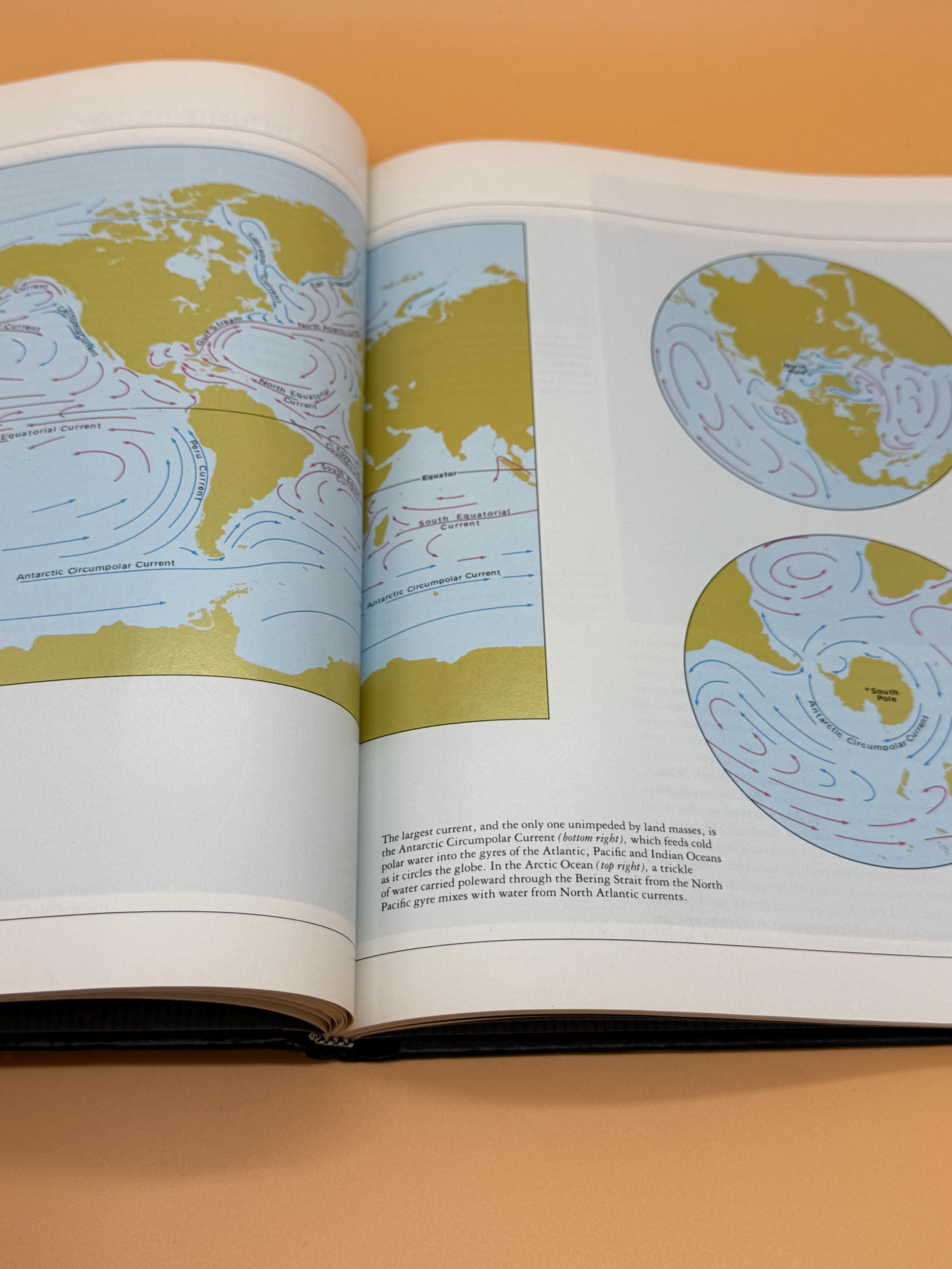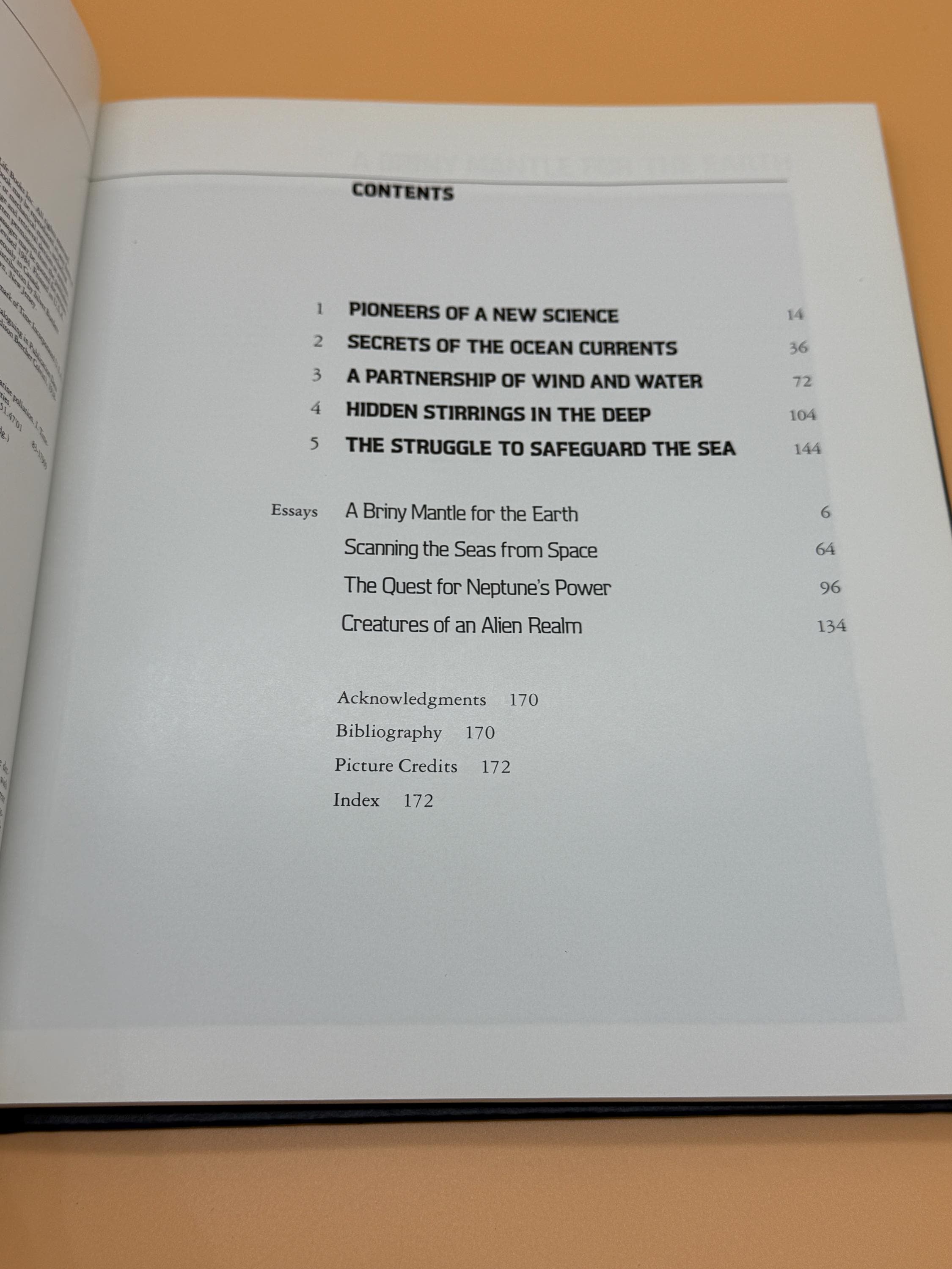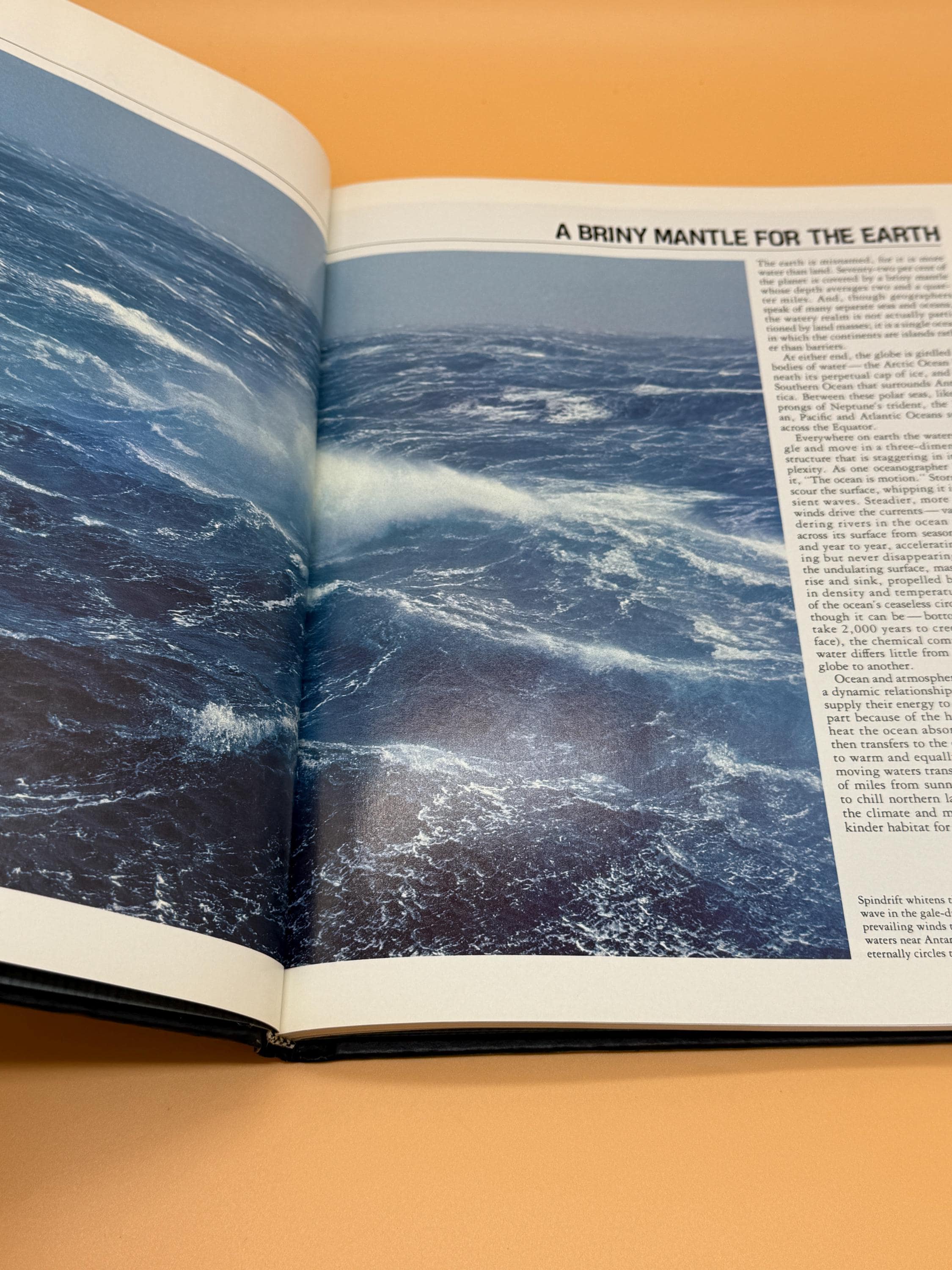 This is Restless Oceans from the Planet Earth series, Time Life Books. Chapters include; Pioneers of a New Science, Secrets of the Ocean Currents, A Partnership of Wind and Water, Hidden Stirrings in the Deep, and The Struggle to Safeguard the Sea. Essays include; A Briny Mantle for the Earth, Scanning the Seas from Space, the Quest for Neptune's Power, and Creatures of an Alien Realm.