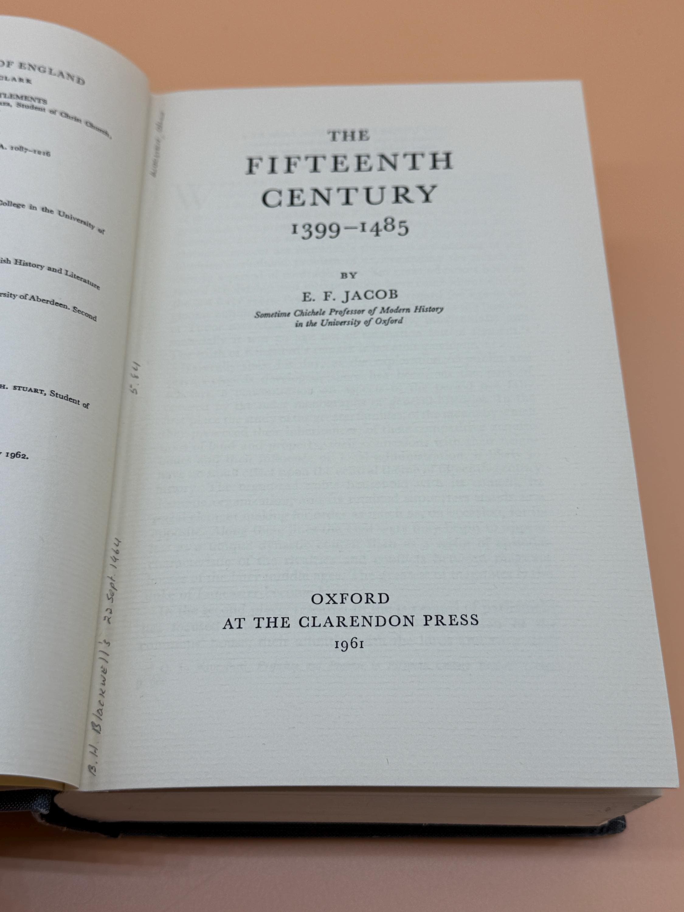 The Fifteenth Century 1399-1485 by E.F. Jacob is a narrative of English history. It is one of the book in the Oxford History of England series. A special feature is the sections devoted to Anglo-French relations with the Treaty of Troyes given particular emphasis. The last chapter, a pacific epilogue to the tale of violence preceding it, deals with notable English achievements in the life of the spirit.