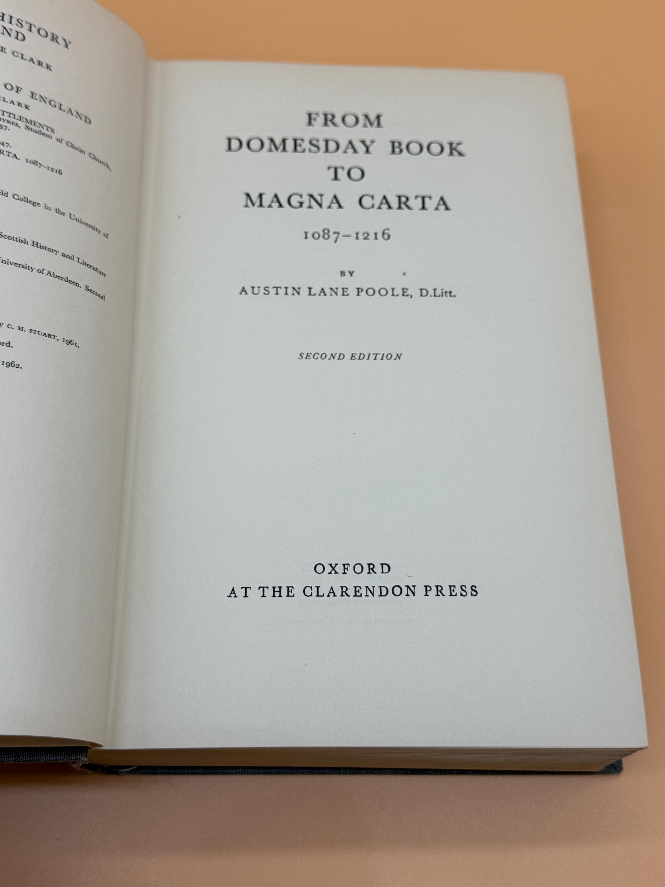 From Domesday Book to Magna Carta 1087-1216 by A.L. Poole is one of the Oxford History of England series. The book comprises the history of the century and a quarter which elapsed between the compilation of Doomsday Book and the issue of the Magna Carta, which are the two greatest documents of English medieval history. The progress of education, the contribution to literature, art are brought under review.