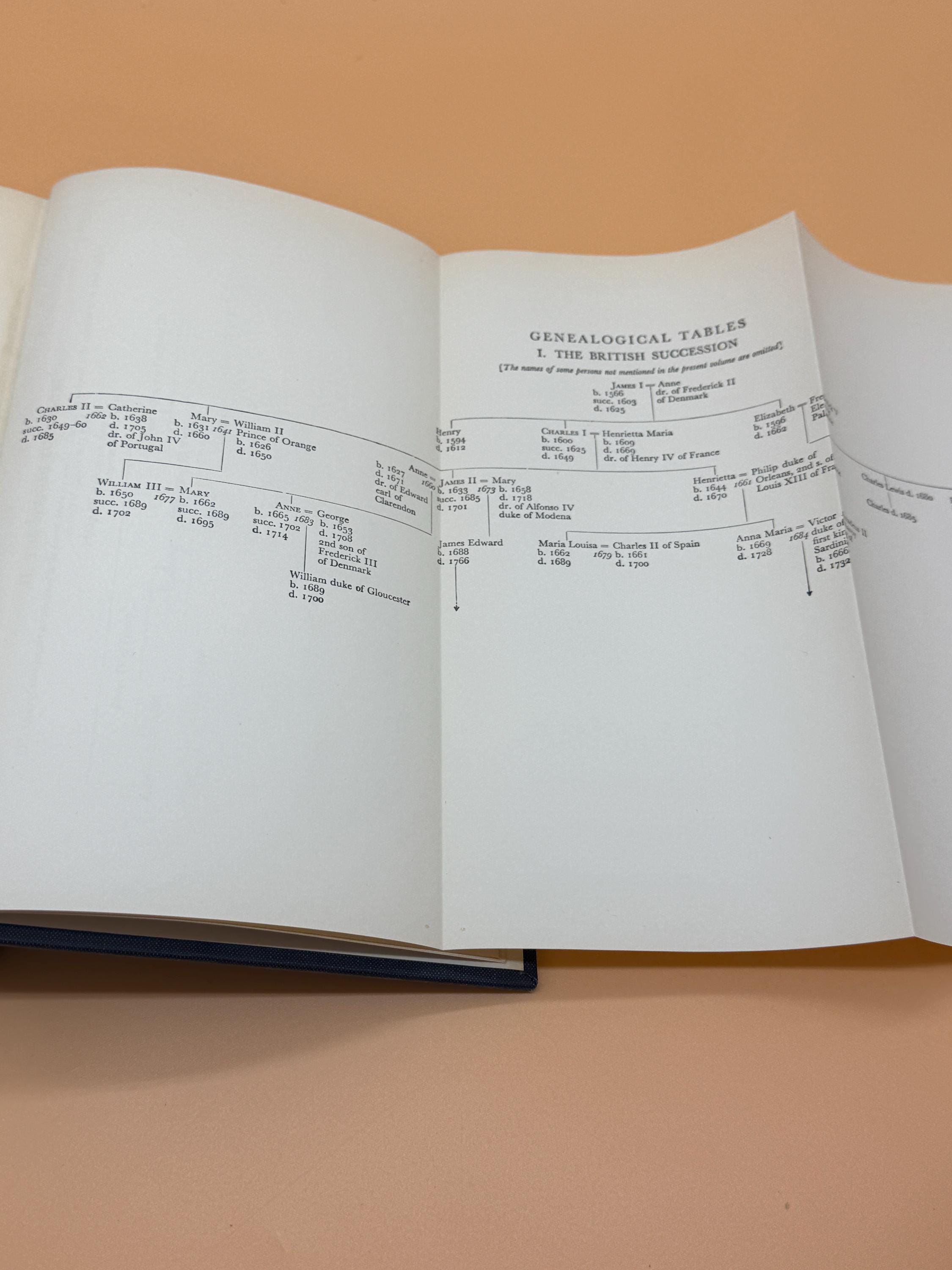 This is a very good hardcover with an acceptable-as-present dust jacket. 1955 Oxford Clarendon Press. this copy is very good inside. The inside pages are very clean and the only markings we saw is previous owners name neatly written inside front cover first blank page. It also appears as a bookmark was left in the same spot leaving the telltale tanning, see photo. Rest of pages are very clean and very good. The binding is tight and straight. Navy blue hardcover boards under jacket are also very good with only very light shelf wear and gold lettering along spine. The accompanying dust jacket is acceptable-as-present, showing tanning, wear and there is a stain along top edges from front to spine and part of back, BUT does not carry over to hardcover boards. Octvo book size or 6" x 9" with 479 pages including index along with original Genealogical Tables pull-out and 13 pages of maps end of book.