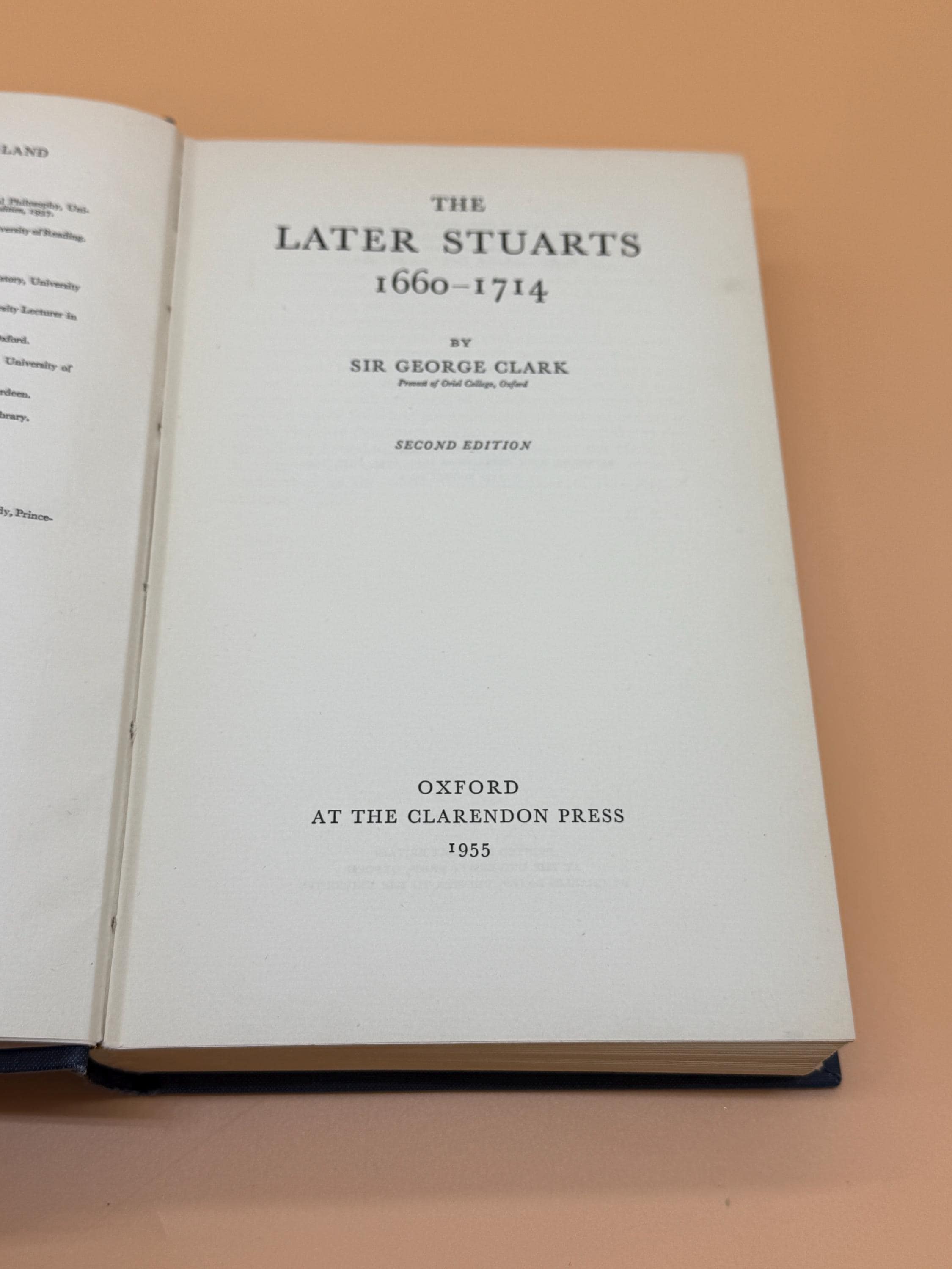 The Later Stuarts 1660-1714 by Sir George Clark is one of the Oxford History of England series. This is the second edition, 1955. The second editor has been revised and enlarged. It traces the course of English history from the restoration of Charles ll to the death of Queen Anne - the age of Clarendon, Shaftesbury, and Marlborough. Also the age of Dryden, Newton, and sir Christopher Wren. It is a narrative of political happenings, explorations, commerce, social life and the arts and sciences.
