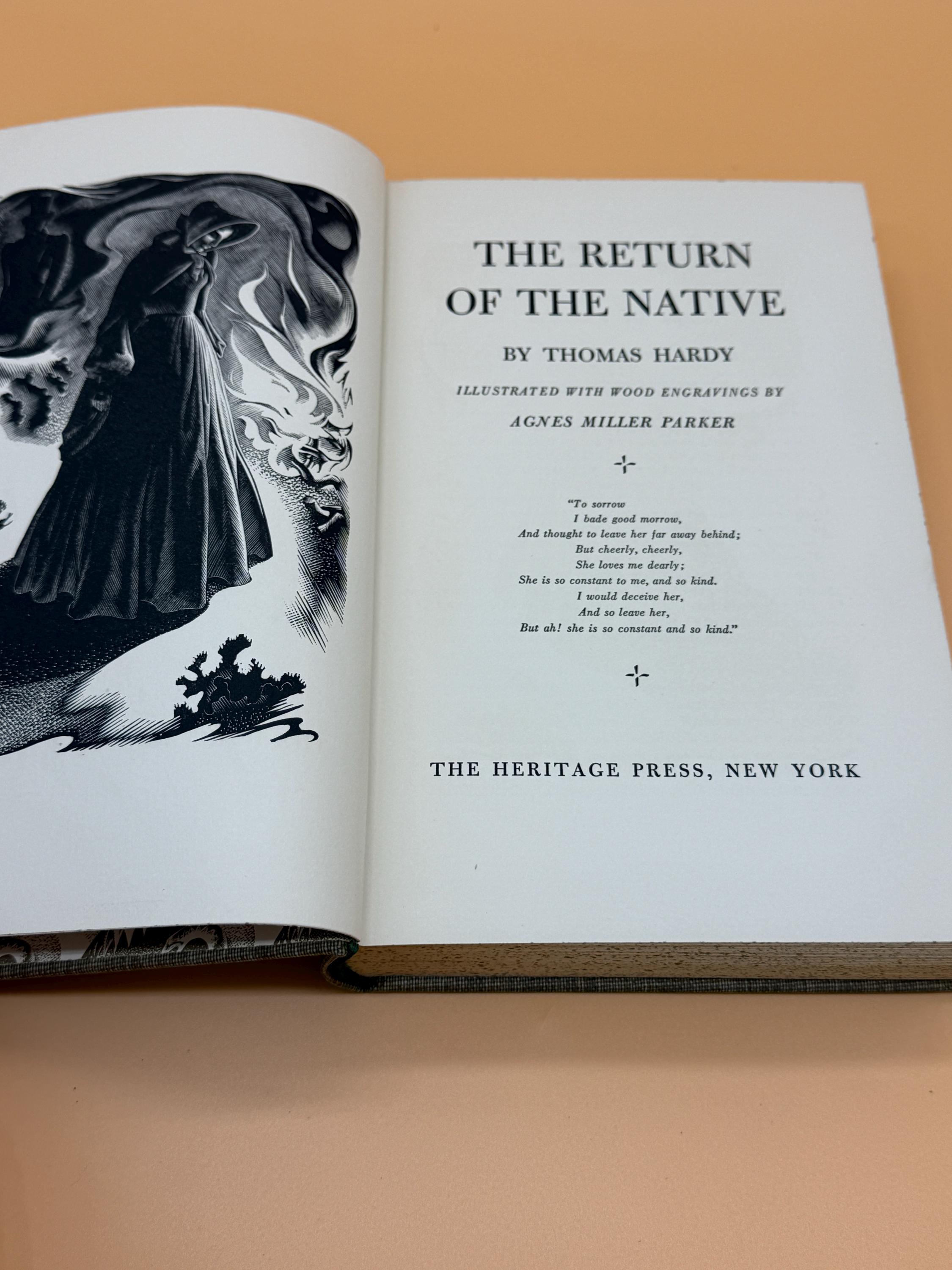 This edition from Heritage Press of The Return of the Native by Thomas Hardy has been finely illustrated with wood engravings by Agnes Miller Parker.