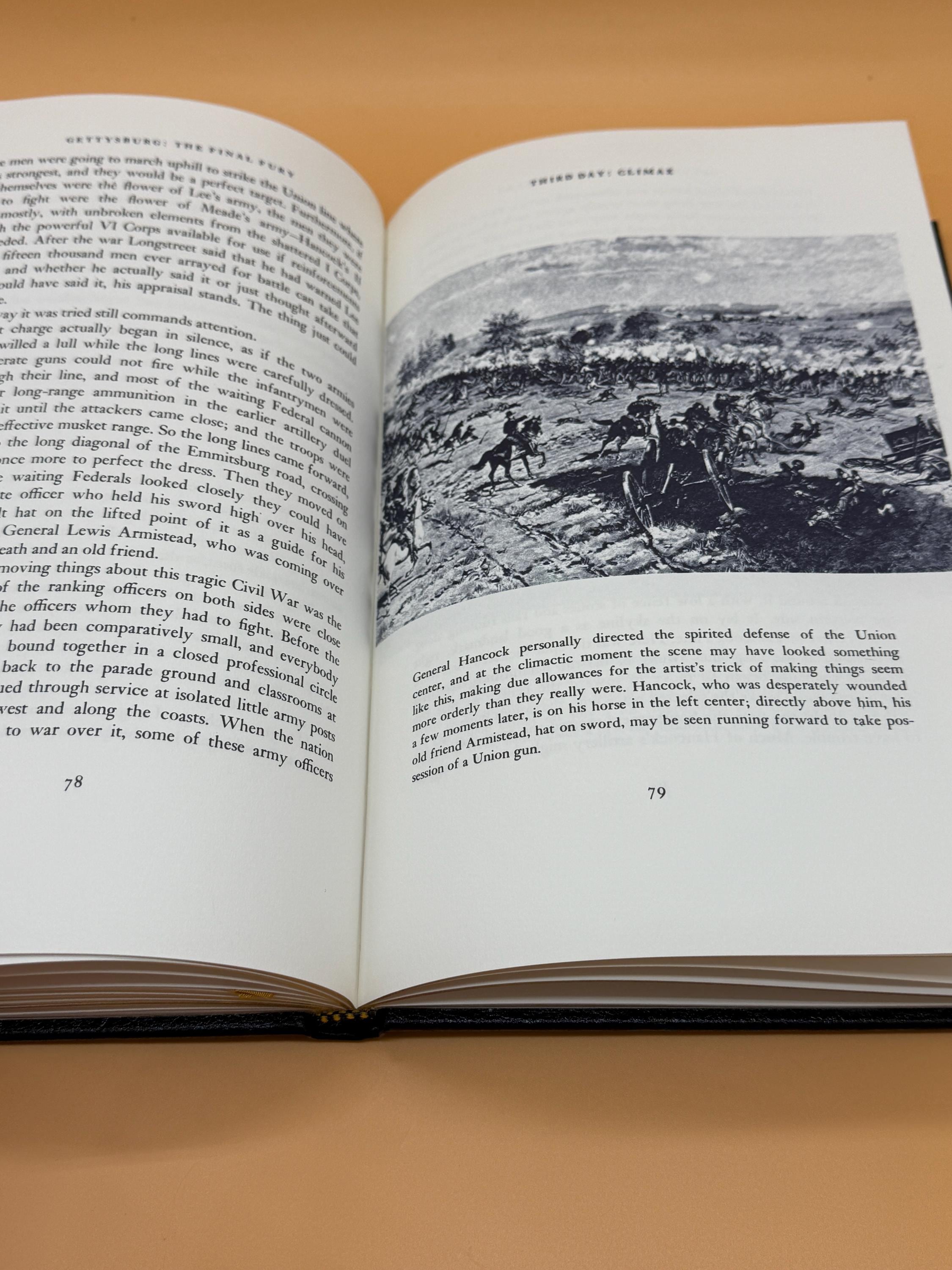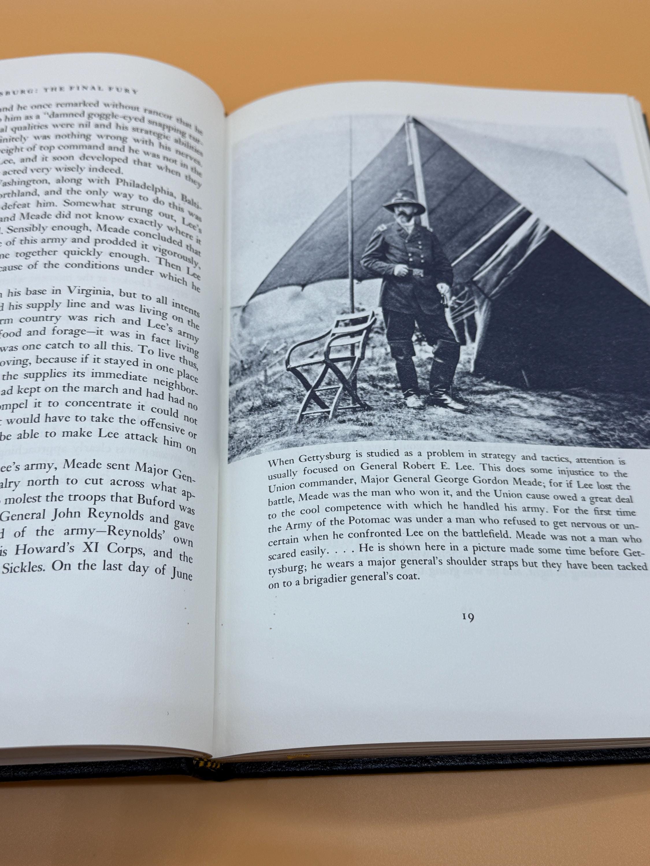 Gettysburg The Final Fury by Bruce Catton was published in 1974. In 1954 Bruce Catton won the Pulitzer Prize for his book "A Stillness At Appomatix". Gettysburg The Final Fury an hour-by-hour account of the pivotal Battle of Gettysburg, analyzing its causes, events, and consequences. Catton details the three days of fighting, from the initial skirmishes to Pickett's Charge, while also exploring the military and political significance of the battle as a turning point in the war.
